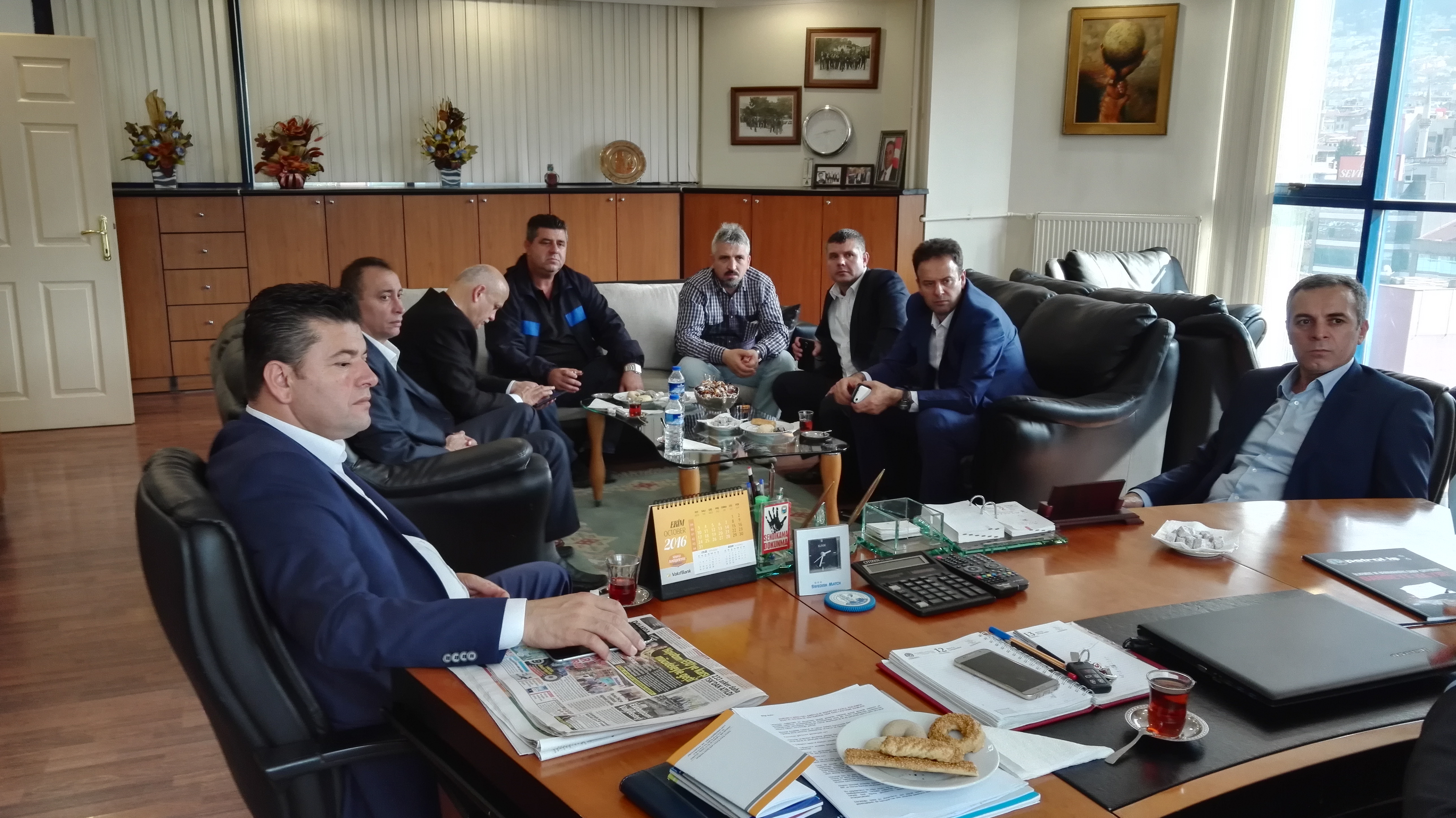 Türk Metal Sendikası Bursa Şubeleri Başkanları Kemal Durmaz, Mesut Erdem, İsmail Türk, Şakir Can, Yaşar Şen ve Yönetimi, Bursa Şube Başkanımız Erhan Yakışan’ı makamında ziyaret ederek hayırlı olsun dileklerinde bulundular.
