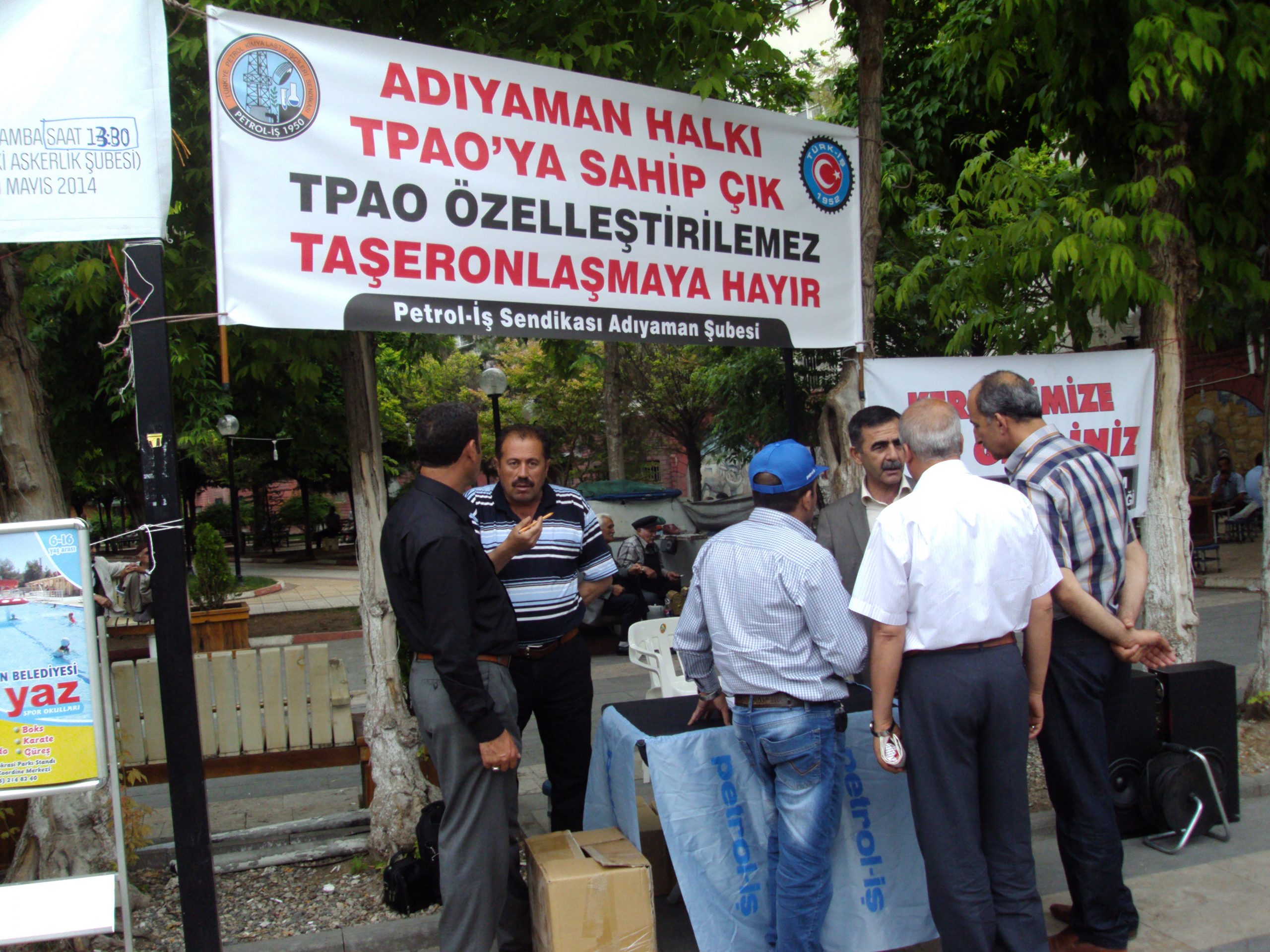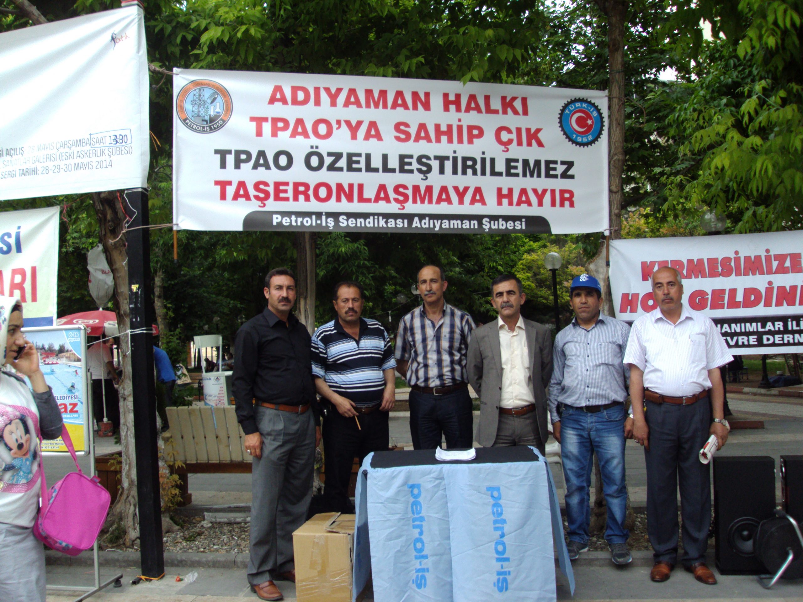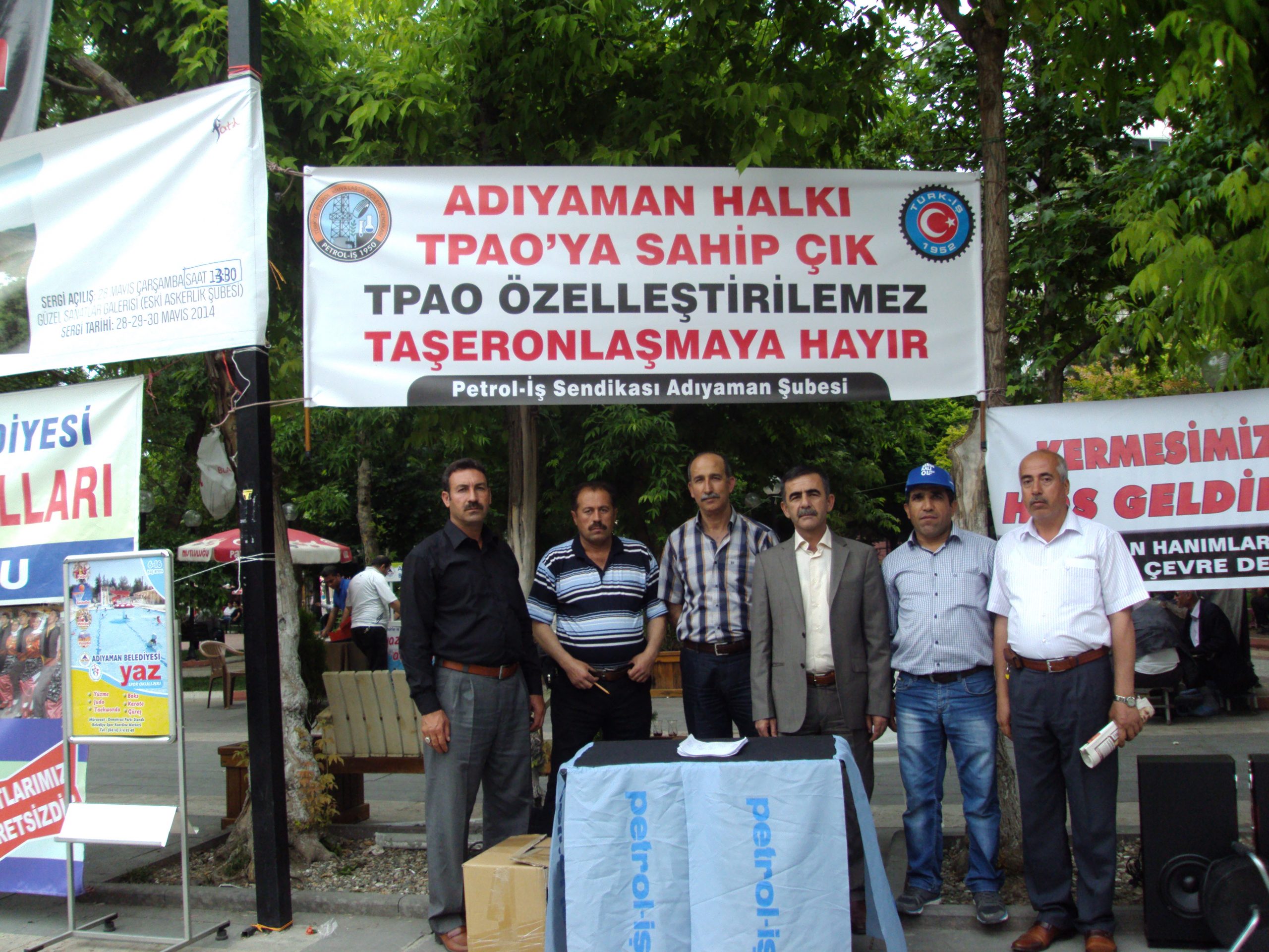 Adıyaman Şubemiz  “Bütünsel Dönüşüm Programına Hayır ve TPAO’ya sahip çıkıyoruz!” Eylem – Etkinliği çerçevesinde 25 Mayıs tarihlerinde Adıyaman’da stand açtı. Halkı bilgilendirmek amaçlı broşürler dağıtıldı. Stand halkın yoğun ilgisiyle karşılaştı.