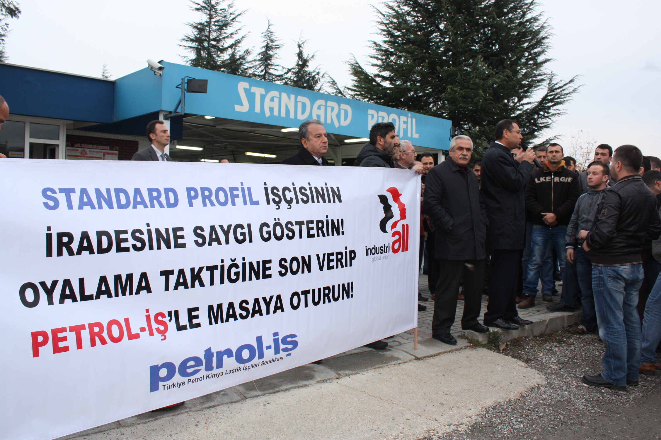 İşverene oyalama taktiklerini bir kenara bırakmaları gerektiğini bildiren Genel Başkanımız sözlerini şöyle sürdürdü: “Standard Profil yanlış yolda ilerlemeye devam ediyor. Ama artık yolun sonuna geliyoruz. İşyerinde alttan alta baskı uygulamakla, göz korkutmakla, mahkemeleri meşgul etmekle, istifa söylentilieri yaymakla, onurlu ve kararlı Standard Profil işçisini şimdiye kadar yolundan döndüremediğiniz gibi şimdiden sonra da döndüremezsiniz. Gelin toplu sözleşme masasına oturun. Şimdi sadece çağrı yapıyoruz, çünkü biz haklarımızı alarak barış içinde çalışmak istiyoruz, ama bundan sonra sadece açıklama ile yetinemeyiz. Başka eylemlikler içinde de olacağız ” dedi.