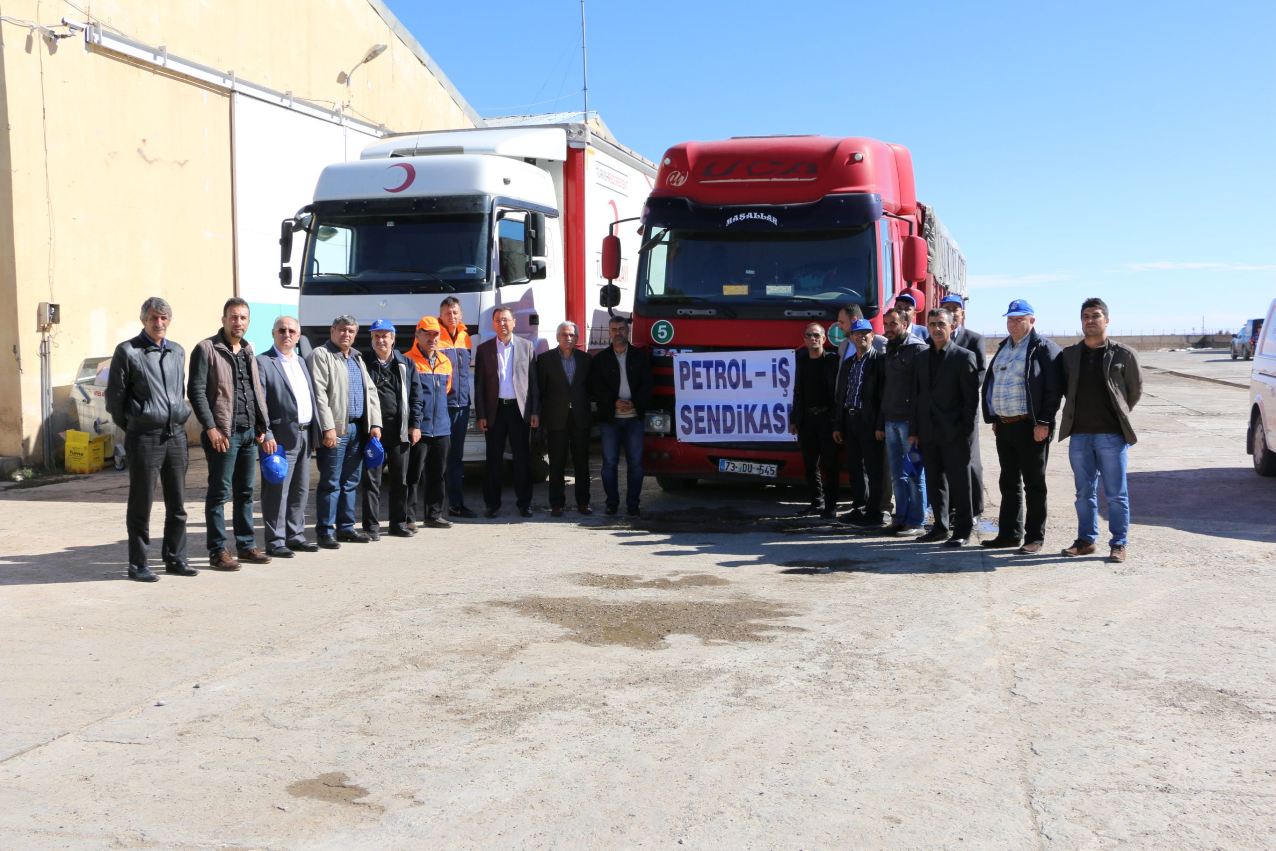 AFAD yetkilileri, Petrol-İş Sendikası’nın desteğinden ötürü bütün Petrol-İş üyelerine teşekkürlerini sunarken Genel Başkan Mustafa Öztaşkın dayanışmak insan olmanın ve komşuluğun bir gereğidir dedi ve sözlerine şöyle devam etti: “Bölgemizdeki bütün savaşların ve çatışmaların biran önce sona ermesini, barışın ve kardeşliğin bütün dünyada hakim olmasını temenni ediyoruz. AFAD başta olmak üzere bölgede canla başla çalışan bütün yardım kuruluşu üyelerine kolaylıklar dileriz.”