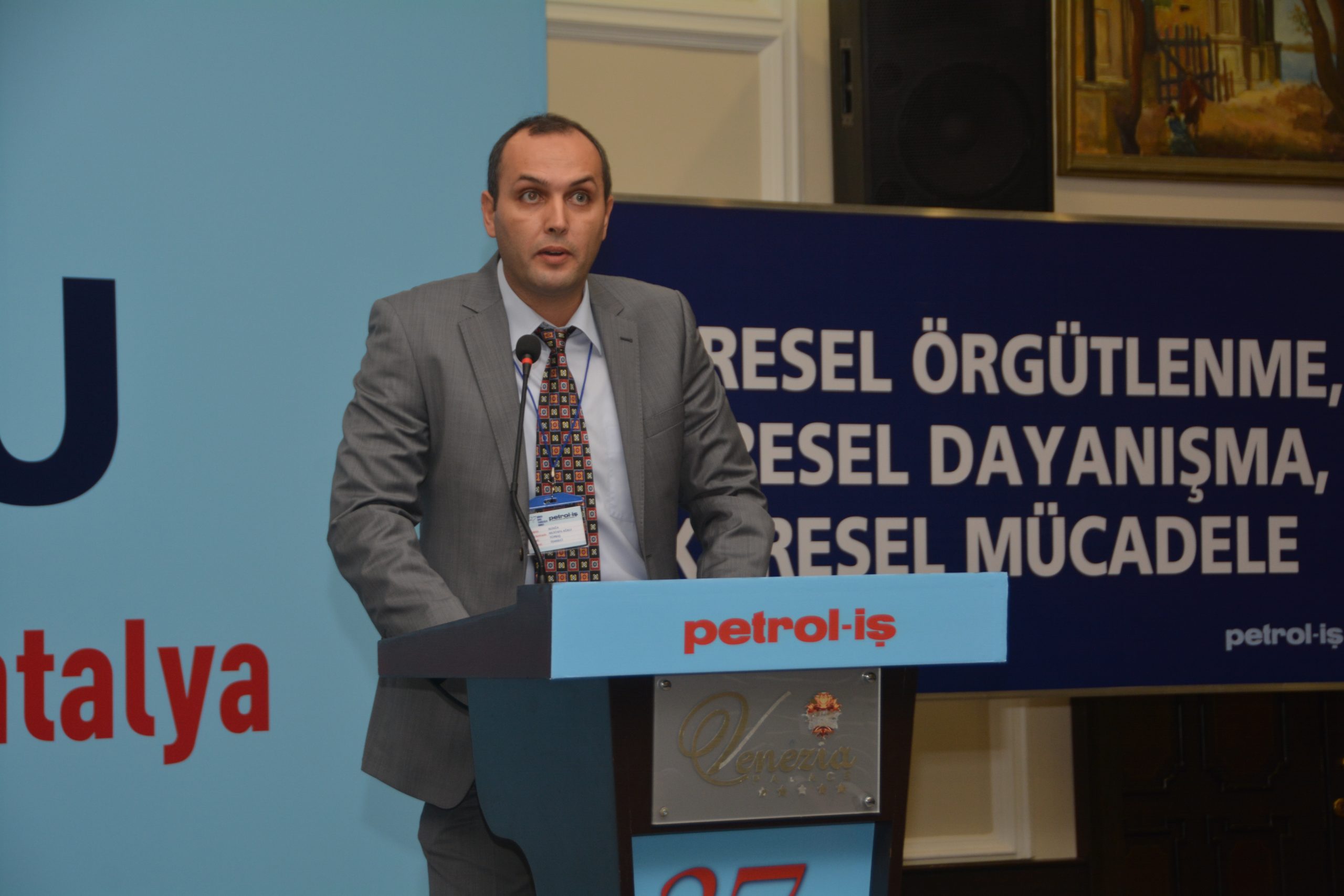 Genel başkanımızın açılış konuşmasında ele aldığı konulardan biri de küresel sendikacılık hareketiydi. Küresel ekonominin sınıf mücadelesinin ana uğraş alanlarından biri haline geldiğini vurgulayan Öztaşkın, esnek üretim, taşeronlaşma ve ucuz işgücünün küresel sorunlar olduğuna değinerek, “ Bu koşullarda sendikal mücadele ulus içine hapsedilemez. Küresel emek stratejileri inşa etmeliyiz, küresel örgütlenme ve işbirliklerini önemsiyoruz. “ dedi.