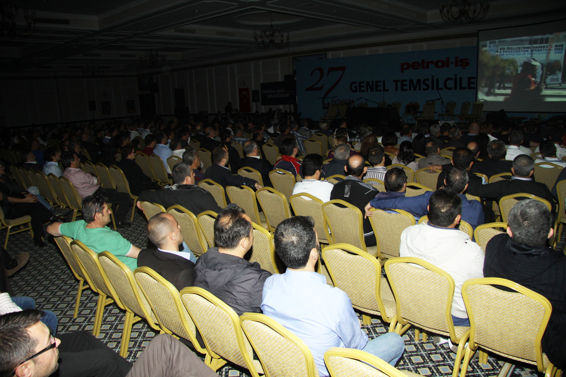 Petrol-İş Sendikası 27. Dönem Genel Temsilciler Kurulu 8 Kasım Cuma günü sona erdi. Temsilciler Kurulu Perşembe günü saat 10.15’de Genel Başkanımız Mustafa Öztaşkın’ın açılış konuşması ile başladı. Aynı gün 16 şubeden önceden belirlenmiş temsilcilerin konuşmalarıyla devam eden temsilciler kurulunun, ikinci gününde e- devlet uygulaması seminerinden sonra eğitim servisi uzmanlarımız sendikadaki eğitimleri anlattılar. İki gün boyunca akşam saatlerinde şube etkinlikleri ile şenlenen temsilciler kurulu, genel başkanımızın kapanış konuşması ile son buldu.