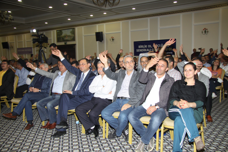 Genel Başkanımızın açılış konuşmasının ardından, Petrol-İş Sendikası’nın toplam 16 şubesinden gelen temsilcilerimiz, şubeleri adına konuşma yaptılar. Temsilcilerimizin konuşmalarında vurgulanan konuların başında kıdem tazminatı hakkı yer aldı. Kimse kazanılmış haklarını geri vermek niyetinde değildi. Ortak tutum kıdem tazminatının kırmızı çizgimiz olduğu doğrultusundaydı.