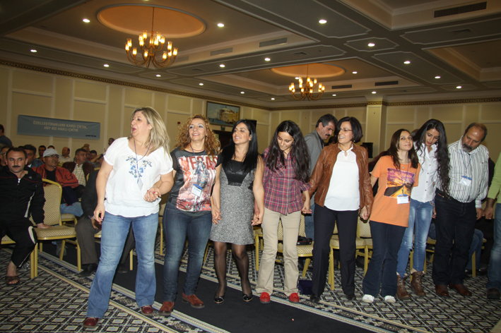 Konuşmasına “niçin burdayız?” sorusu ile başlayan Ali Ufuk Yaşar şöyle devam etti: “Örgütlenme, taşeronlaşma, kıdem tazminatı gibi genel konuları konuşmak için buradayız. Bunun yanı sıra şubelerimizden tarafından düzenlenen etkinliklerimiz de var. Ayrıca bizi izleyen işverenler ve yasa çıkaranlara karşı birlikteliğimizi de göstereceğiz.”