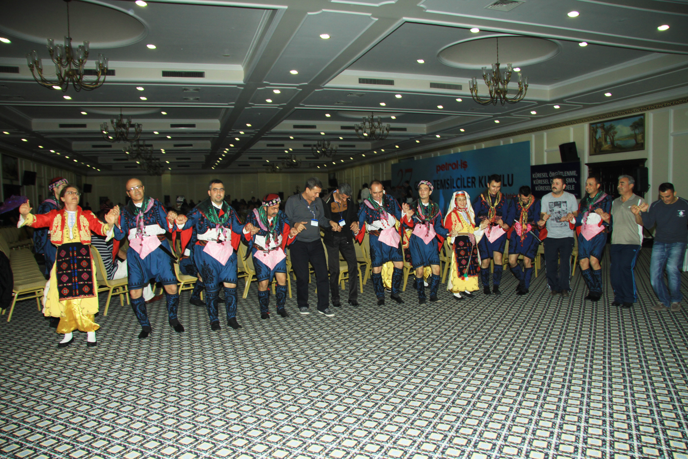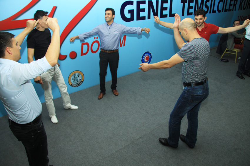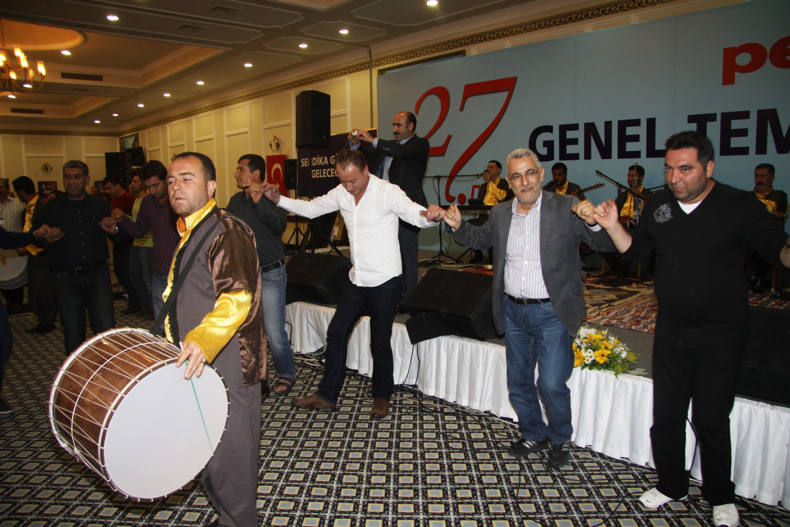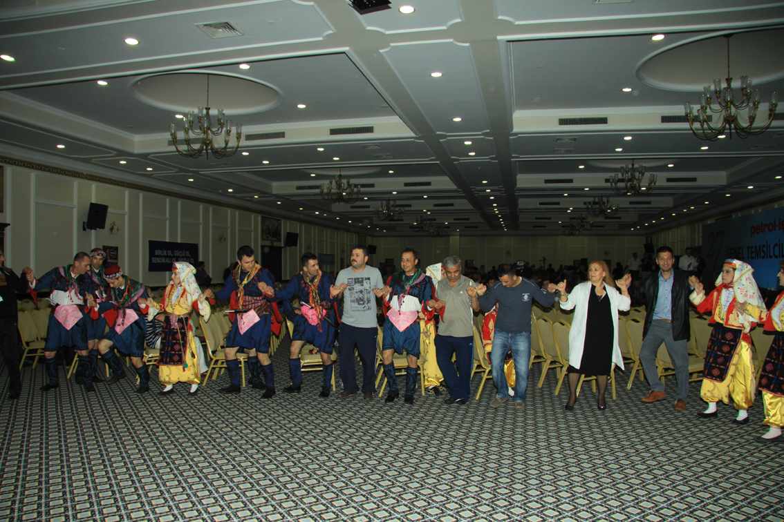 27. Dönem Genel Temsilciler Kurulu’nun en önemli bölümlerinden biri de akşamları 20.00’da başlayan şubelerin sunduğu etkinlikler oldu. 6 Kasım akşamı Kocaeli Şubesi’nin tiyatro gösterisini takiben Ankara Şubesinin Türk Halk Müziği programı ve Bandırma Şubesinin zeybek oyunlarını izledik… 7 Kasım akşamı ise Aliağa Ayaktakımı tiyatrosu, Kırıkkale Şubesi Saz Grubu etkinliği ile keyifli dakikalar yaşadık. 8 Kasım Cuma günü Mersin Şubemizin illüzyonist gösterisini izledik onu takiben çiğ köfte eşliğinde Adıyaman Şubemizin Harafane Grubu ile türküler eşliğinde halaylar çekildi.