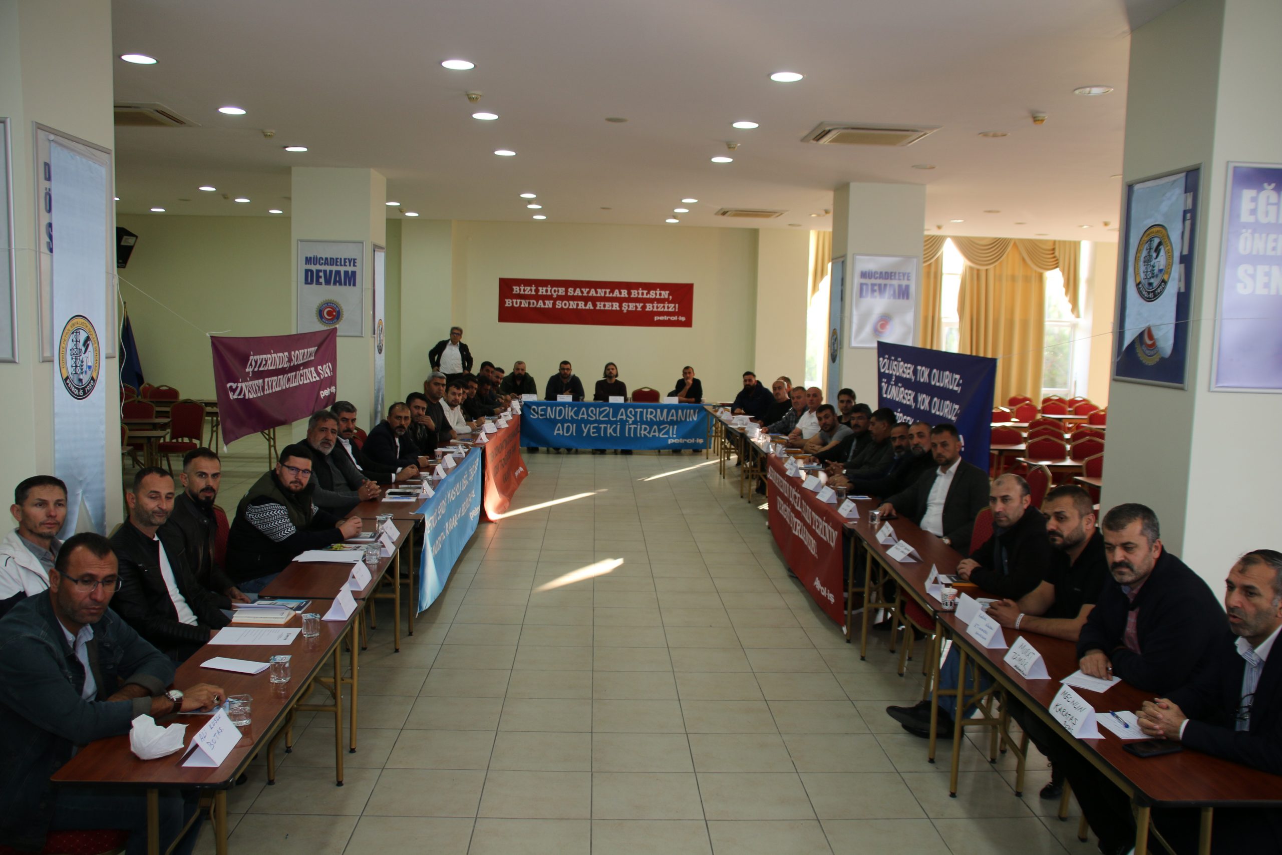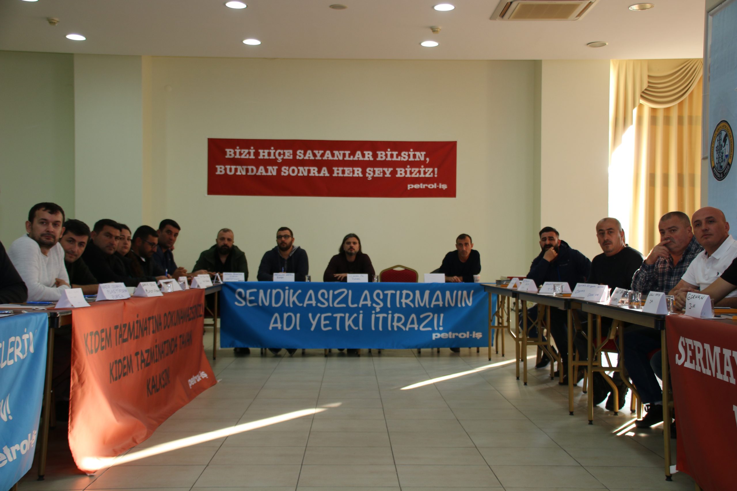 Eğitimin ikinci gününde sendikamız Merkez Yönetim Kurulu Üyeleri temsilcilerimizle bir araya geldi. Saat 16.00’da başlayan toplantı yaklaşık 20.00’de sona erdi. Bu süre zarfında Genel Merkez Yöneticileri sendikanın idari ve örgütsel yapısı ile kendi sorumluluk alanı içerisindeki konulara ilişkin temsilcilere bilgi verdi, gelen soruları yanıtladılar.
