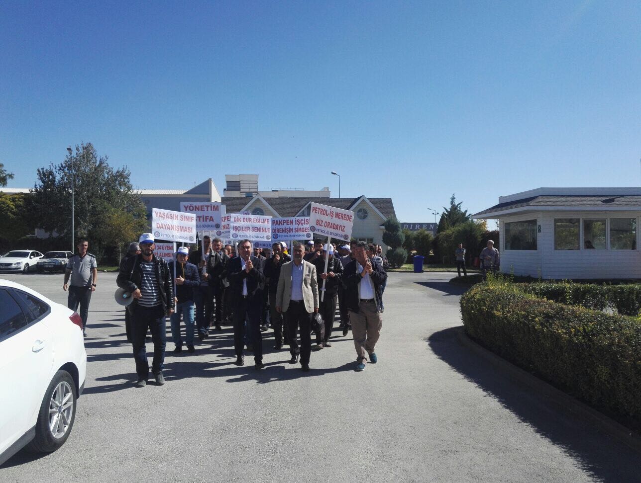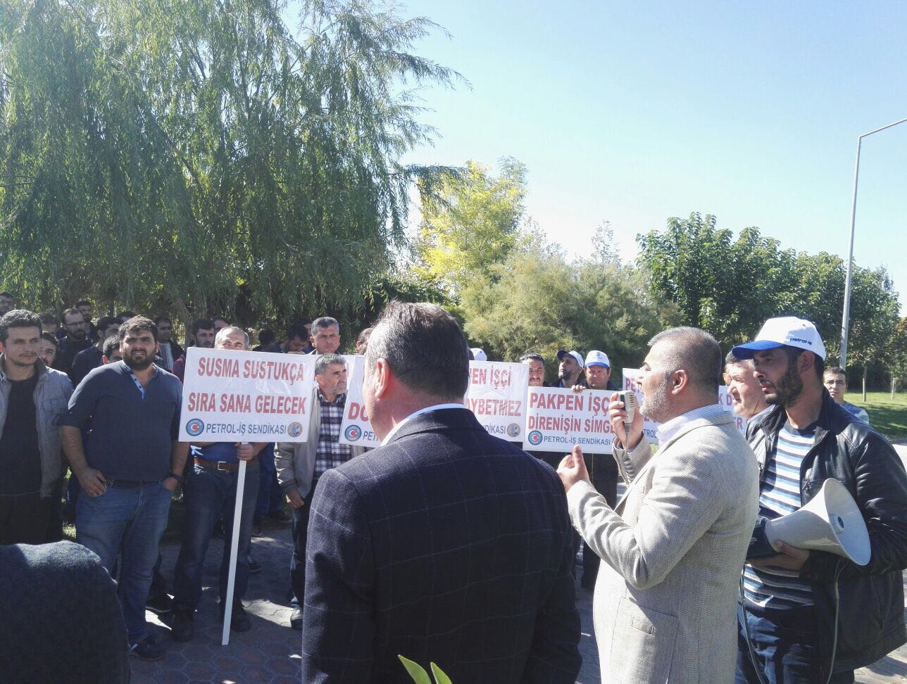 11. gününde olan eylemde konuşan, Genel Mali Sekreterimiz Turgut Düşova, Genel Örgütlenme ve Eğitim Sekreterimiz Mustafa Mesut Tekik ve Ankara Şube Başkanımız Şuayip Gül Pakpen’deki örgütlü gücümüzü göstermeye devam edeceğimizi vurguladılar. Ayrıca yöneticilerimiz sendikamızın düzenleyeceği eylemlerle sendikal mücadeleyi sonuna kadar sürdüreceğinin altını çizdiler.