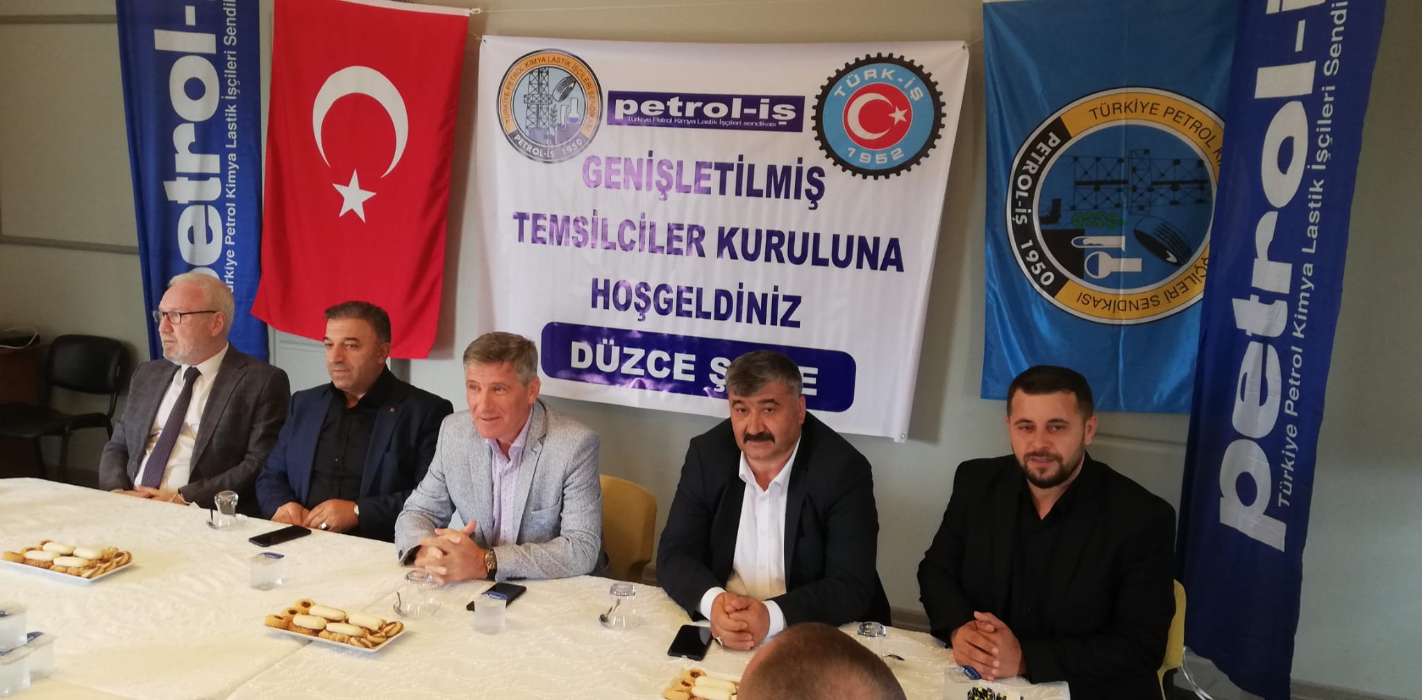 Düzce Şubemizin Genişletilmiş Temsilciler Kurulu 3 Eylül Cuma günü toplandı. Düzce Şube Yönetimi ve şubemizin örgütlü olduğu işyerlerinden temsilcilerimizin yer aldığı Temsilciler Kurulu Toplantısına sendikamız Genel Başkanı Süleyman Akyüz, Genel Mali Sekreteri Erhan Yakışan, Genel Örgütlenme ve Eğitim Sekreteri Niyazi Recepkethüda ve Genel Yönetim Sekreteri Ünal Akbulut da katıldı. Toplantıda ülke gündemi ve emeğe ilişkin gelişmeler ele alındı. Temsilcilerimiz ayrıca örgütlü oldukları işyerlerindeki çalışma koşulları ve sorunları Merkez Yönetim Kurulu ile de paylaştı.