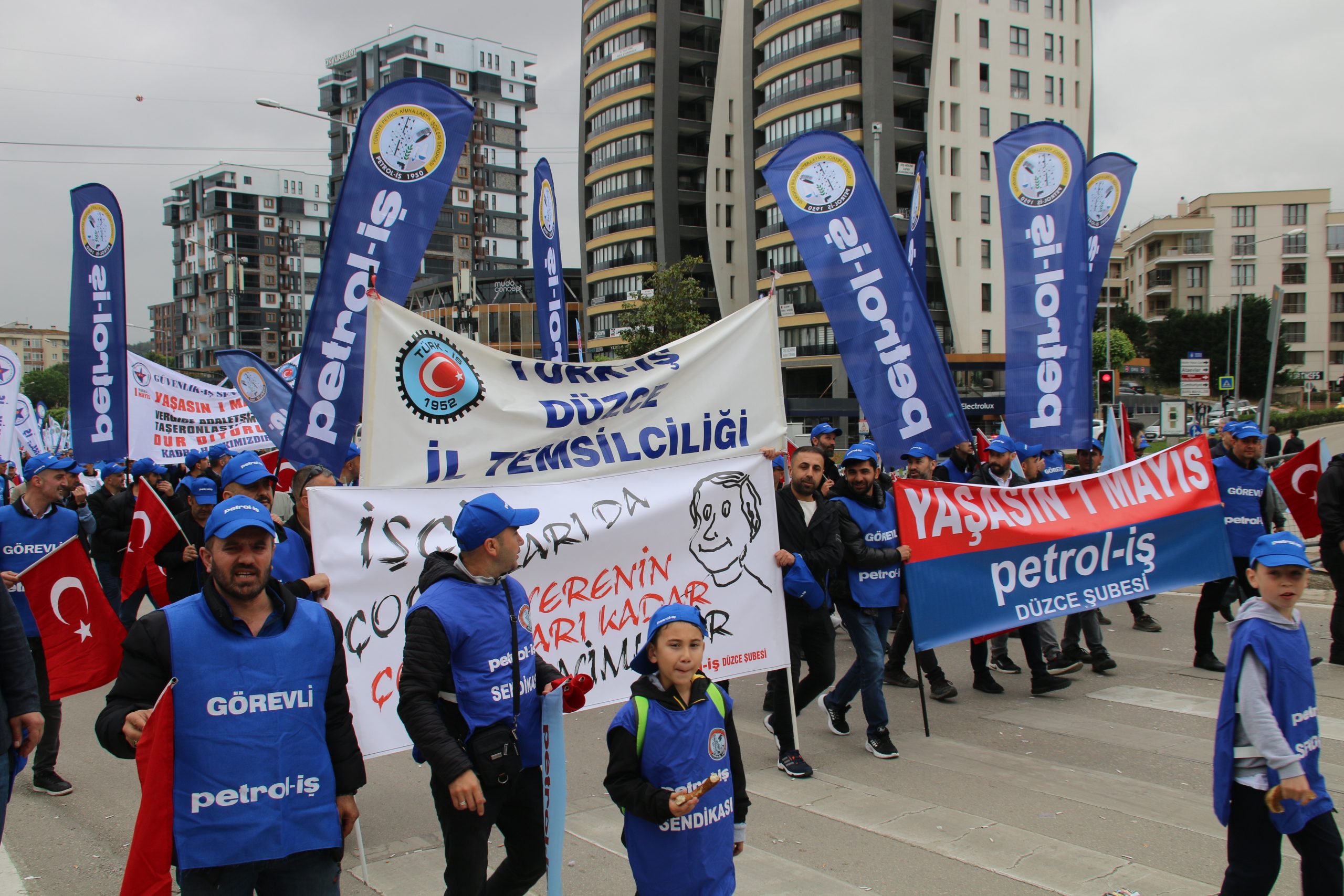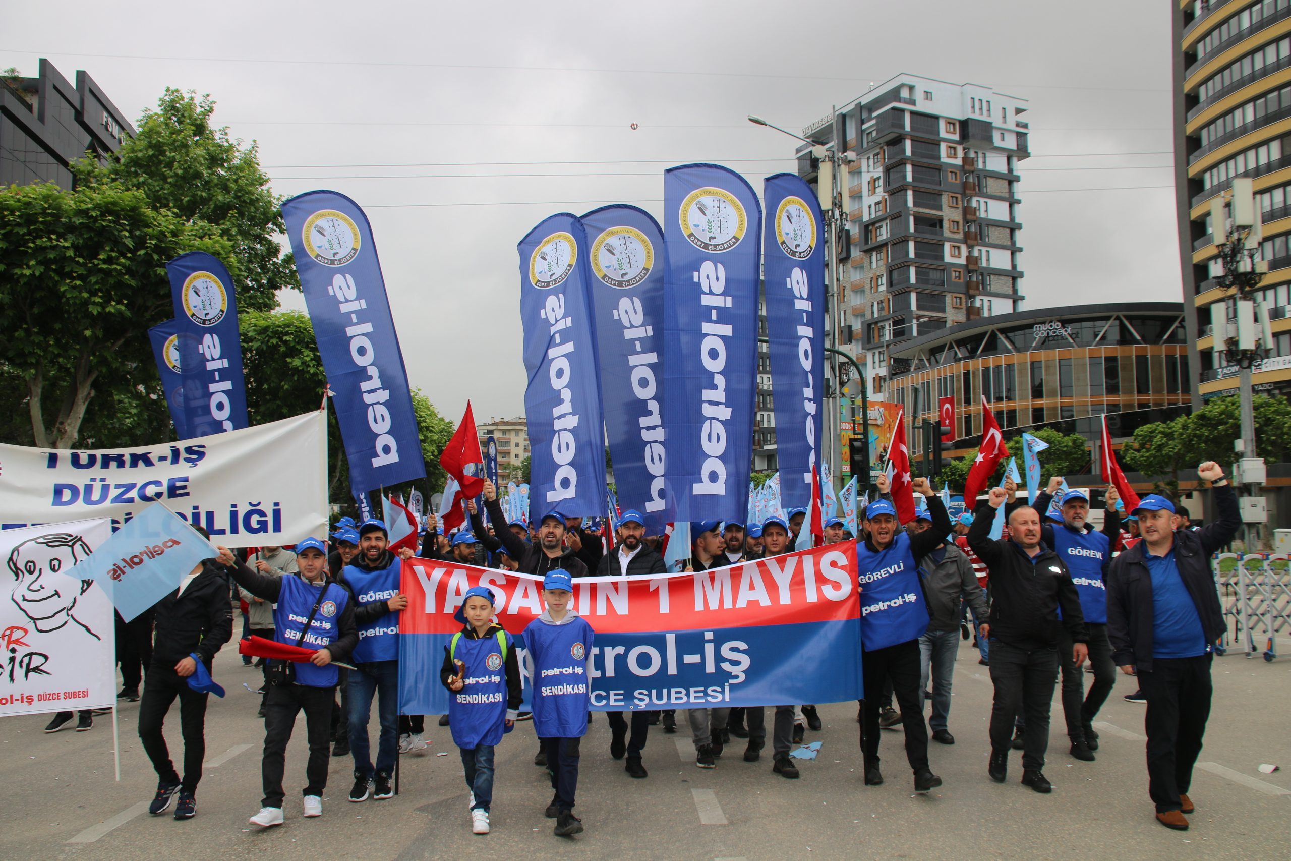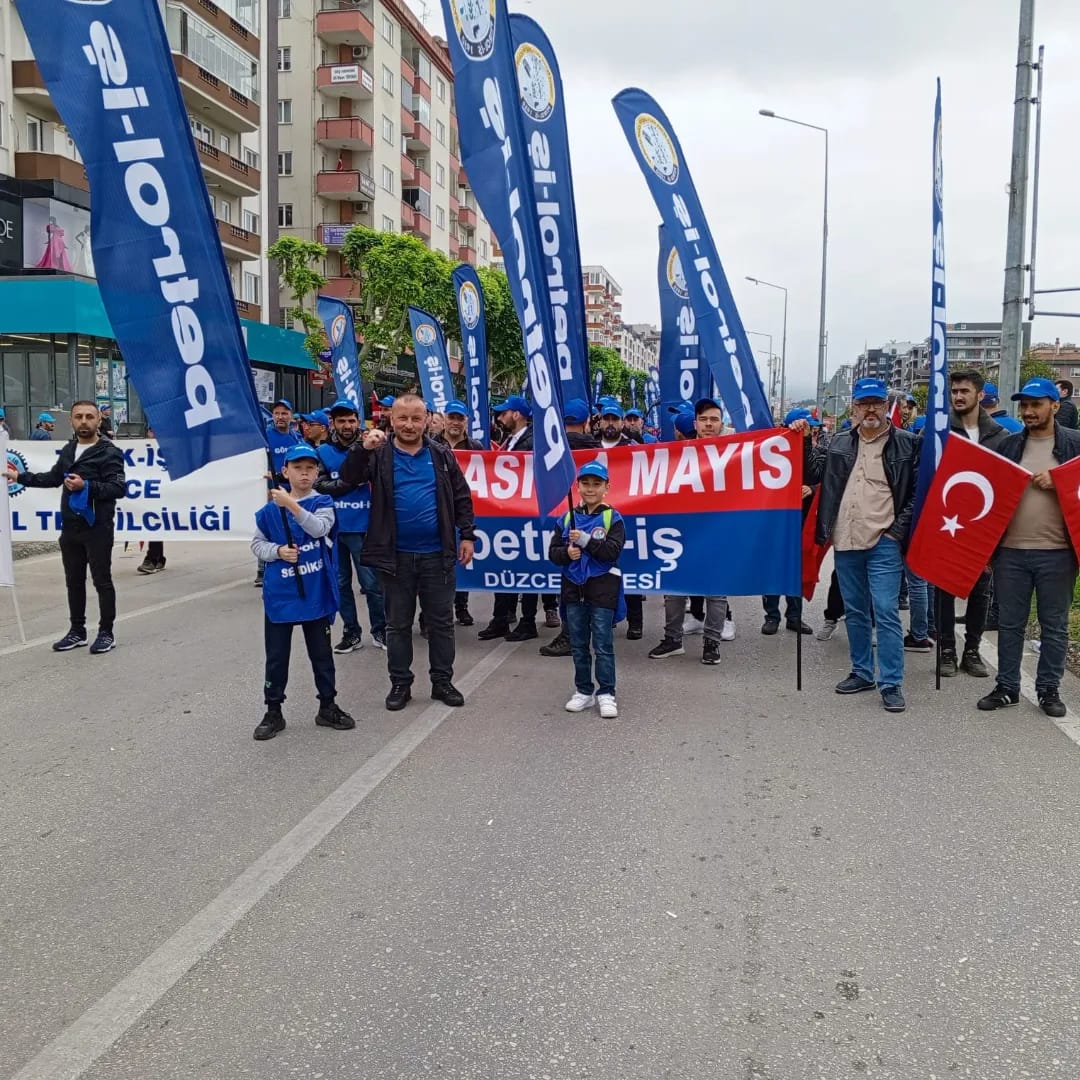 Sendikamız Düzce Şubesi bu sene 1 Mayıs’ı, Türk-İş’in çağrısıyla Bursa’da merkezi ve ortak düzenlenen programda kutladı. Düzce Şube yöneticilerimiz ve şubemizin örgütlü olduğu işyerlerinden üyelerimiz sabah 09.00’da Nilüfer, Fatih Sultan Mehmet Bulvarında oluşturulan Petrol-İş kortejinde yer aldılar. Kortejlerin oluşmasıyla Hastane Meydanı’na kadar sloganlar eşliğinde yüründü. Oldukça coşkulu geçen yürüyüş kortejinin ardından Meydana ulaşıldı. Meydanda yapılan konuşmaların ardında 1 Mayıs başladığı gibi coşkulu bir şekilde sona erdi.