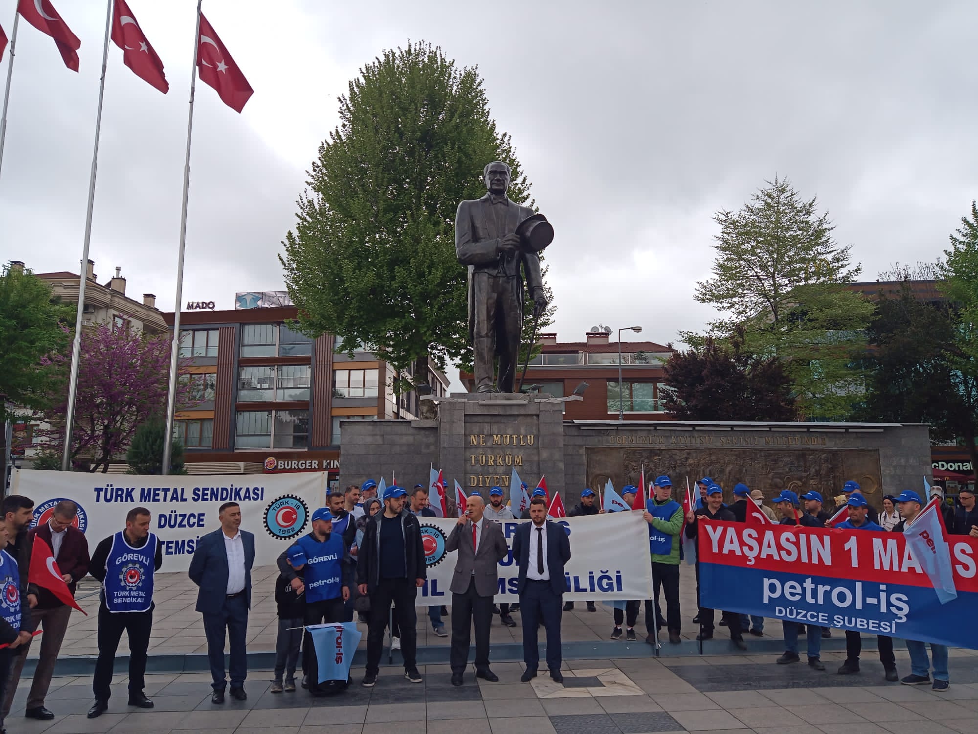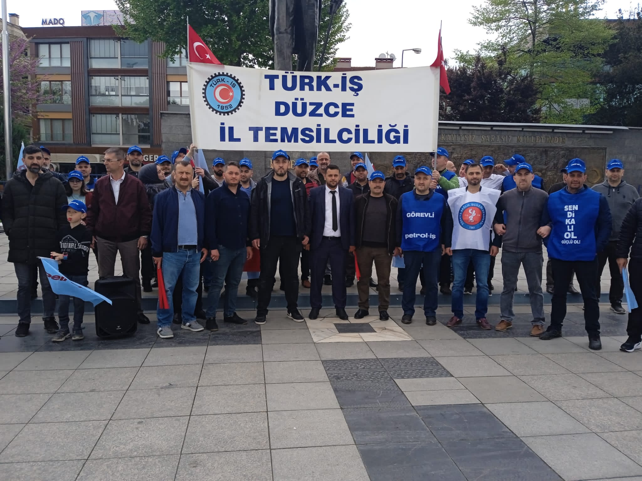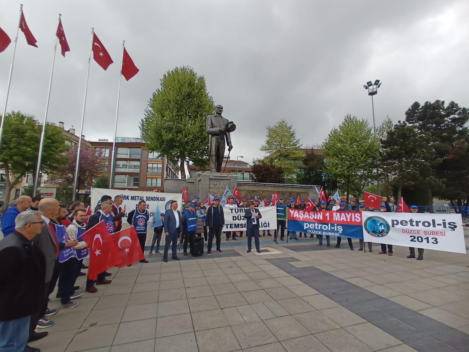 Sendikamız Düzce Şubesi 1 Mayıs İşçilerin Uluslararası Birlik Mücadele ve Dayanışma Günü’nü Türk-İş’e bağlı sendikaların temsilci ve üyelerinin katılımıyla birlikte kutladı. Düzce Anıt Park Meydanı’nda yapılan basın açıklamasına Düzce Şube yönetimi, temsilcilerimiz ve üyelerimiz katıldı.
