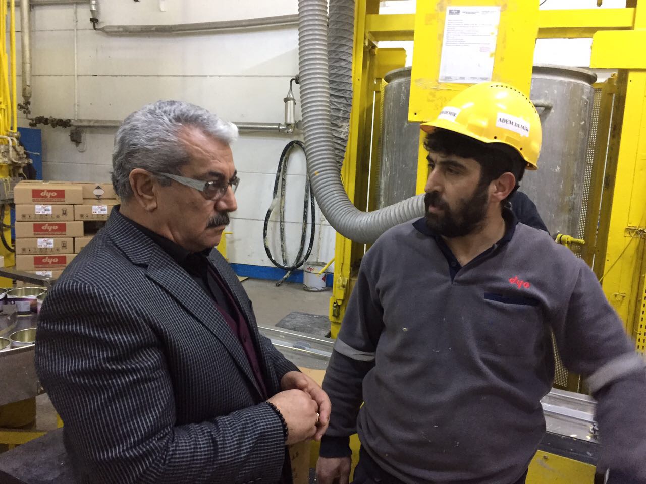 Şube Başkanımız A.Gani GÜNDOĞDU ve Dyo Boya Fabrikaları A.Ş Genel Müdürü Serdar ORAN üyelerimizin üretimle ilgili sorunlarını 20.02.2017 tarihinde makinaların başında dolaşarak tespit etmiş ve gerekli önlemlerin alınması için fikir birliğine varmışlardır.