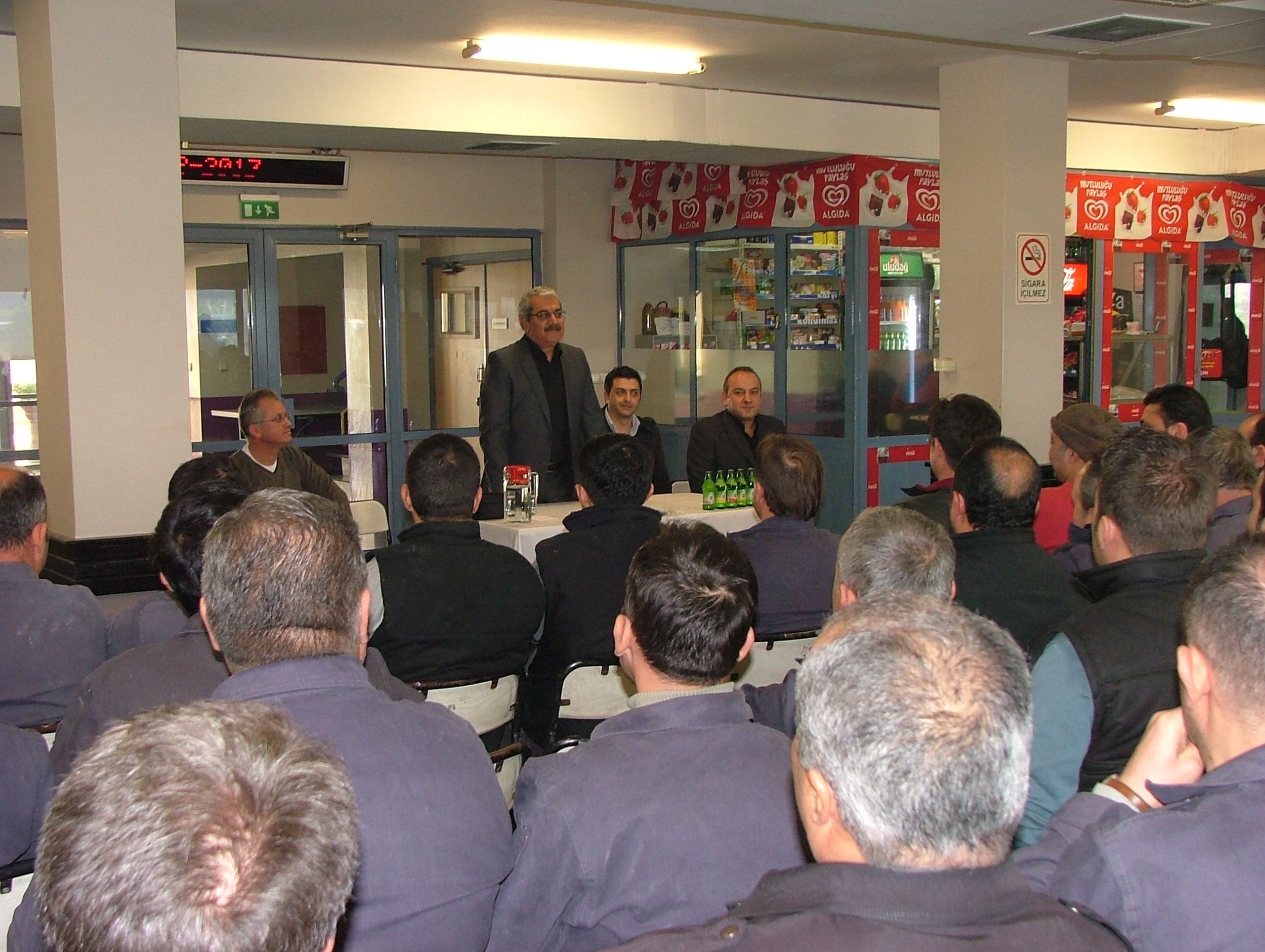 Karşılıklı soru-cevap şeklinde geçen toplantıda üyelerimizin de önerileri değerlendirildi. Fabrika yönetimini de ziyaret eden Şube Başkanımız A.Gani Gündoğdu ve Şube Başkan Yardımıcımız Osman Taş fabrikadan ayrılırken üyelerimizin memnuniyetleriyle yolcu edildi.
