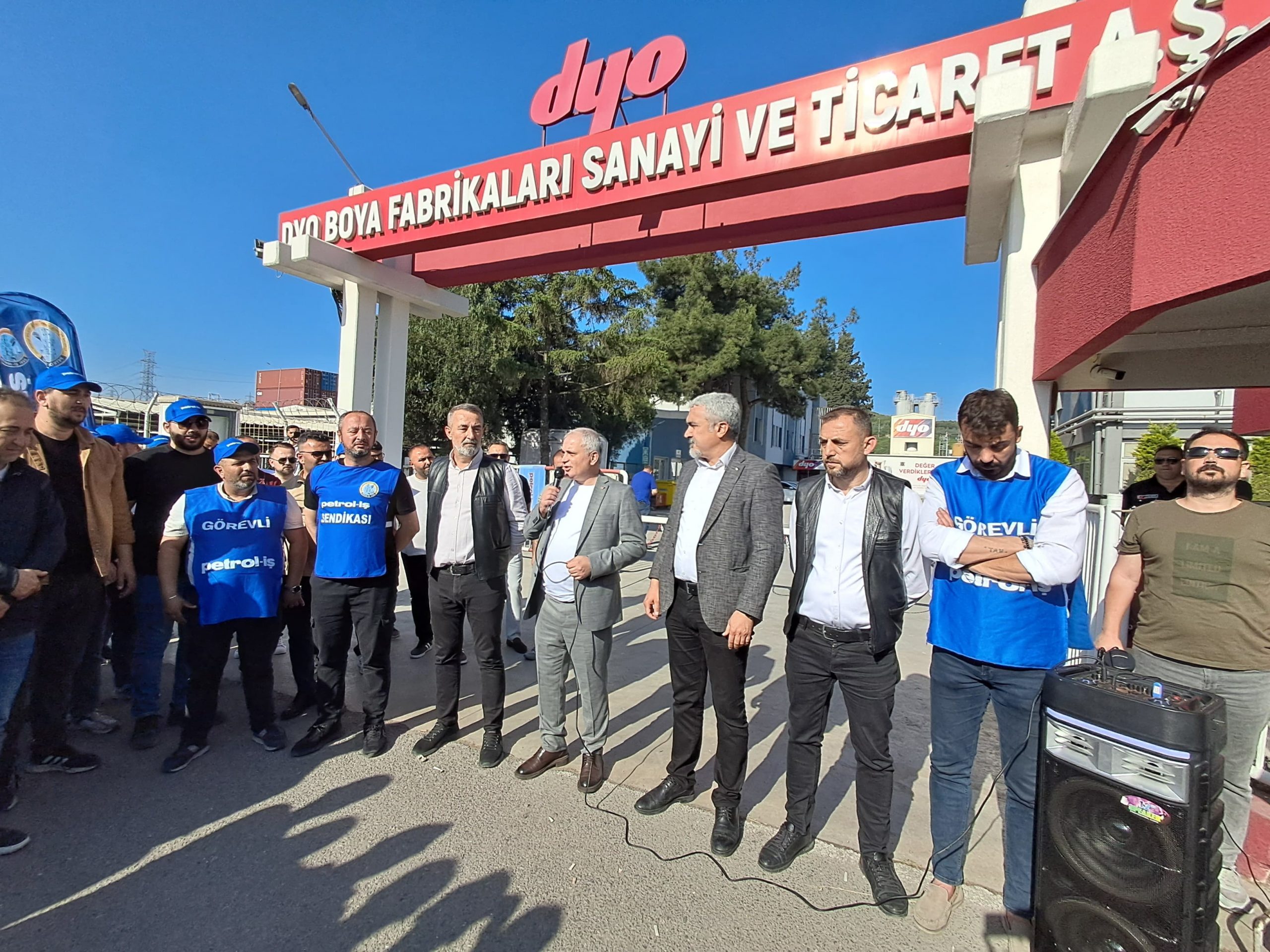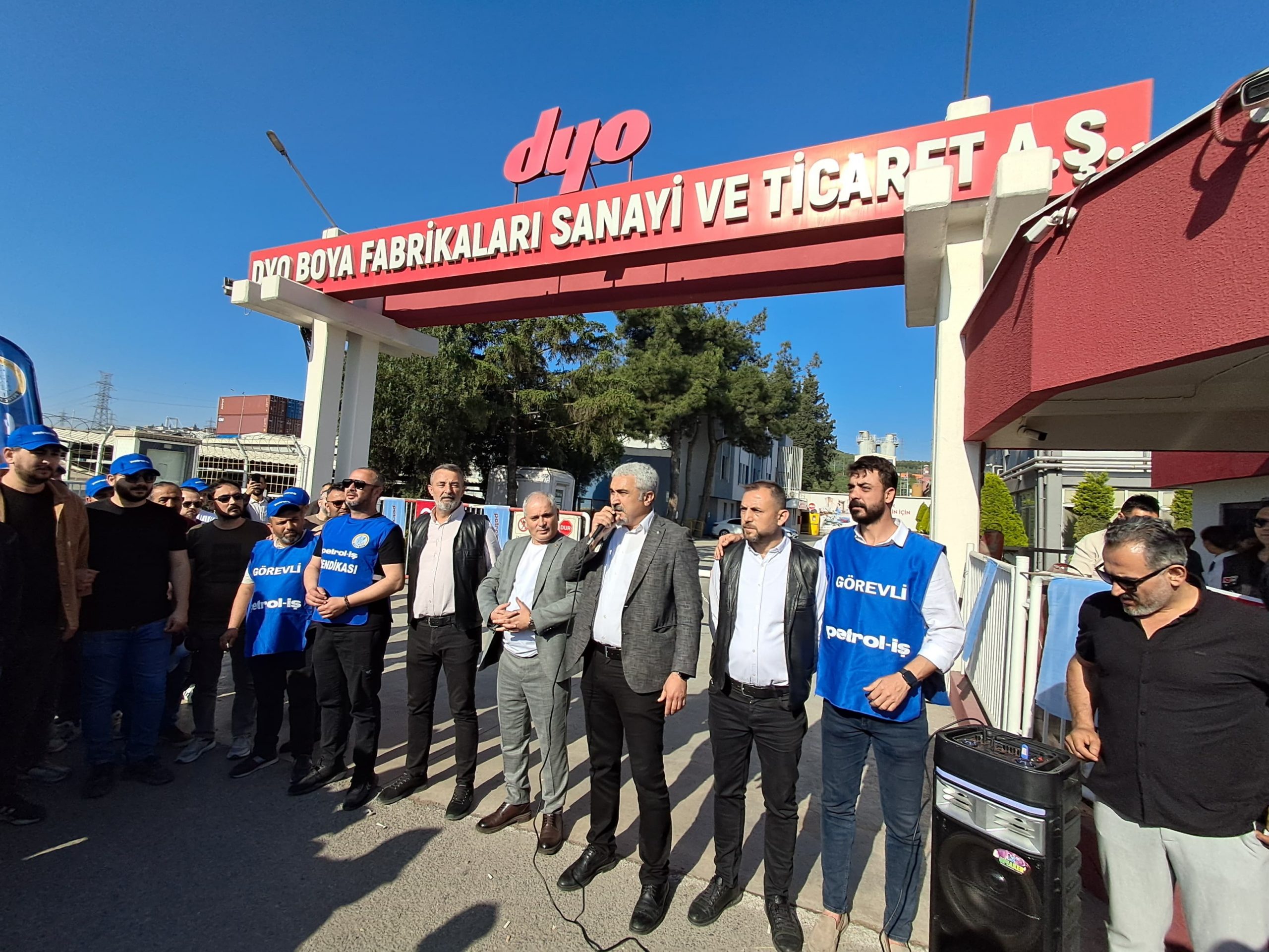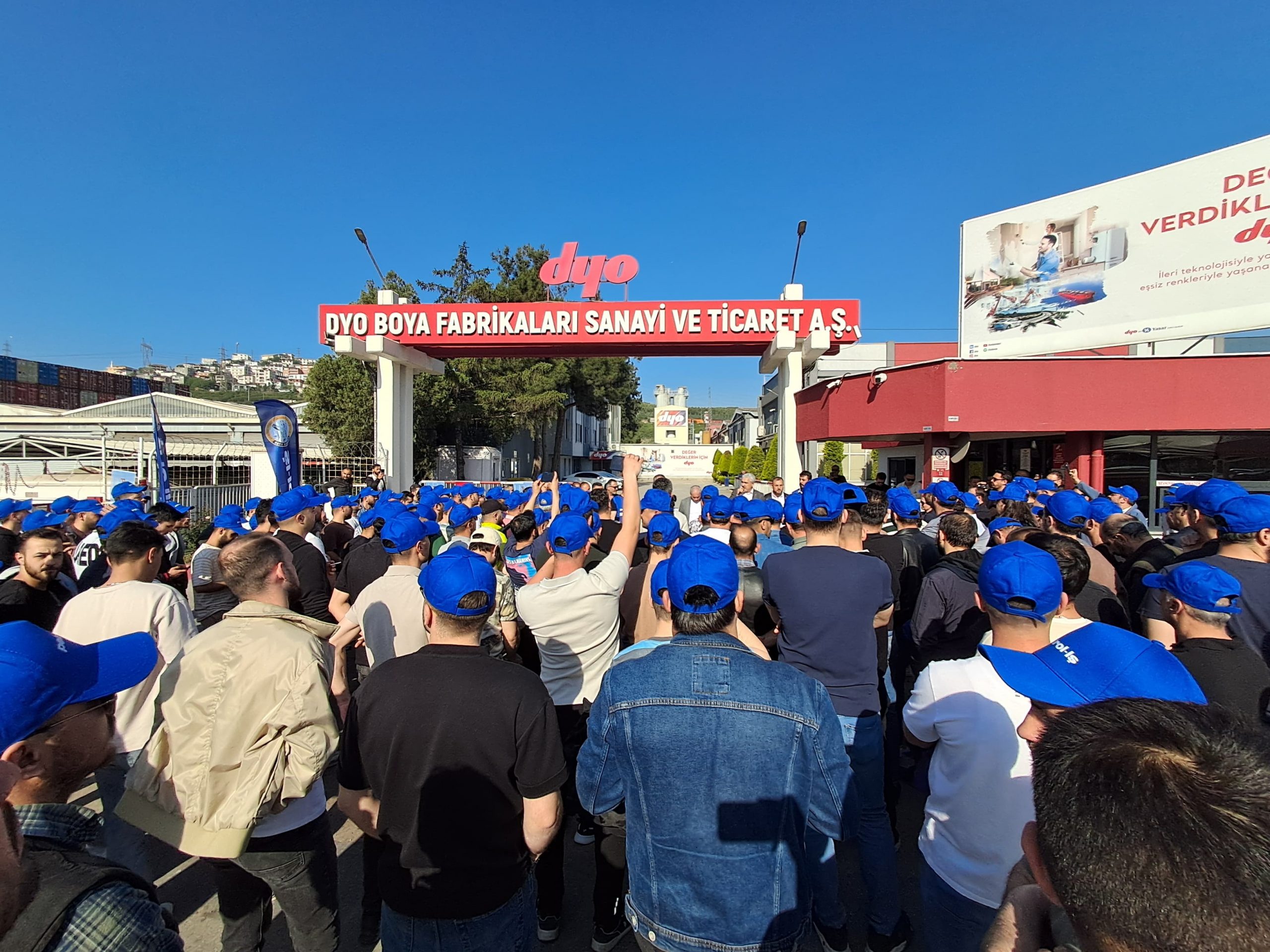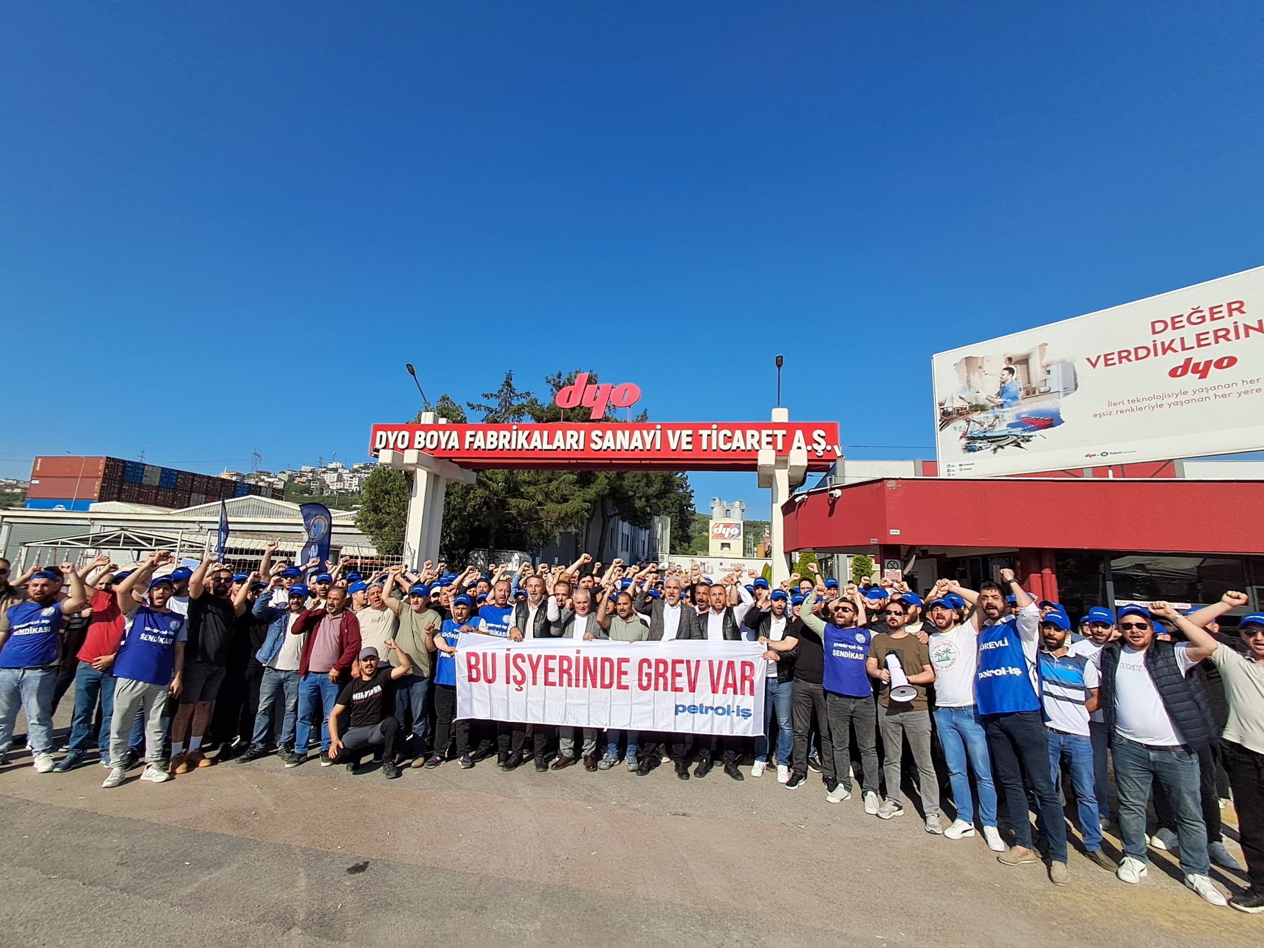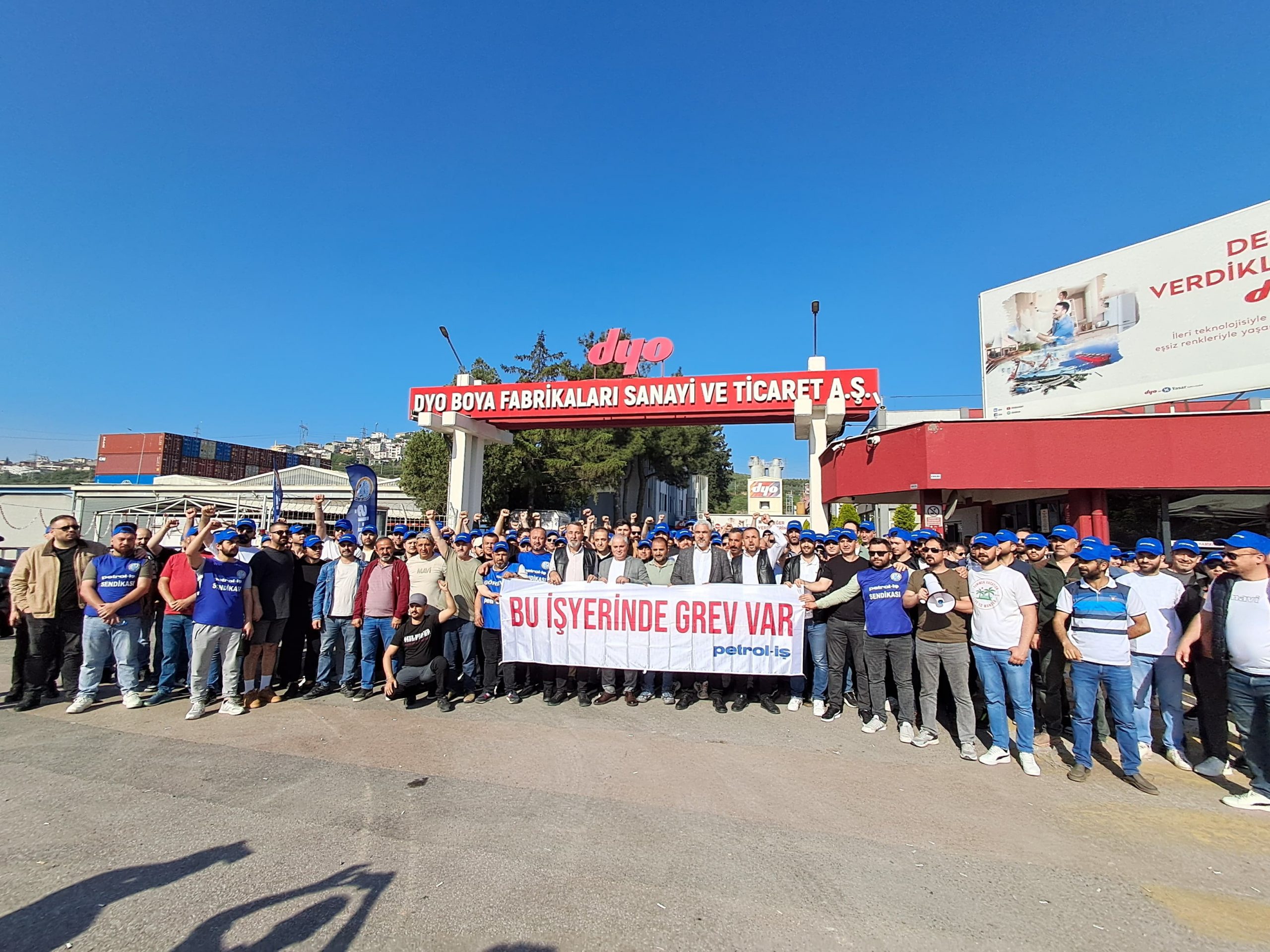 Sendikamız Gebze ve İzmir Şubelerinin örgütlü olduğu DYO Boya Fabrikaları San ve Tic. A.Ş işletmesi ile devam eden toplu iş sözleşmesi görüşmelerinden sonuç alınamaması üzerine bu sabah itibariyle grev uygulamamız başladı.