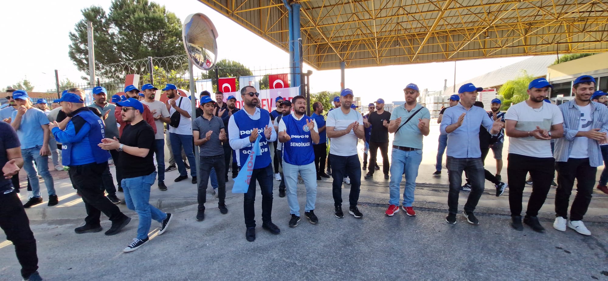 “İş, Aş, Adalet Petrol-İş’e Emanet” sloganlarını attılar. Konuşmalarının ardından ise slogan, türkü ve halaylarla grev alanını bayram yerine döndü.