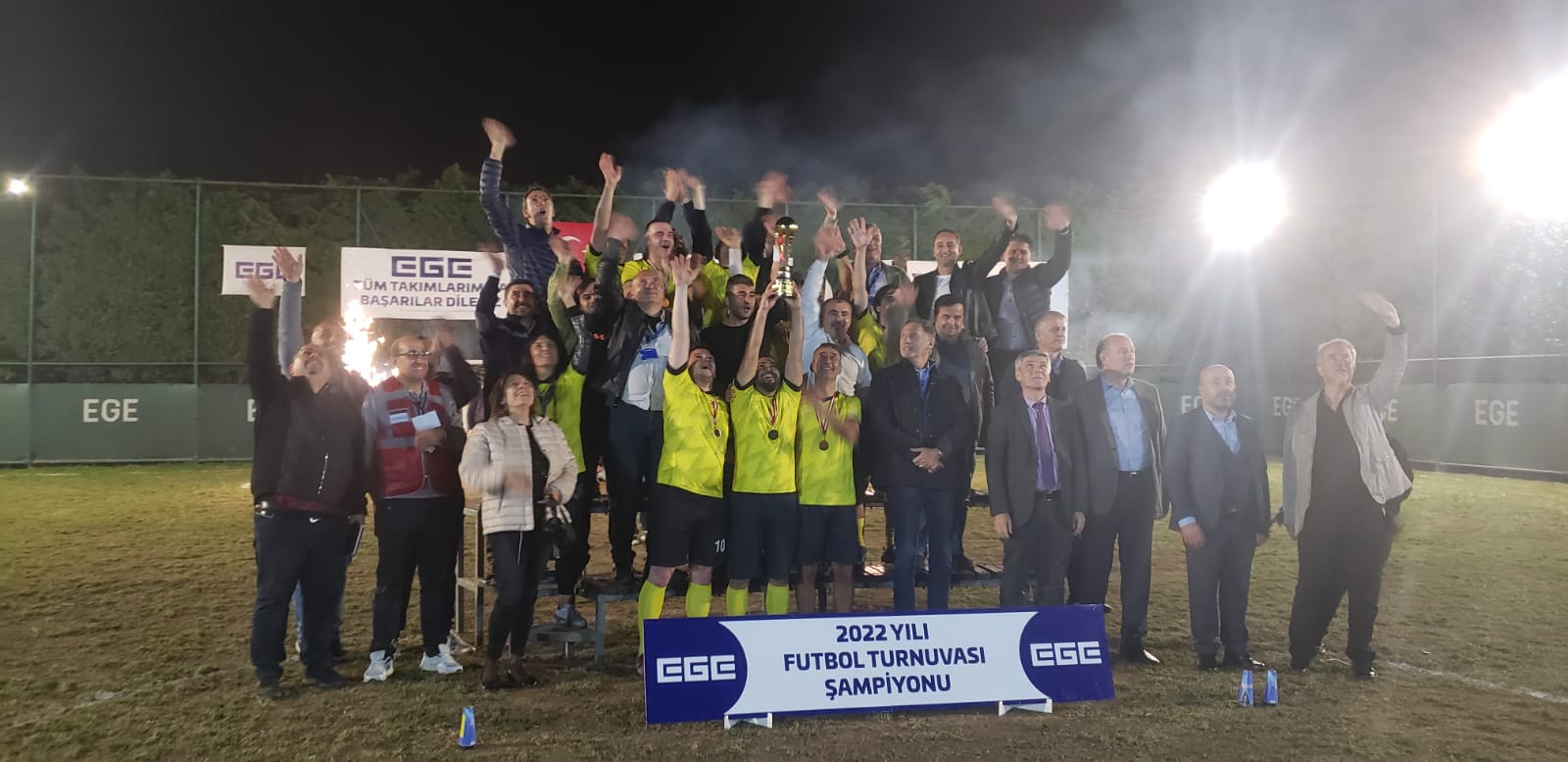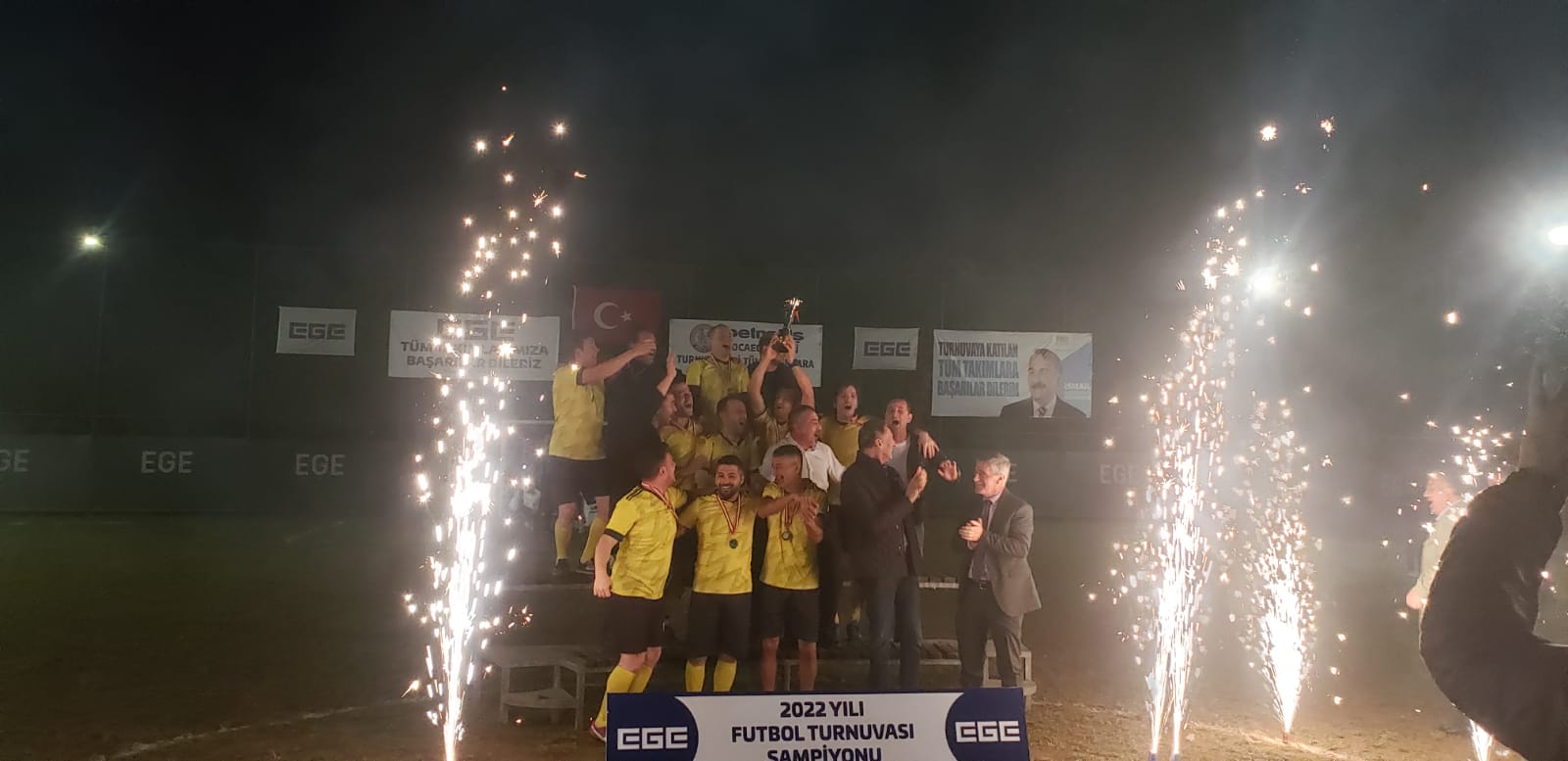 Turnuva sonunda dereceye giren takımlara Ege Kimya yöneticilerimiz ile sendikamız yöneticileri kupa ve hediyelerini taktim ettiler.