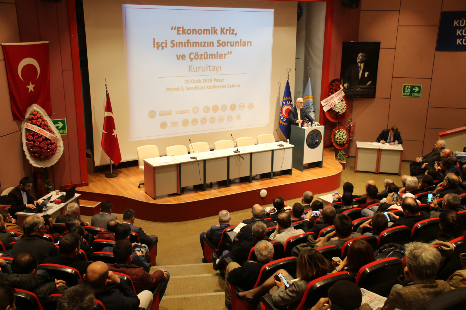 Petrol-İş’in ev sahipliğinde 20 Ocak Pazar günü “Ekonomik Kriz, İşçi Sınıfımızın Sorunları ve Çözümler” başlıklı Kurultay düzenledi. Kurltay’da işçi sınıfının içinde bulunduğu kriz koşullarından çıkış yolları ve çözüm önerileri üzerine tartışmalar yürütüldü.