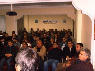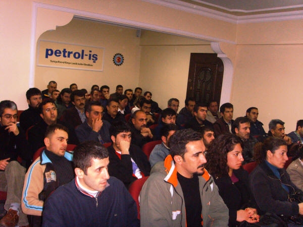 Krizle yatıp, krizle kalktığımız bugünlerde çalışanlarımızı bilinçlendirmek, 1929 Büyük Buhranı öncesi ve sonrasında dünyada yaşanan olayları ve gelişmeleri çalışanlarımıza göstermek, içinde bulunduğumuz ve yaşadığımız krizin önemini anlatmak için Gebze Şubemizin örgütlü olduğu işyerlerinden üyelerimize bir sunum yapıldı.Sunumdan amacımız krize çalışanlarımızın dikkatini çekmekti. Gebze Şubemiz konferans salonunda yapılan sunuma ilgi büyüktü. Katılımcılara önce 53 dakikalık film izletildi. Ardından konular üzerinde tartışma açıldı. Yapılan bu sunum ve bilgilendirmenin amacı, 30 Kasım 2008'de yapılacak mitinge temsilci ve yöneticilerin yanısıra çalışanların da dikkatini çekmek ve katılımı arttırmaktı. Bunu da yaptığımız mitingde gördük. Mesaj yerine ulaşmıştı. Petrol-İş Sendikası önümüzdeki günlerde de Gebze Şubesi olarak günün anlam ve önemini anlatan gösteri ve sunumlar yapılacaktır. Tüm çalışanlarımızın duyarlılığı devam ettiği sürece bu etkinlikler devam edecektir. Tüm çalışanlarımıza duyurulur.