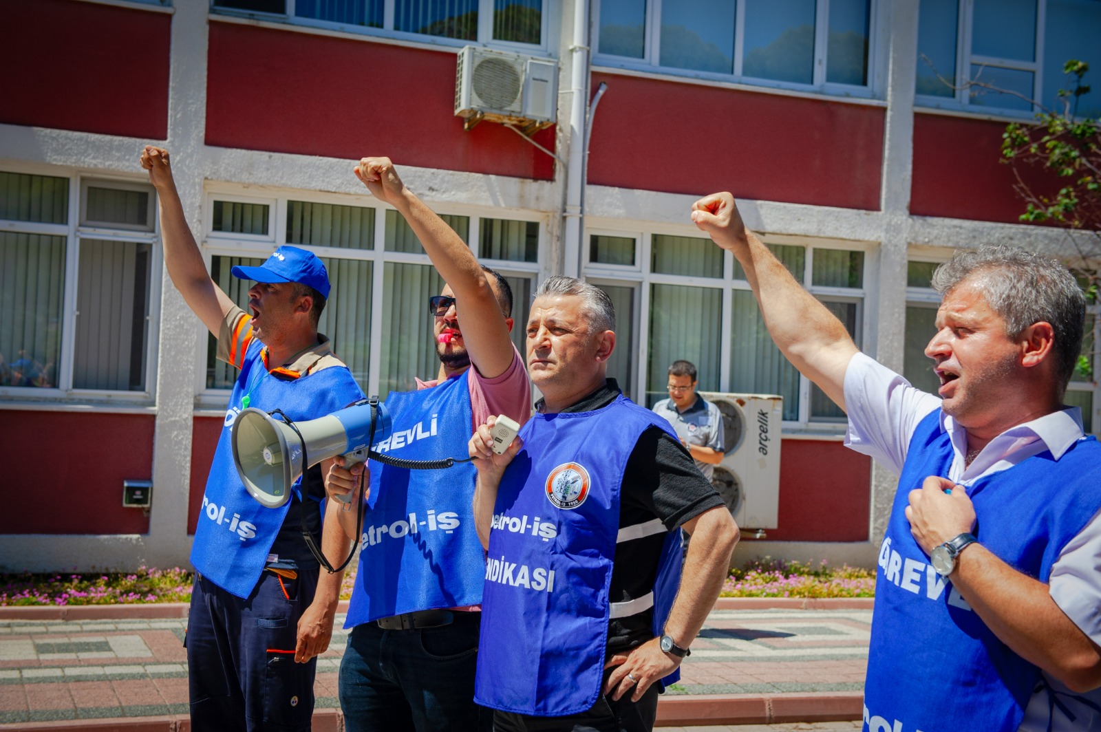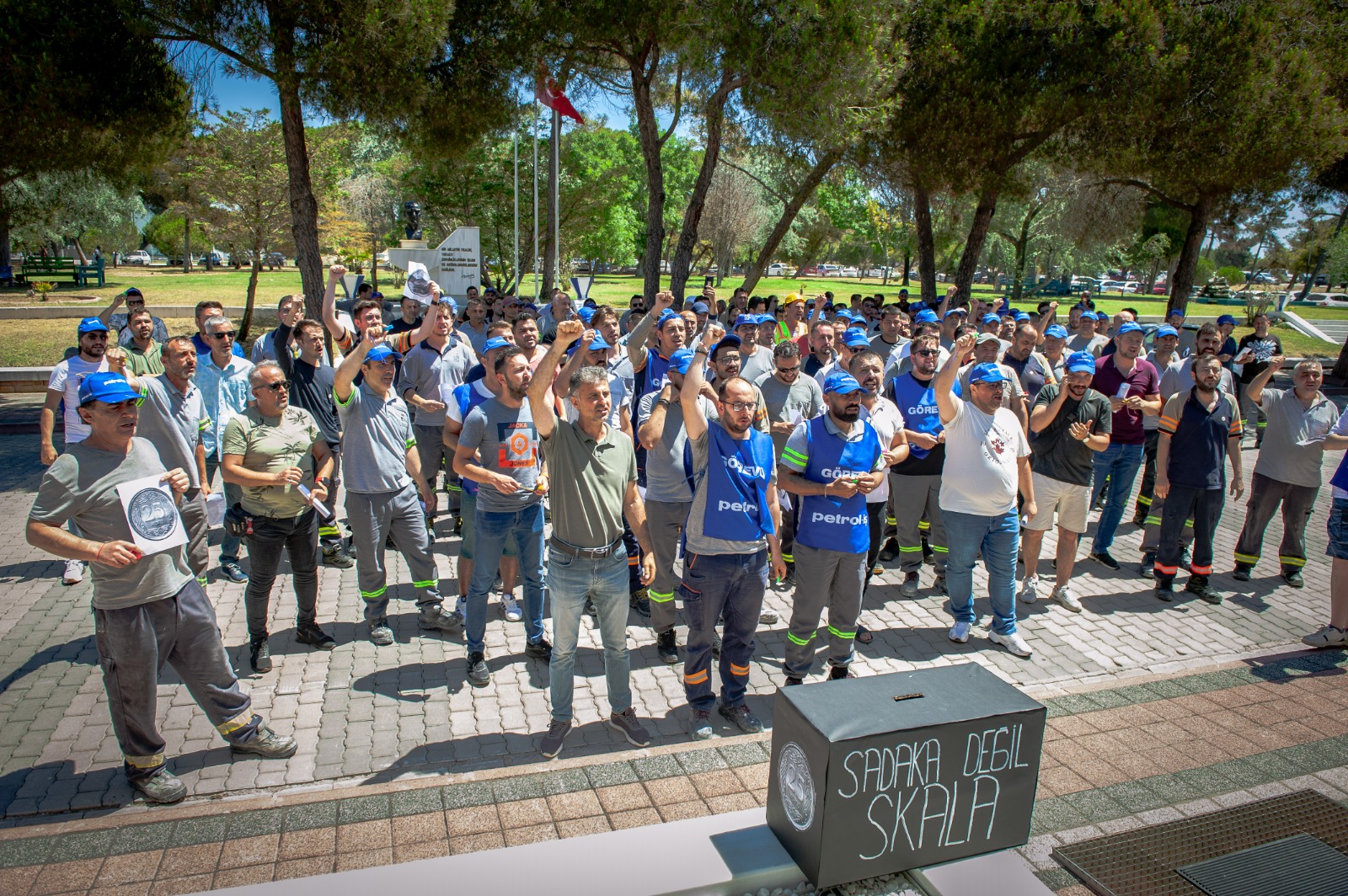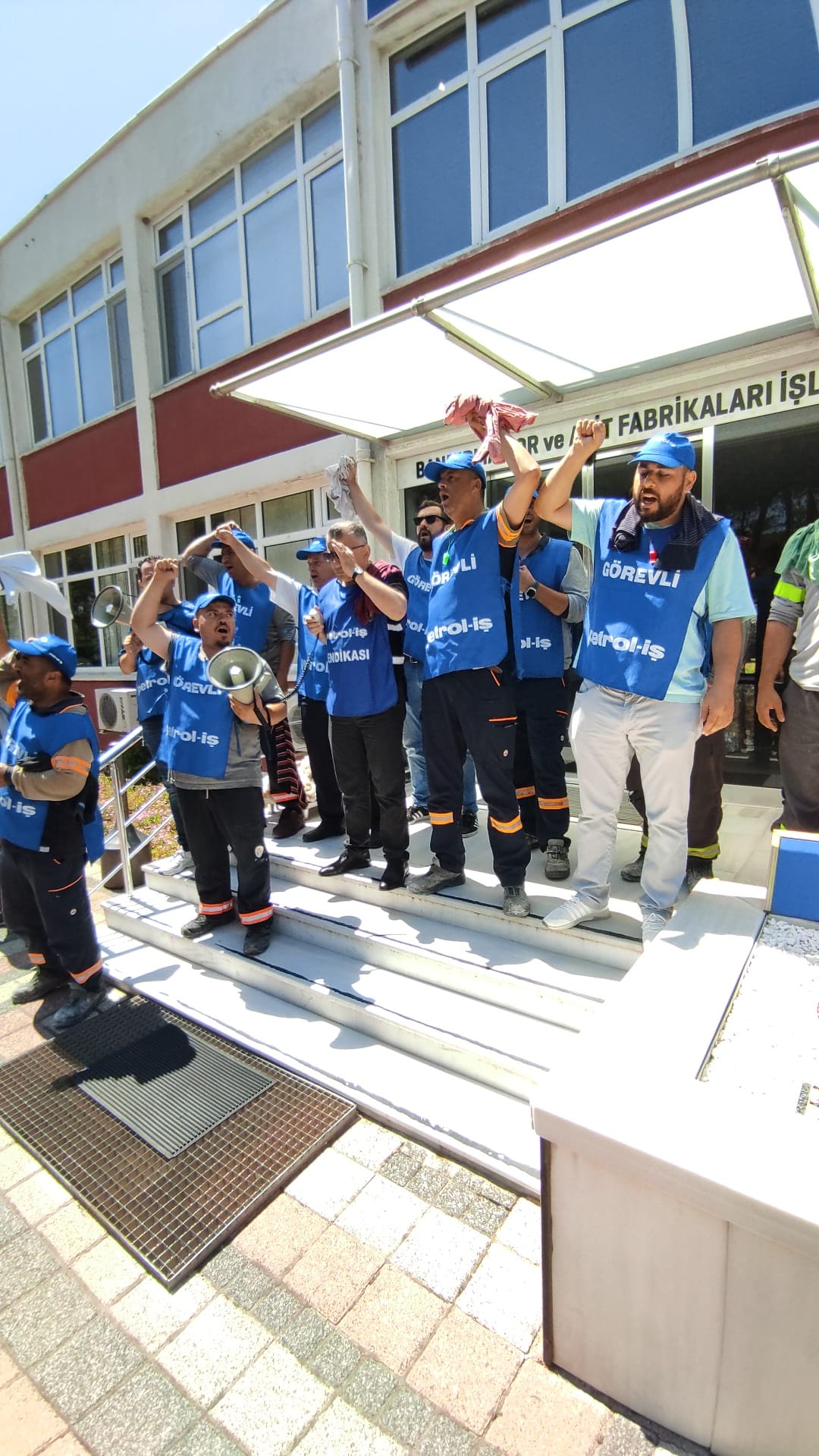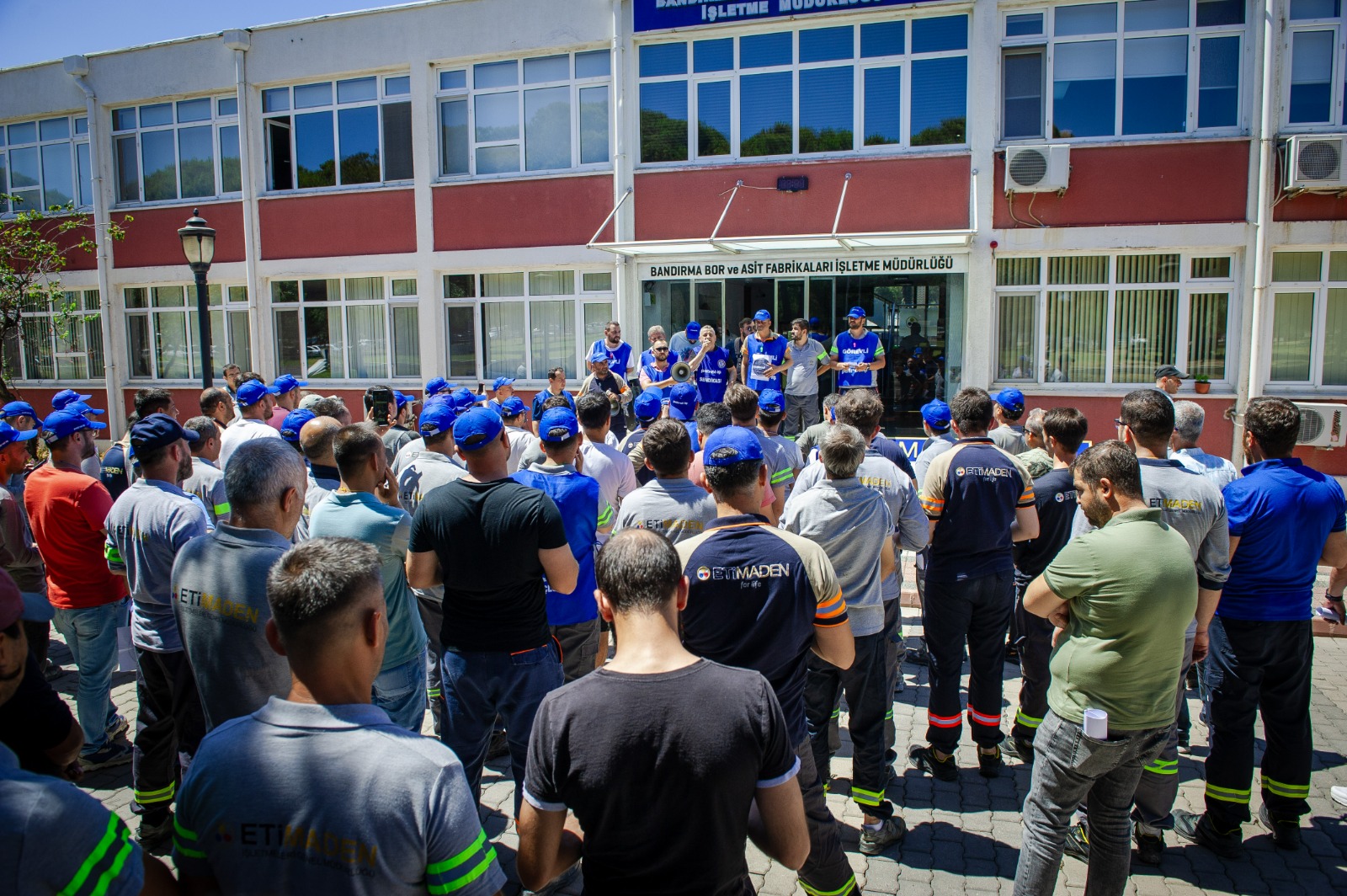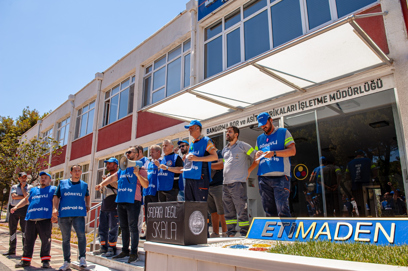Bandırma Şubemizin örgütlü olduğu Eti Maden işletmesinde toplu iş sözleşmesi henüz imzalanamadı. 17 Temmuz Pazartesi günü ise şube yöneticileri ve üyelerimizin katılımıyla işyerine grev ilanı asılmış ve ardından yapılan basın açıklaması ile eylemlerin bu hafta süreceği ilan edilmişti.