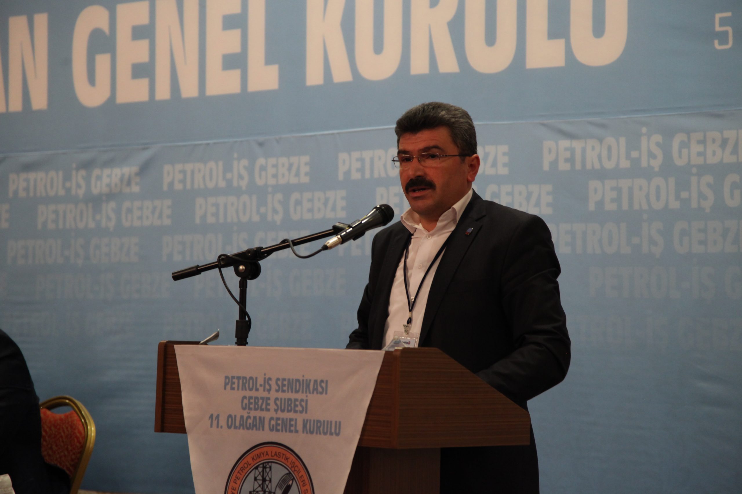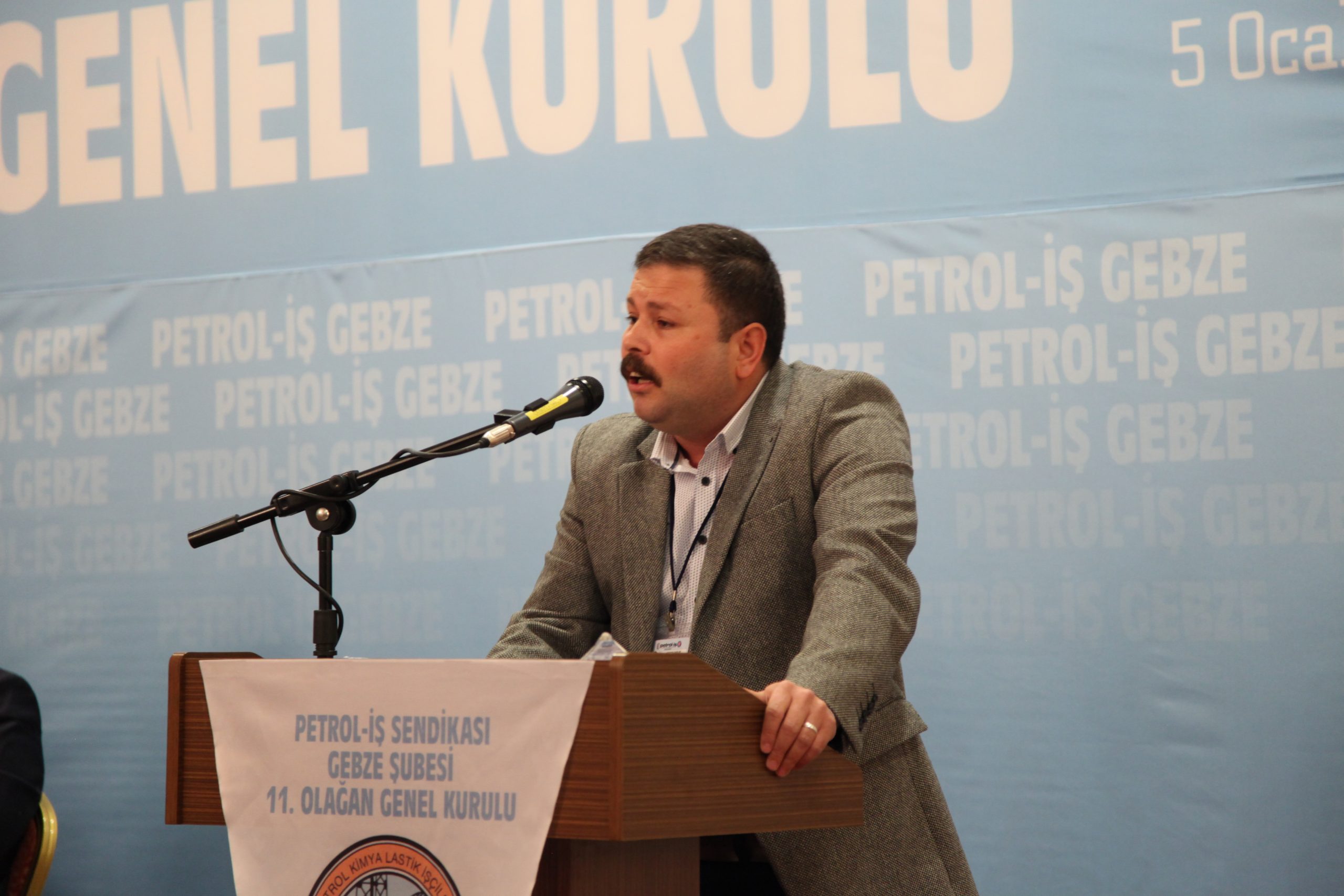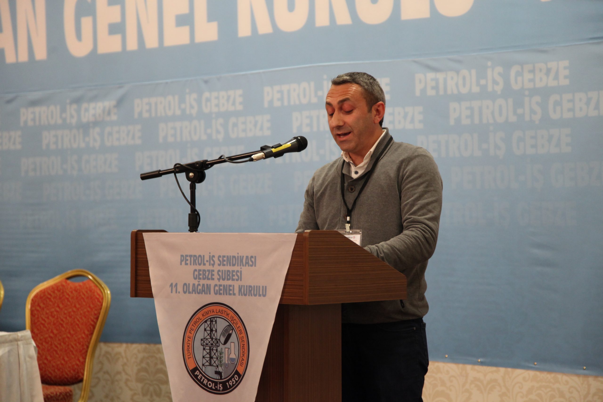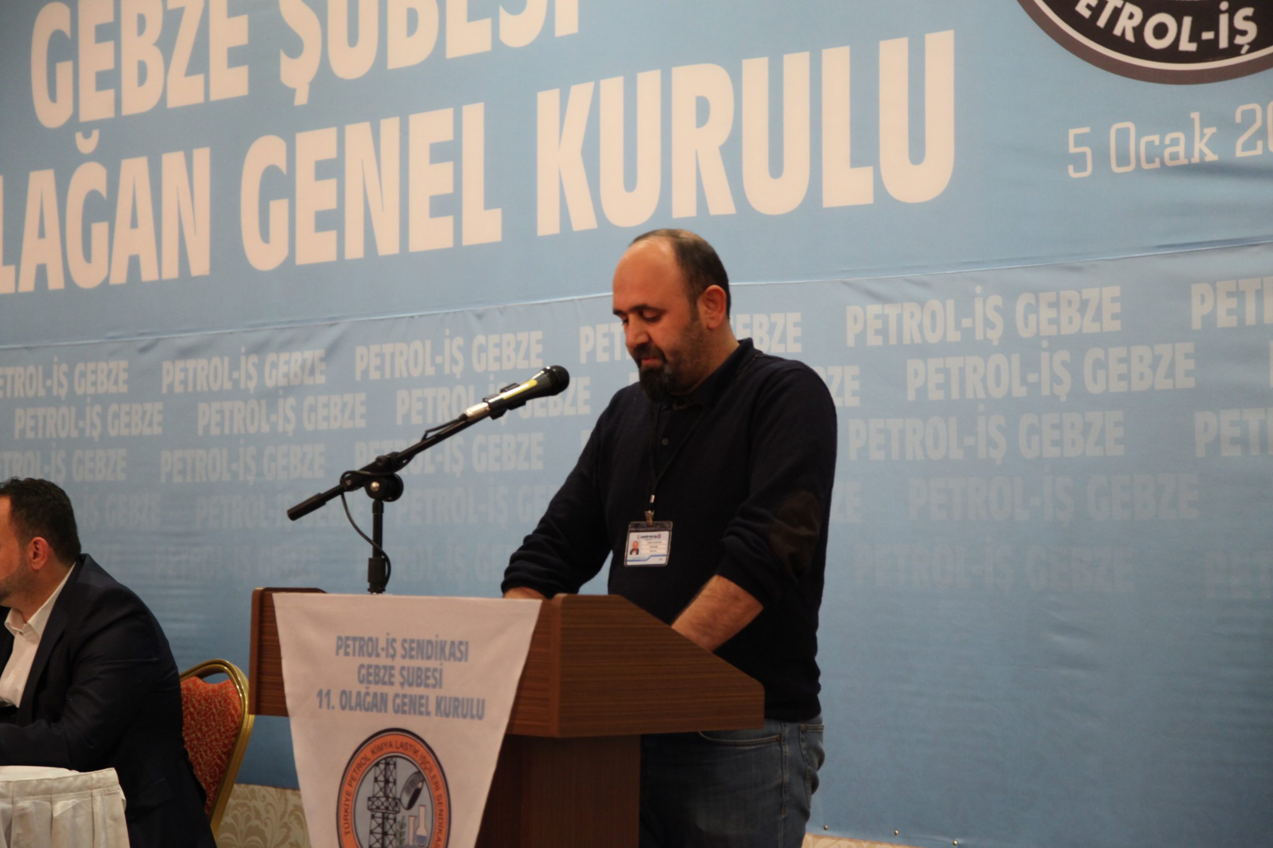 Gebze Şube Başkanı Eyüp Akdemir,11. Olağan Genel kurulun hayırlı olmasını diledi ve katılan misafirlere hoşgeldiniz diyerek başladı.  Başkan Akdemir geride bırakılan dört yıllık dönemin sadece Türkiye açısından değil tüm dünya emekçileri açısından zorlukların ve sıkıntıların had safhaya çıktığı bir dönem olduğunu belirtti. Akdemir, “Dünyada sistem artık tıkanma noktasına gelmiş, ekonomik ve siyasal krizler nedeniyle birçok ülkede ciddi sorunlar ortaya çıkmakta ve emperyalist merkezler bu krizi başka coğrafyalarda başlattıkları savaşlarla aşmaya çalışmaktadır” dedi.