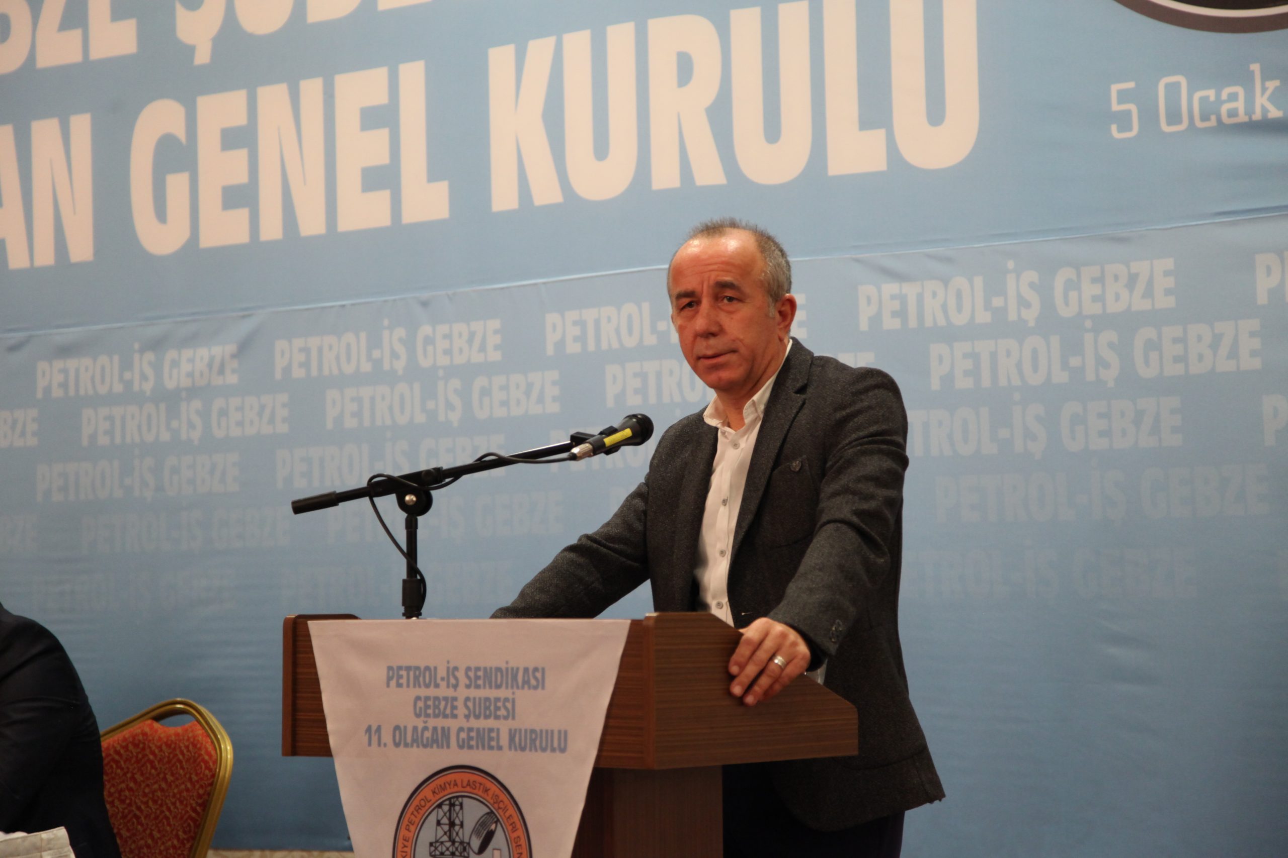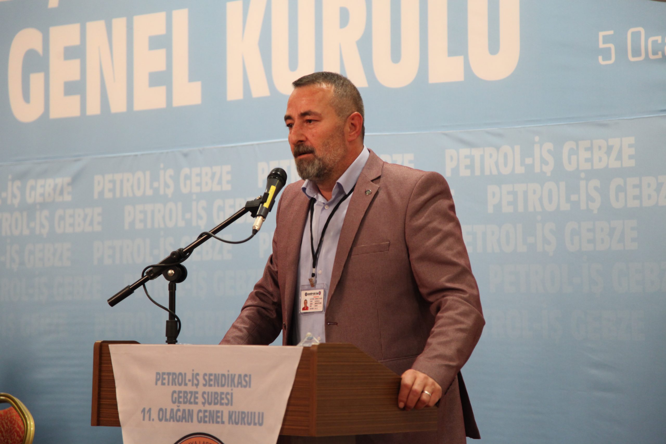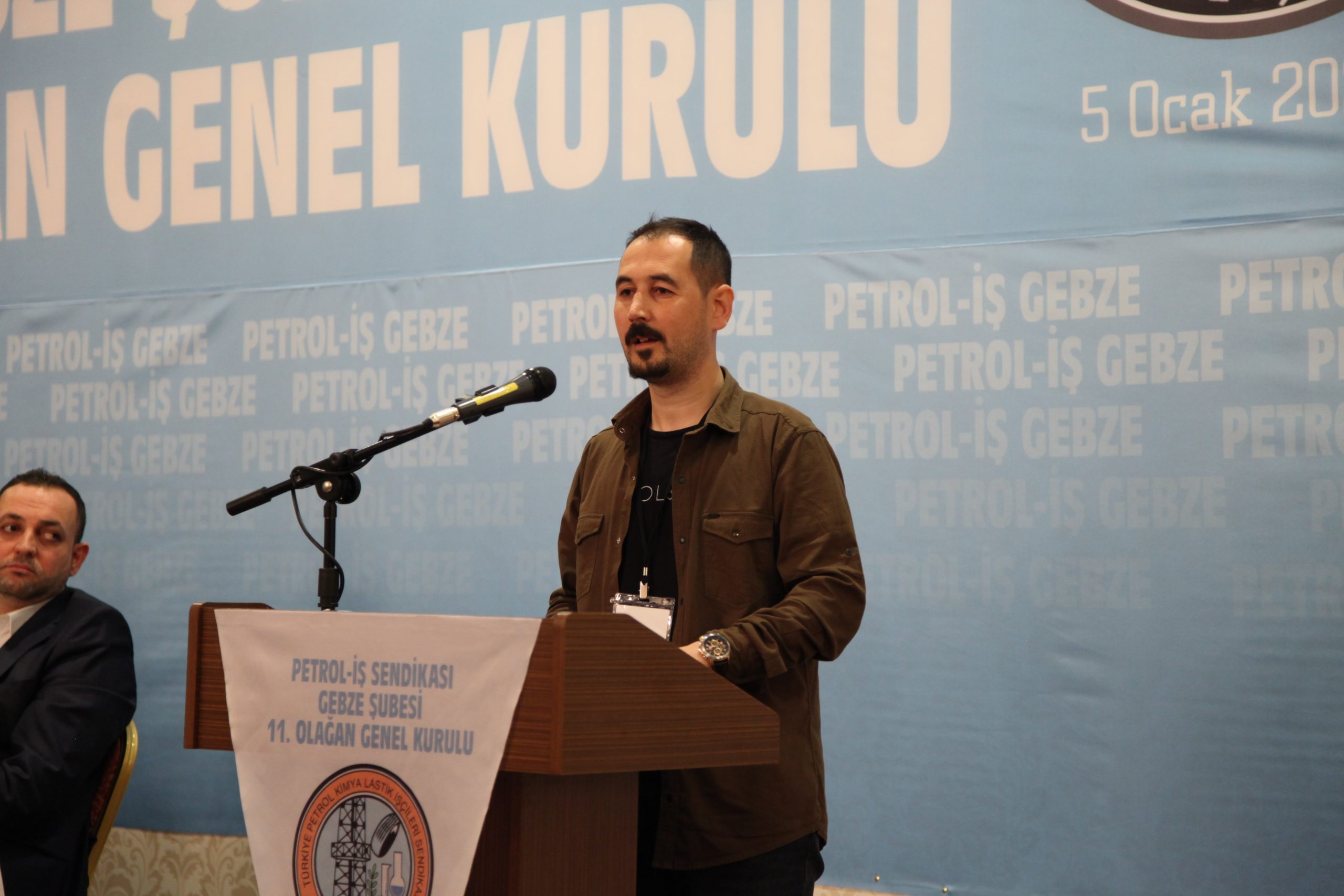 Gebze Şube Başkanı Eyüp Akdemir,11. Olağan Genel kurulun hayırlı olmasını diledi ve katılan misafirlere hoşgeldiniz diyerek başladı.  Başkan Akdemir geride bırakılan dört yıllık dönemin sadece Türkiye açısından değil tüm dünya emekçileri açısından zorlukların ve sıkıntıların had safhaya çıktığı bir dönem olduğunu belirtti. Akdemir, “Dünyada sistem artık tıkanma noktasına gelmiş, ekonomik ve siyasal krizler nedeniyle birçok ülkede ciddi sorunlar ortaya çıkmakta ve emperyalist merkezler bu krizi başka coğrafyalarda başlattıkları savaşlarla aşmaya çalışmaktadır” dedi.