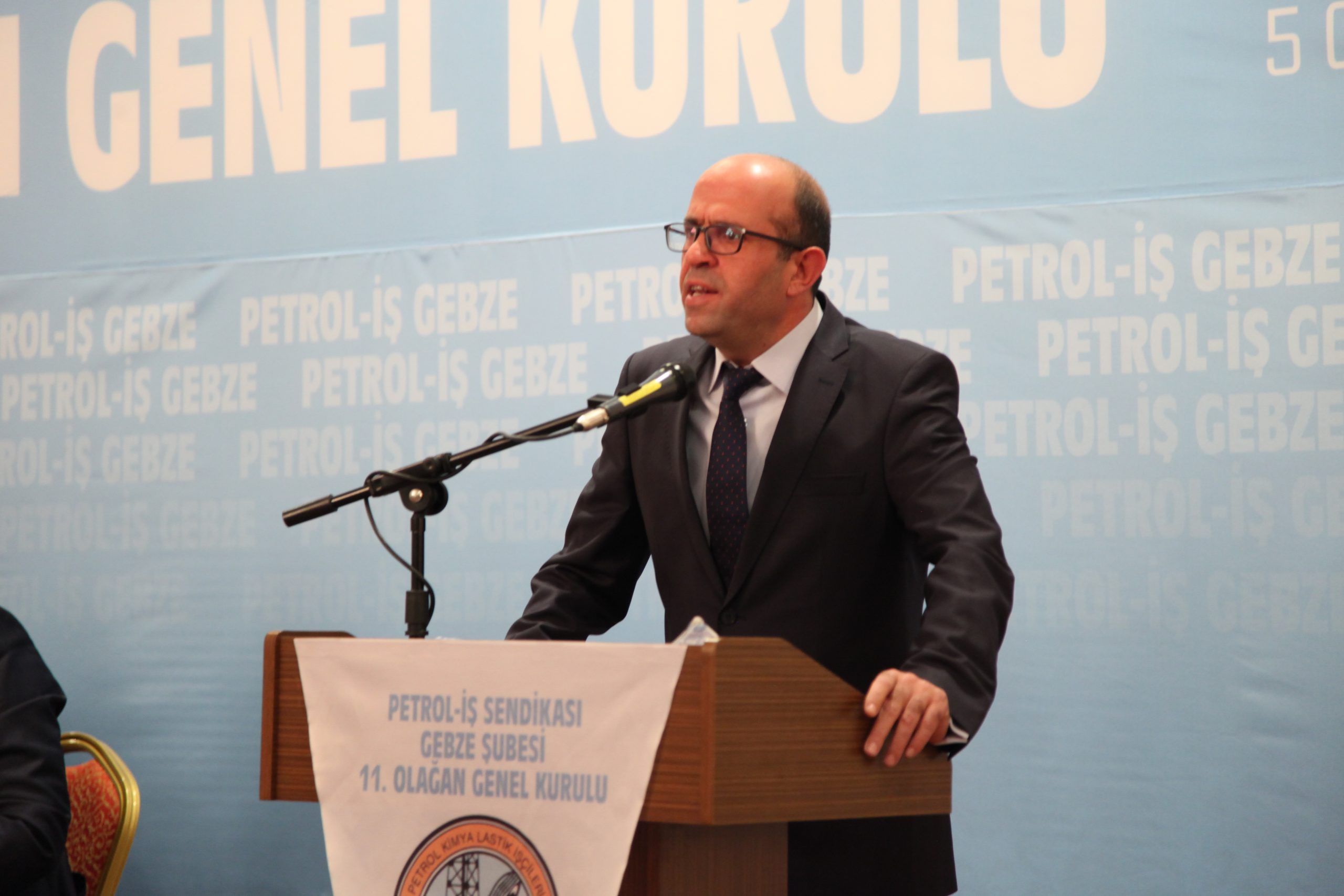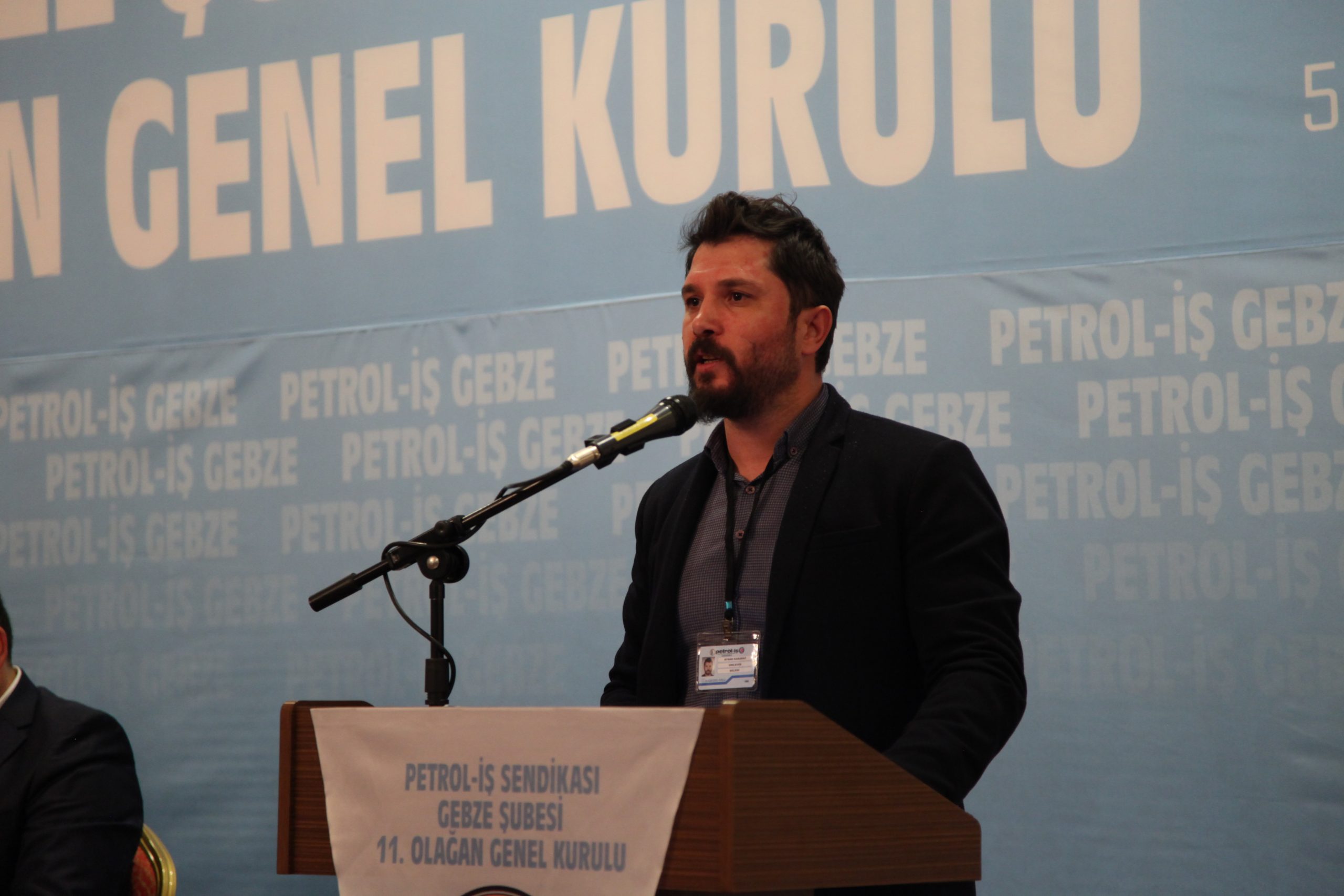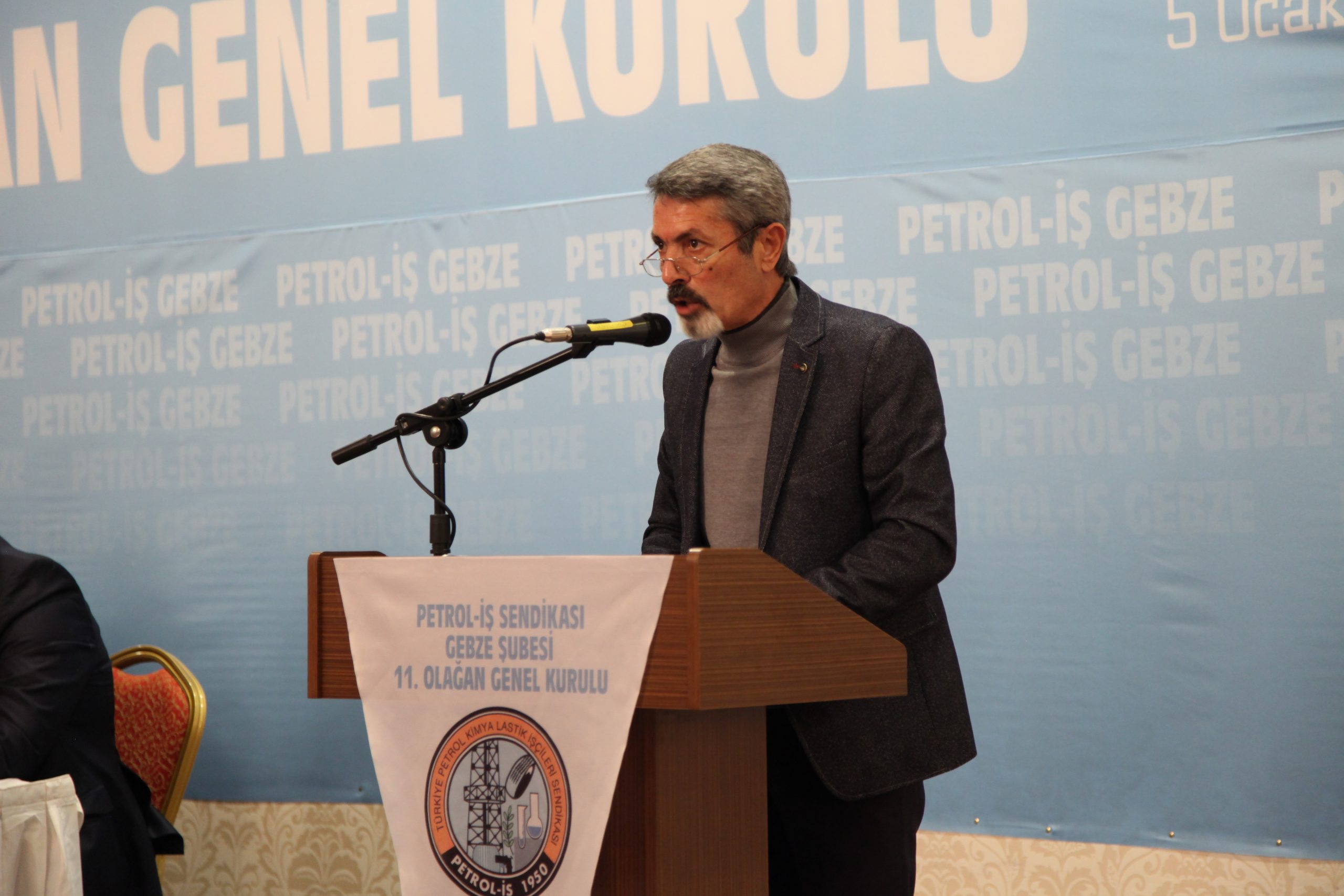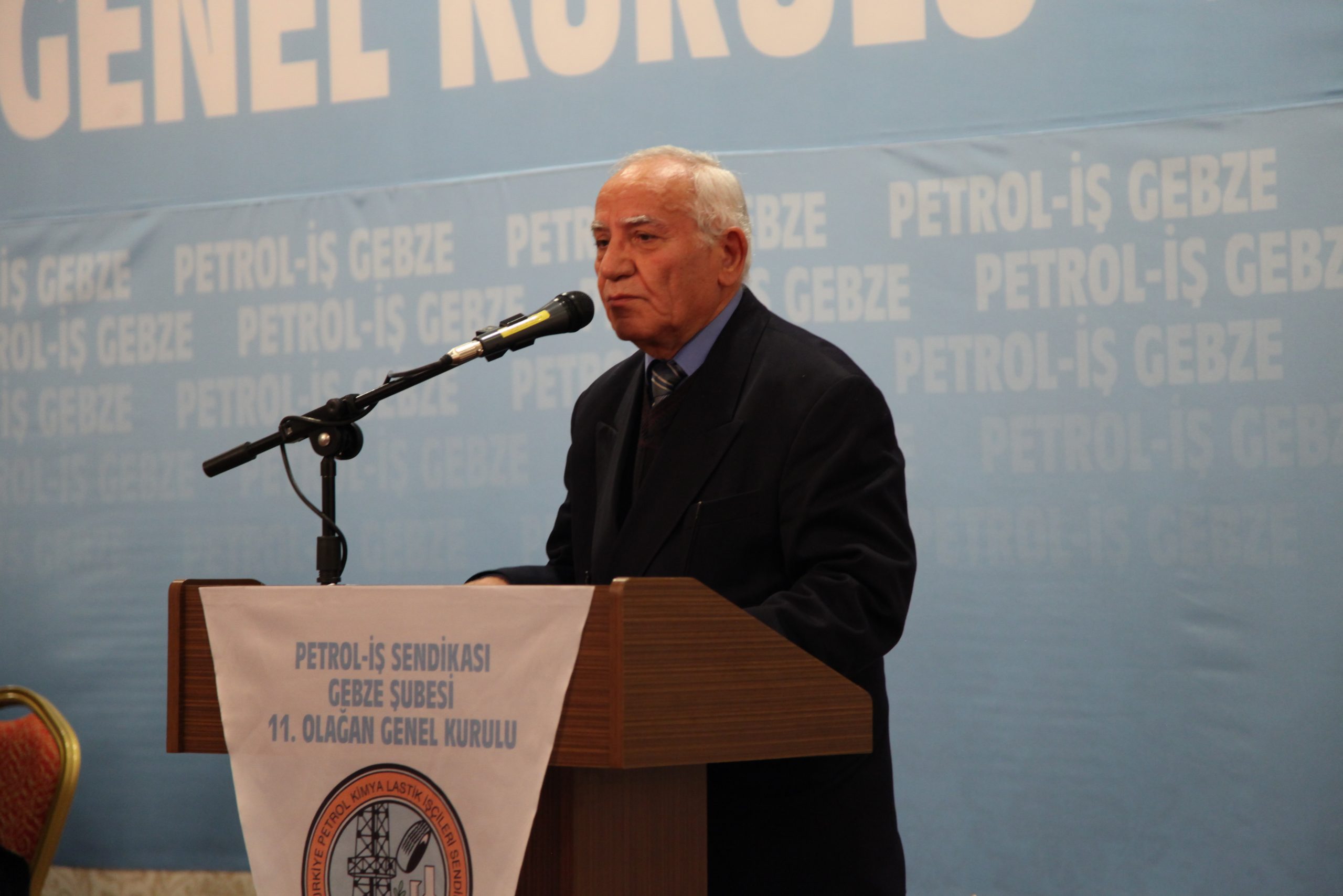 Gebze Şube Başkanı Eyüp Akdemir,11. Olağan Genel kurulun hayırlı olmasını diledi ve katılan misafirlere hoşgeldiniz diyerek başladı.  Başkan Akdemir geride bırakılan dört yıllık dönemin sadece Türkiye açısından değil tüm dünya emekçileri açısından zorlukların ve sıkıntıların had safhaya çıktığı bir dönem olduğunu belirtti. Akdemir, “Dünyada sistem artık tıkanma noktasına gelmiş, ekonomik ve siyasal krizler nedeniyle birçok ülkede ciddi sorunlar ortaya çıkmakta ve emperyalist merkezler bu krizi başka coğrafyalarda başlattıkları savaşlarla aşmaya çalışmaktadır” dedi.