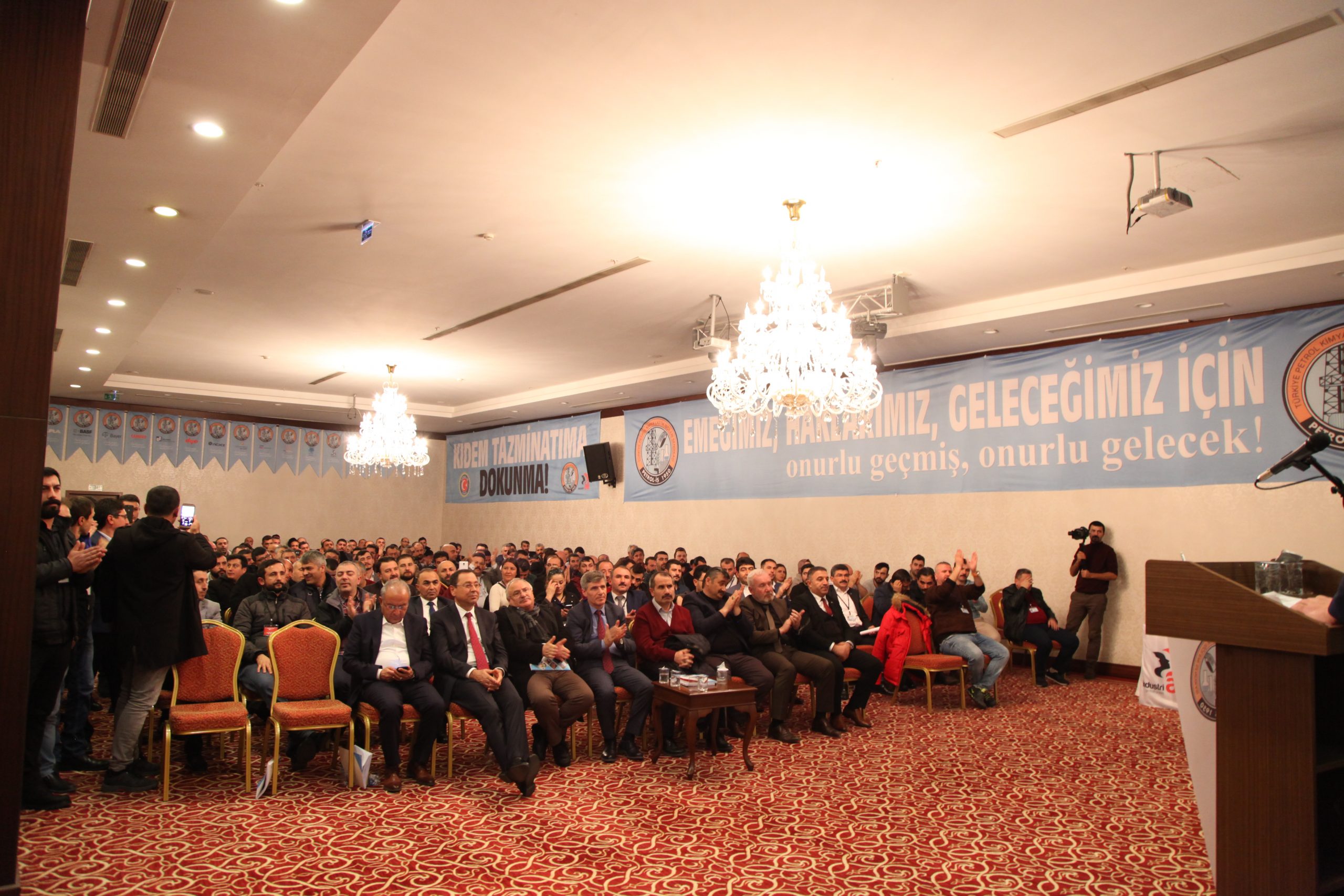 Genel kurul açış konuşmasını Genel Başkanımız  Süleyman Akyüz yaptı. Akyüz konuşmasında, “Biz bu sendikanın tozuyuz dedim, hâlâ da diyorum. Bu sendika büyük bir sendika. Biz de ona yakışır mücadele etmeliyiz” dedi.”35 yıldır kıdem tazminatıyla uğraşıyoruz” diyen Akyüz, “Kıdem tazminatını zaten kuşa çevirdiler. Eskiden tazminat hakkımız SSK tavanına eş değerdi, kopardılar. Tazminatın üçte biri böyle gitti. Kalanı da almaya çalışıyorlar. ‘Kırmızı çizgimizdir’ derken olay başa geldikten sonra birşey yapmamalıyız. Ortak bir mücadele bugünden başlamalı” dedi.