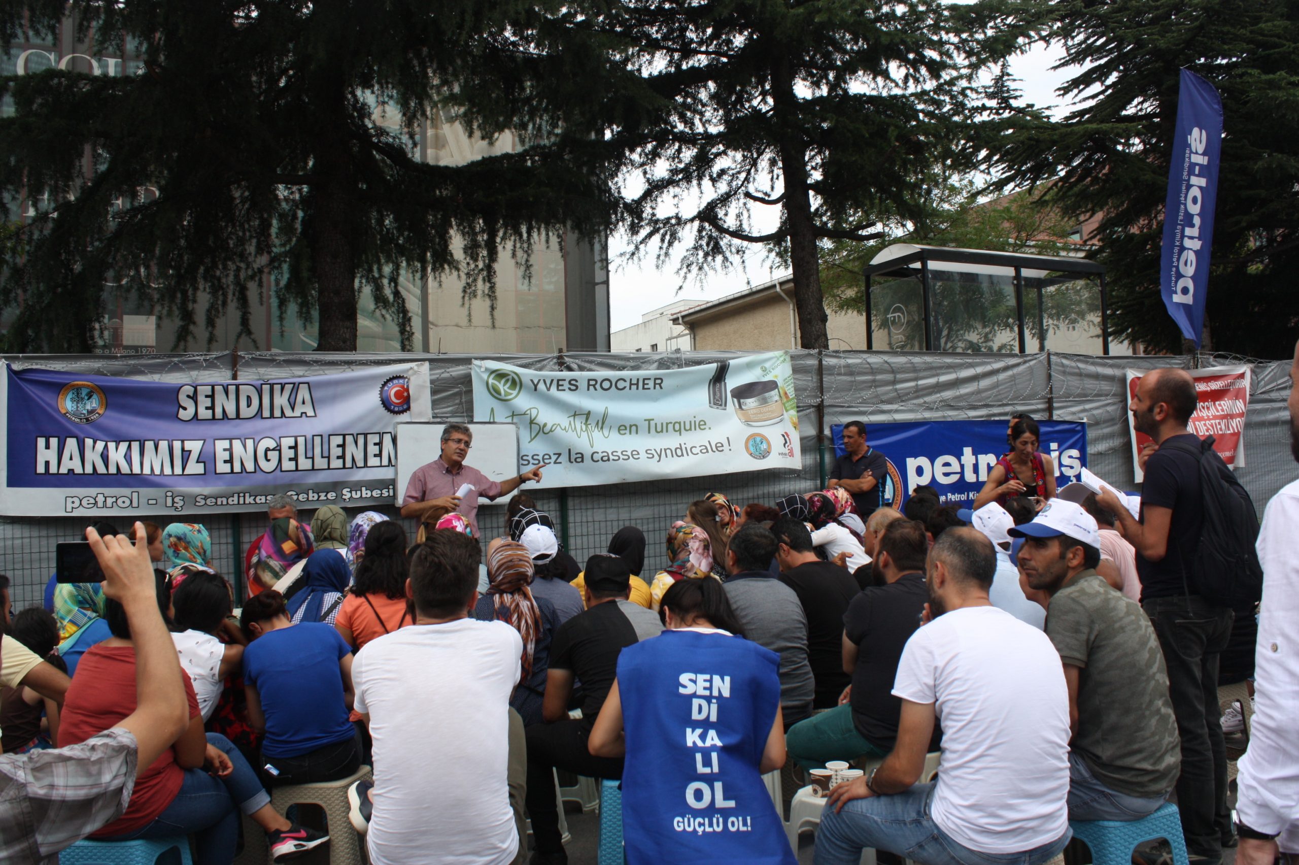 Sendikamız Eğitim Uzmanı Erhan Kaplan tarafından 31 Temmuz Salı günü direnişçi işçilere, fabrika önünde sendikal eğitimin ilk aşaması sayılabilecek bir ders yapıldı. Yaklaşık 1 saat süren eğitimde direnişçi işçiler, Flormar işçileriyle dayanışma için fabrika önünde bulunanlar ve Gebze Şube Başkan Yardımcılarımız Eyüp Akdemir ve Şivan Kırmızıçiçek(Mali) de vardı.