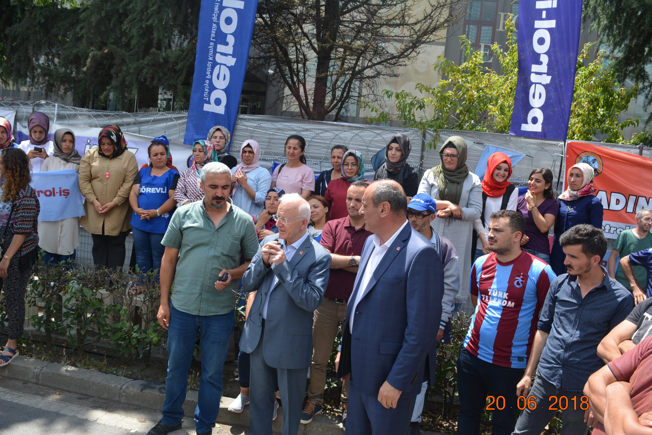 20 Haziran Çarşamba günü CHP İstanbul 1. Bölge Milletvekili Adayı Anayasa Hukukçu Akademisyen Prof. Dr. İbrahim Kaboğlu, DİSK Konfederasyon kurucusu ve ilk Genel Başkanı Kemal Türkler’in kızı Nilgün Türkler eylemde olan işçilere dayanışma ziyaretinde bulundular.
