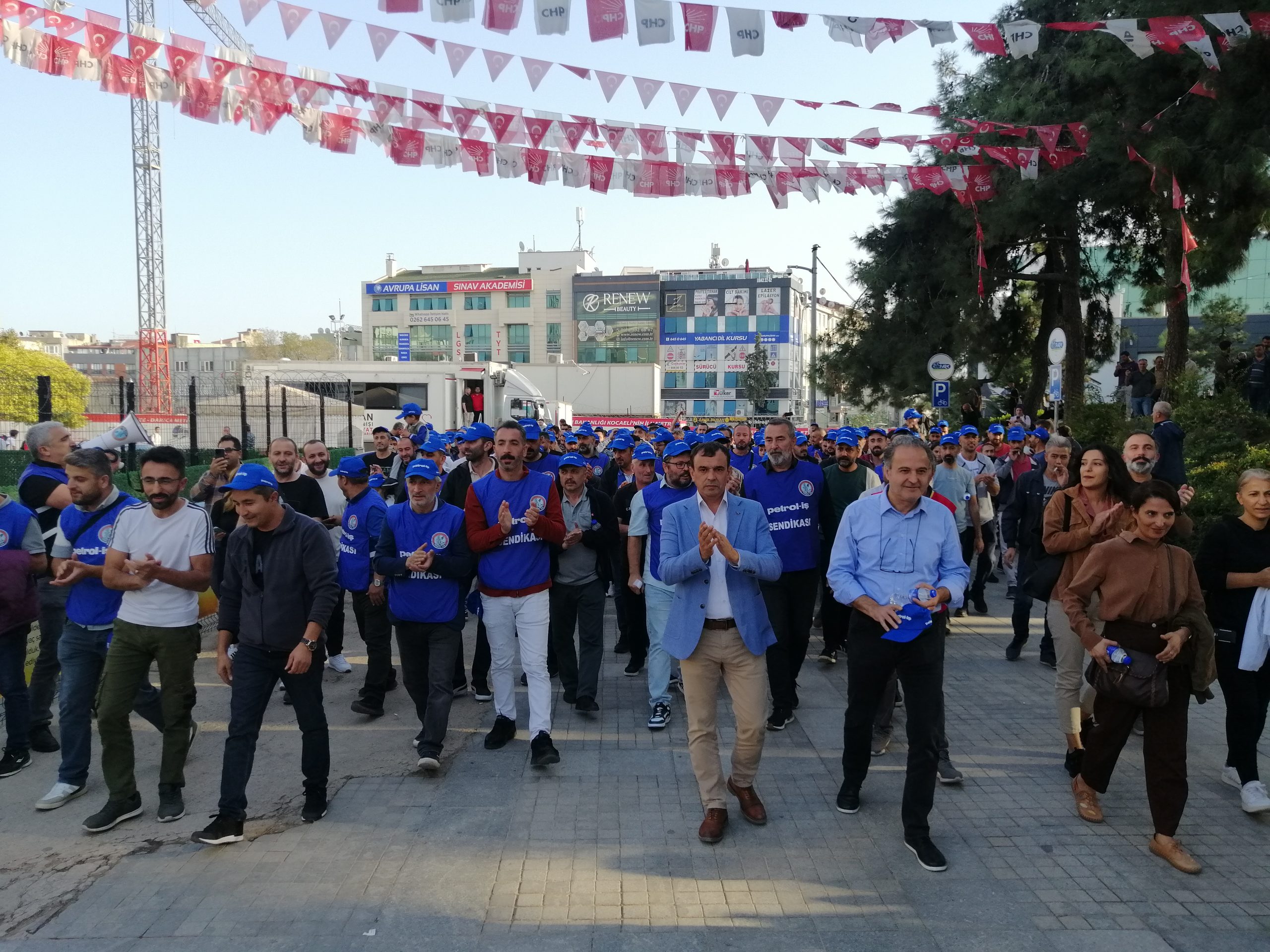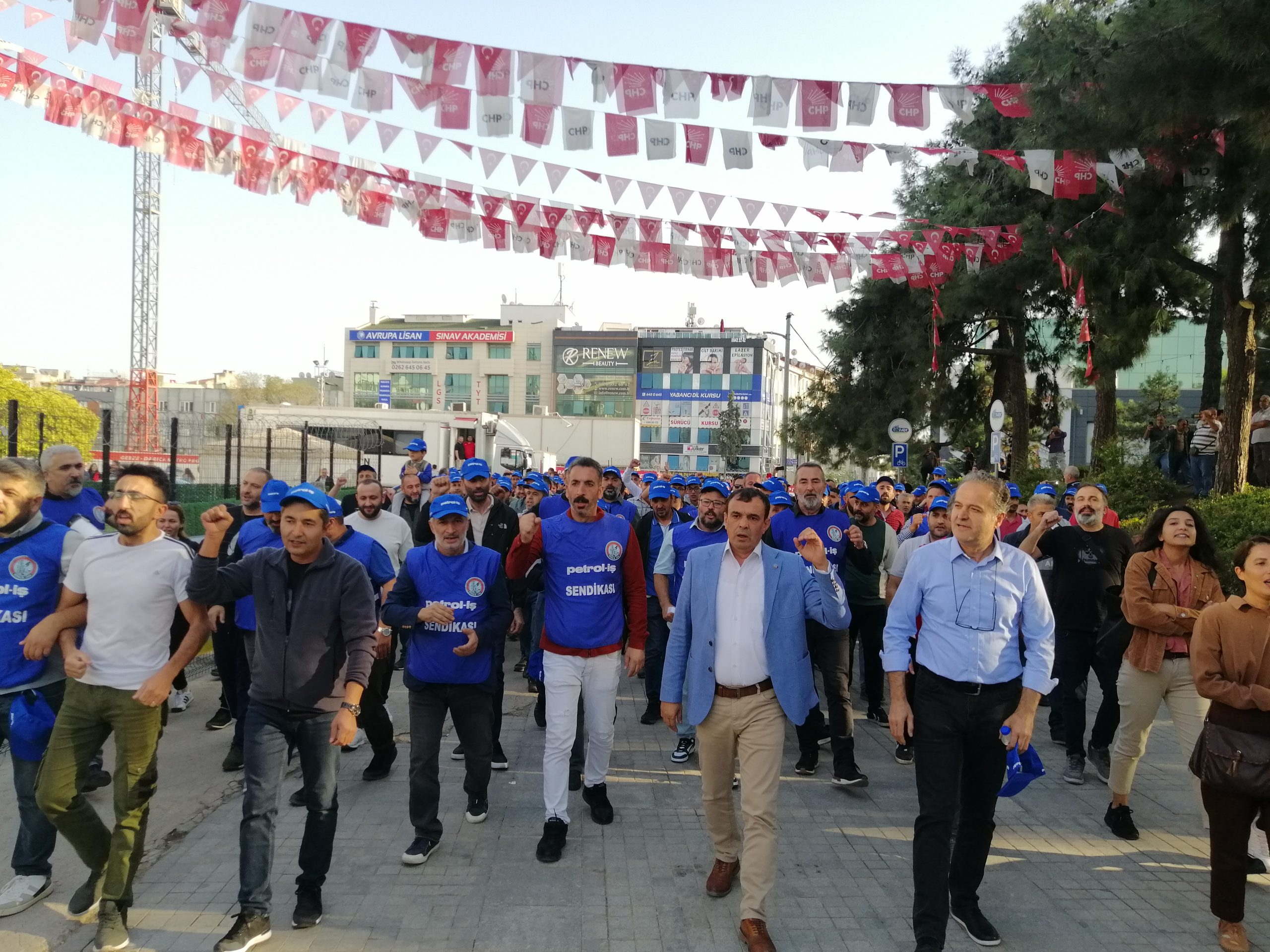 Eyleme, Gebze Şubemizin katılımı yoğun oldu. Şubemizin örgütlü olduğu işyerlerinden üyeler ve temsilciler sloganlarla Kent Meydanına yürüdüler. Petrol-İş kortejinde yürüyüş boyunca “Dünya yerinde oynar işçiler birlik olsa” sloganları yükseldi.