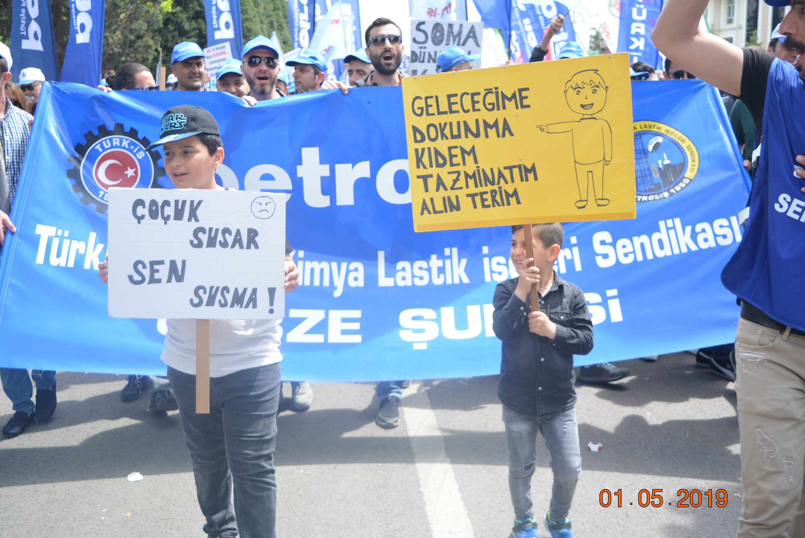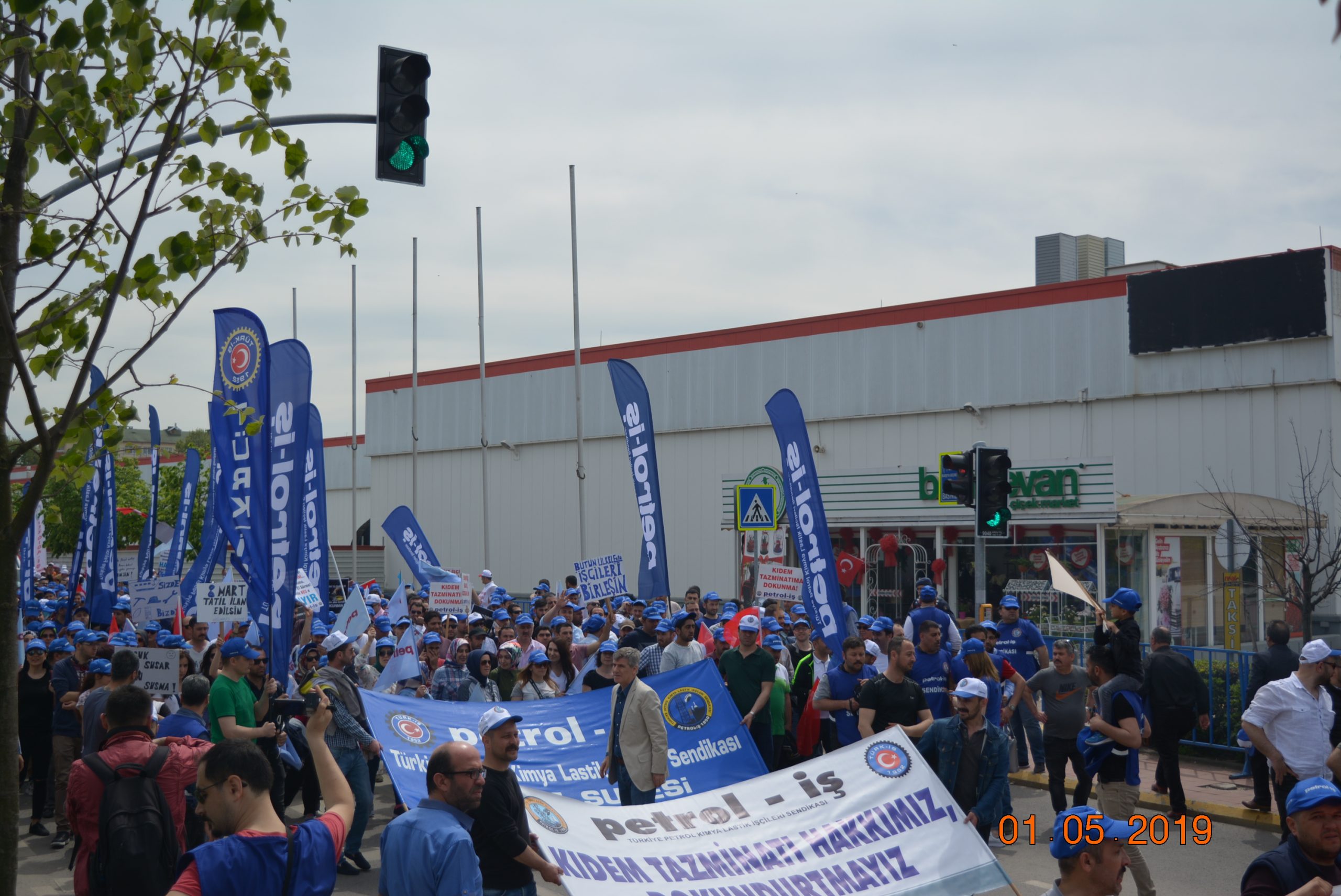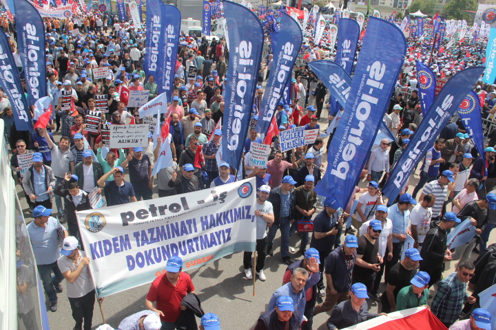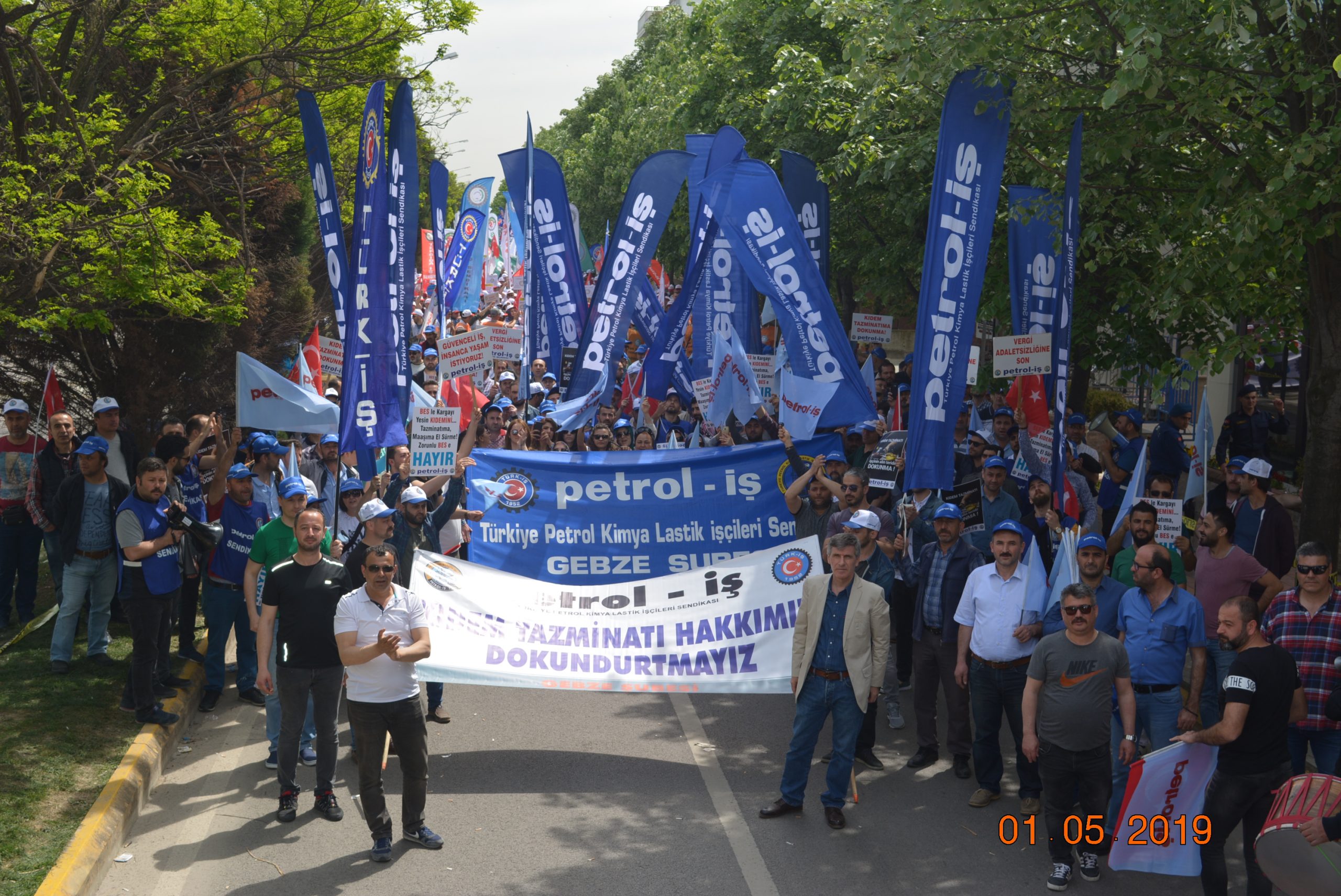 Gebze Şubemiz Konfederasyonumuz TÜRK-İŞ’in bu yıl Kocaeli İzmit’te gerçekleştirdiği 1 Mayıs Emek ve Dayanışma Bayramını büyük bir coşku ile kutladı.Türk-İş’e bağlı sendikaların yoğun katılım sağladığı 1 Mayıs kutlamaları Milli İrade Meydanında yüz bin emekçinin katılımı ile gerçekleşti. Türk-iş üyeleri önce Doğu Kışla Parkı’nda 09.00’da bir araya geldi, ardından hep birlikte Rafet Karacan Bulvarı üzerinden Milli İrade Meydanı’na kadar yürüdü. 1 Mayıs kutlamalarına katılan İzmit Belediye Başkanı Fatma Kaplan Hürriyet üyelerimize kısa bir konuşma yaparak 1 Mayıs İşçi Bayramımızı kutladı. Coşkunun hiç düşmediği kutlamalarda sık sık “KIDEMİME DOKUNMA!!’’, KIDEME UZANAN ELLER KIRILSIN’’ sloganları atılarak Milli İrade Meydanına kadar yüründü. Üyelerimiz meydanda çalan emek şarkılarına eşlik ederek, davul zurna eşliğinde eğlendiler. 1 Mayıs’ta Onbinler Tek Ağızdan “Kıdemime Dokunma” Dedi!