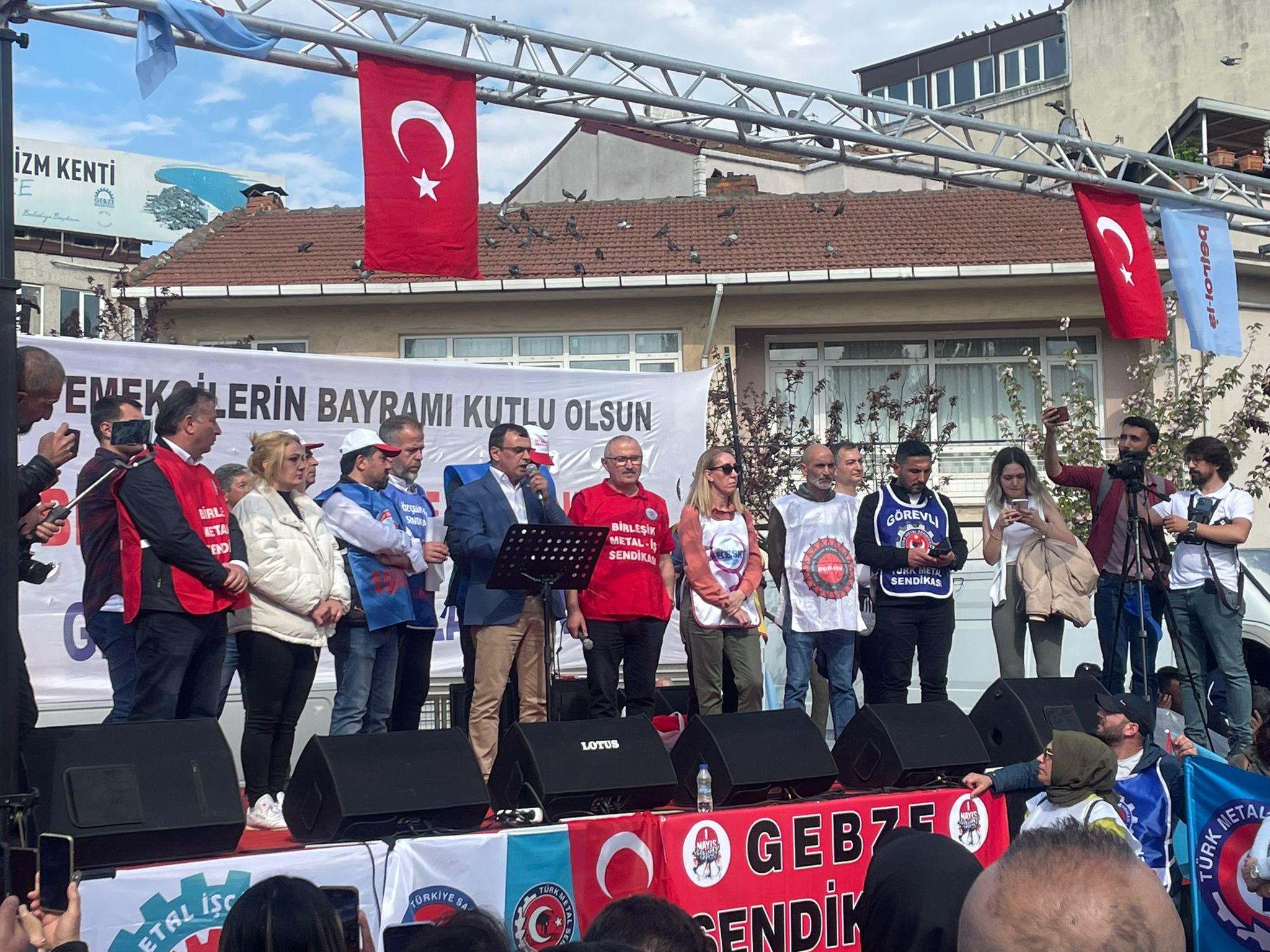 Sendikamız Gebze Şubesi, Uluslararası Birlik Mücadele ve Dayanışma Günü 1 Mayıs’ı Gebze Kent Meydanı’nda kutladı. Gebze Sendikalar Birliğinin çağrısıyla kutlanan 1 Mayıs’a katılım oldukça yoğun oldu. Gebze Şubemizin örgütlü olduğu işyerlerinden de yoğun katılımın olduğu 1 Mayıs kutlamasında sendikamıza üye işçiler açtıkları pankart, taşıdıkları döviz ve attıkları sloganlarla taleplerini dile getirdiler. 1 Mayıs açıklamasını Gebze Sendikalar Birliği Dönem Sözcüsü ve sendikamız Gebze Şube Başkanı Eyüp Akdemir okudu.
