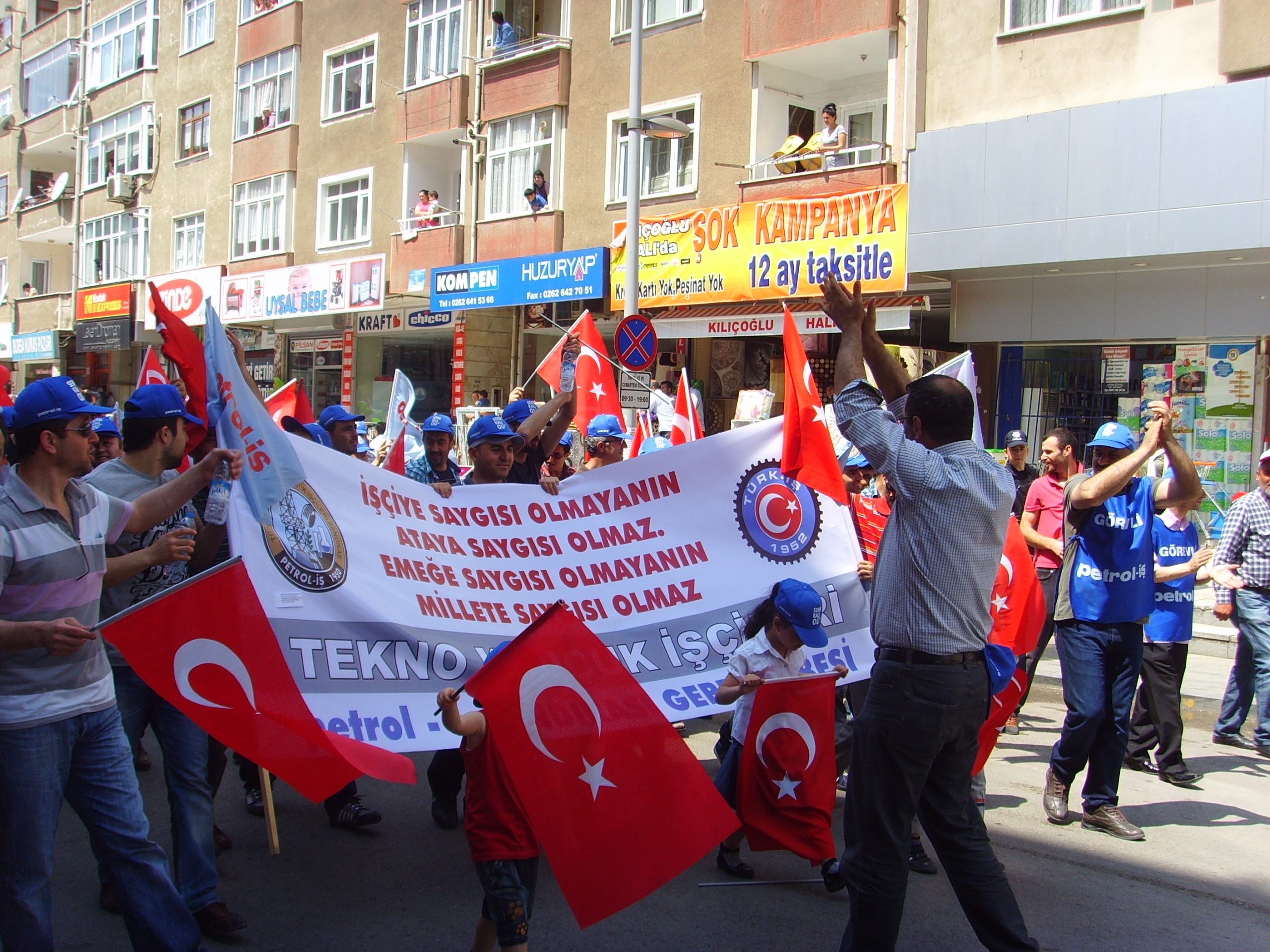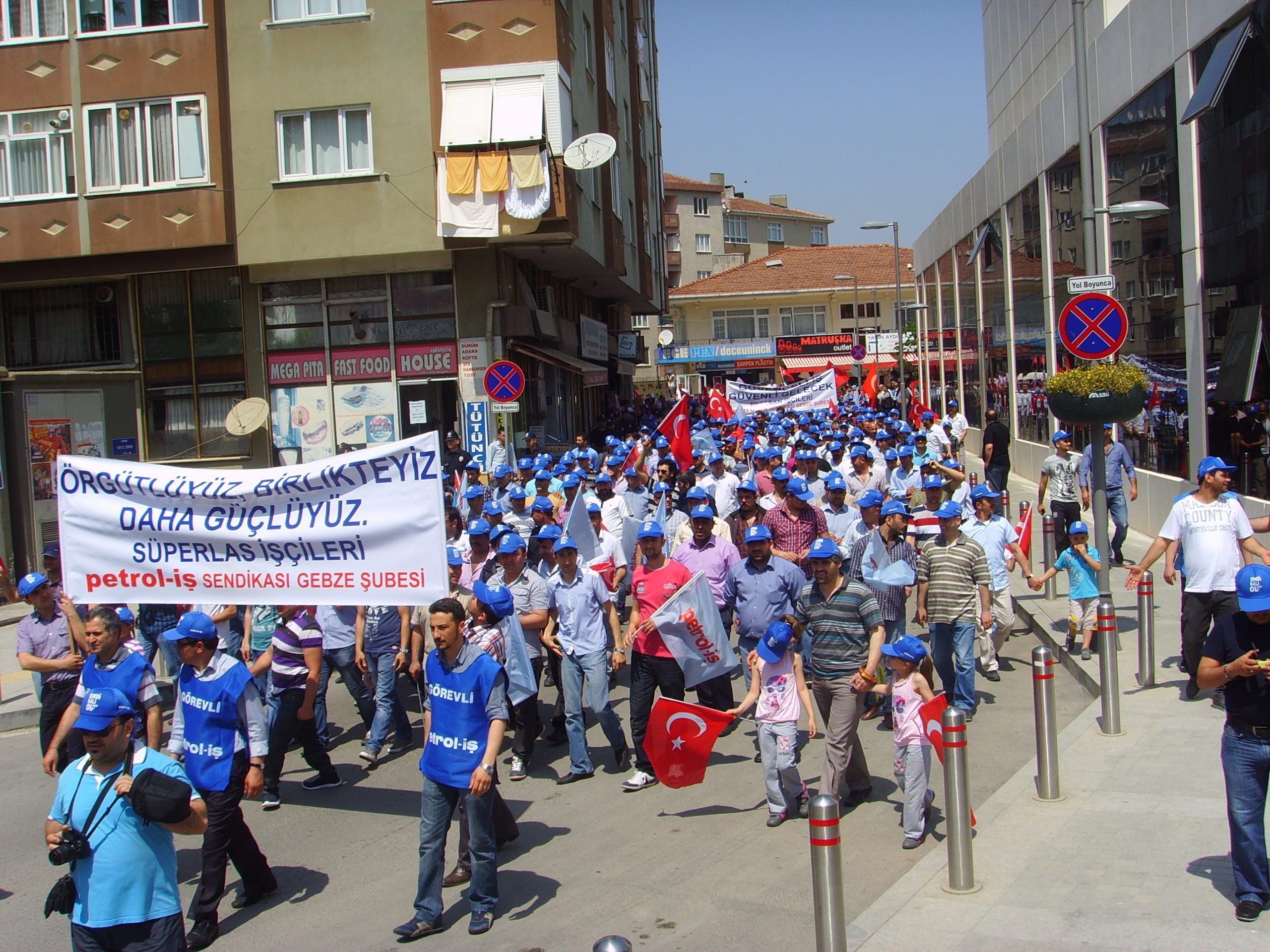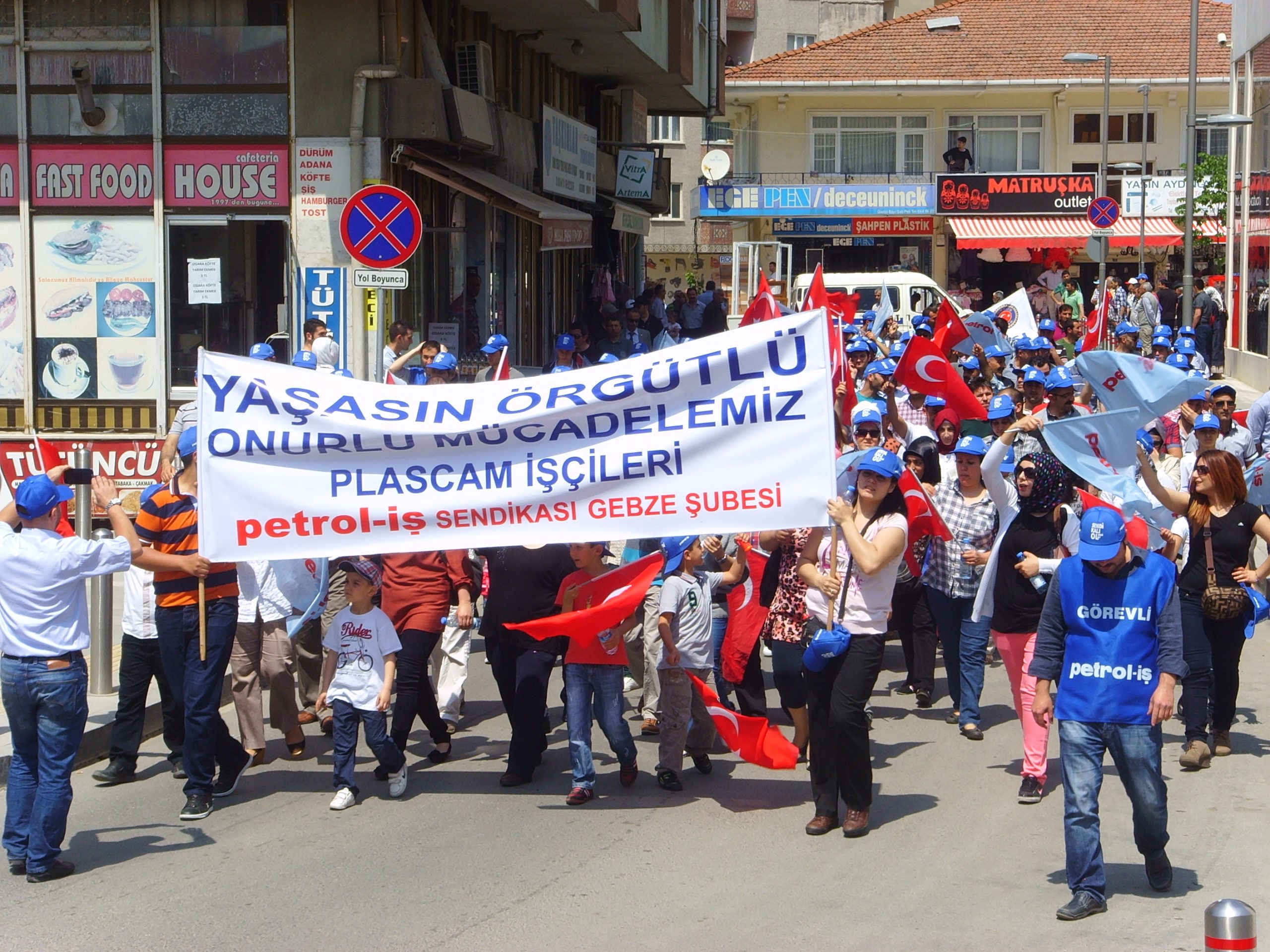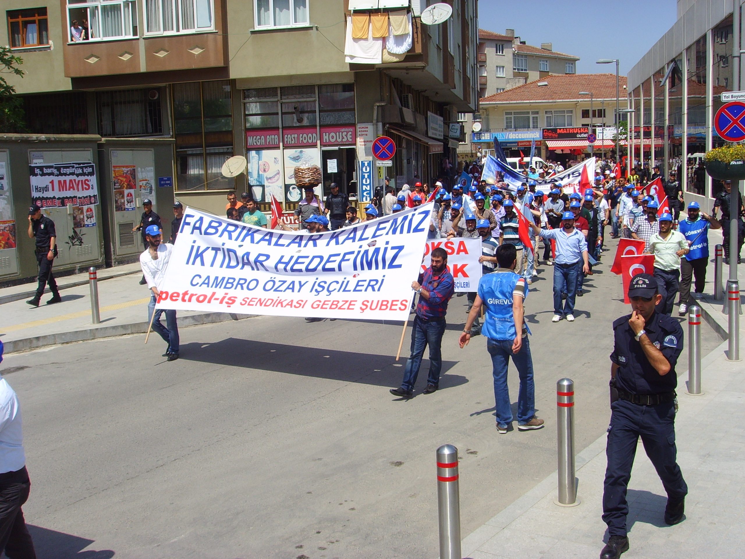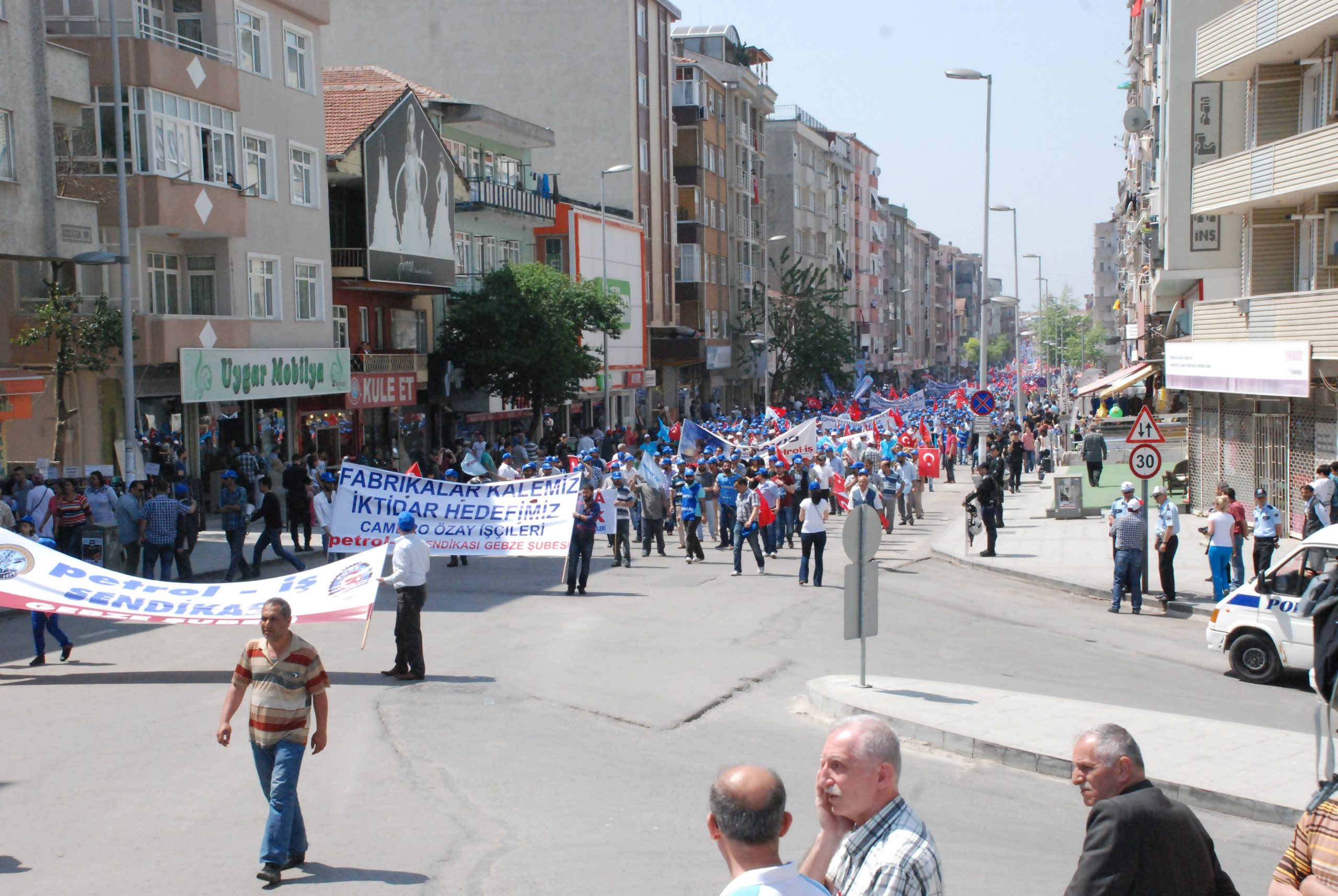 Gebze’ deki 1 Mayıs kutlamasında başta Petrol- İş, Türk- Metal ve Birleşik Metal-İş’in yığınsal katılımı dikkatleri çekerken Tekgıda-İş ve Tez- Koop İş sendikaları da üyeleriyle göz doldurdu. Petrol-İş Gebze Şubesi’nde kadın işçilerin katılımı da çok iyiydi.