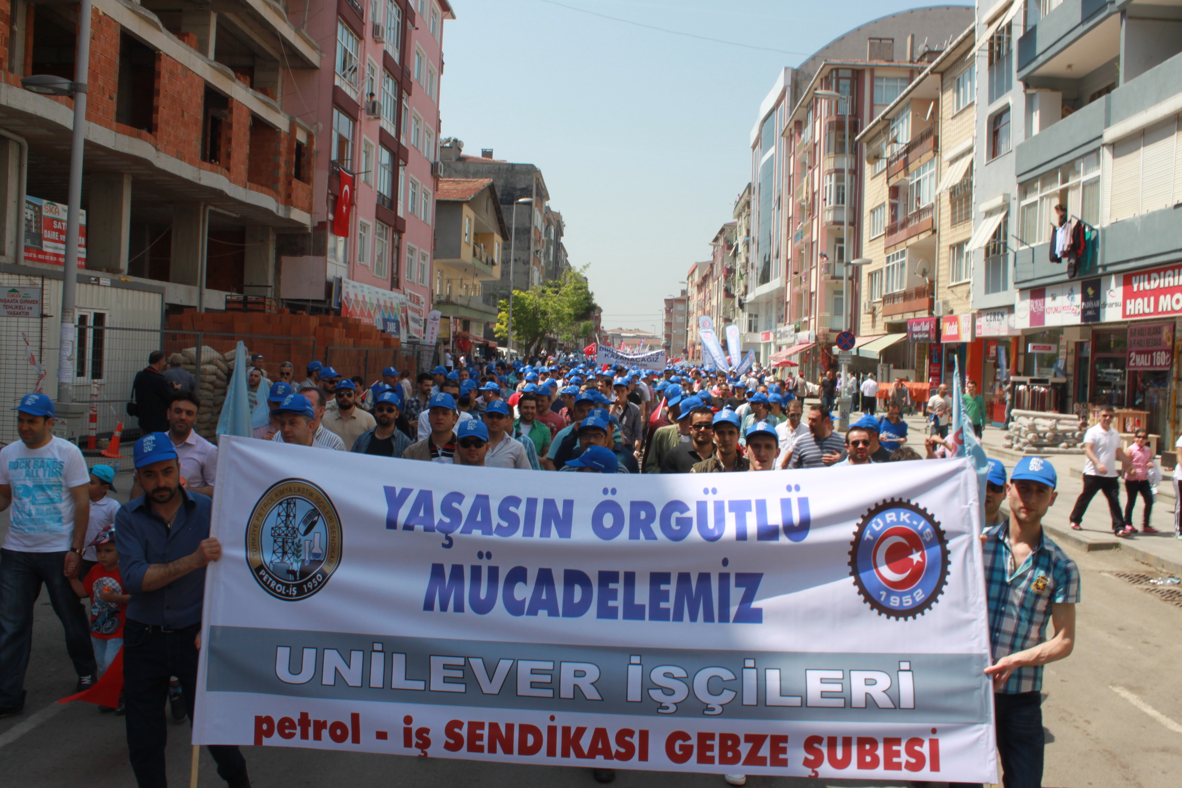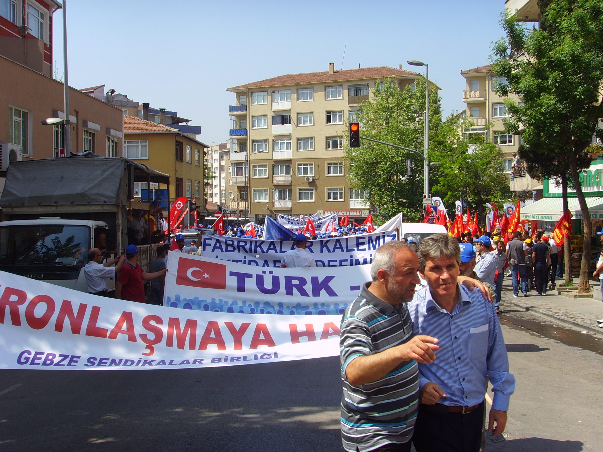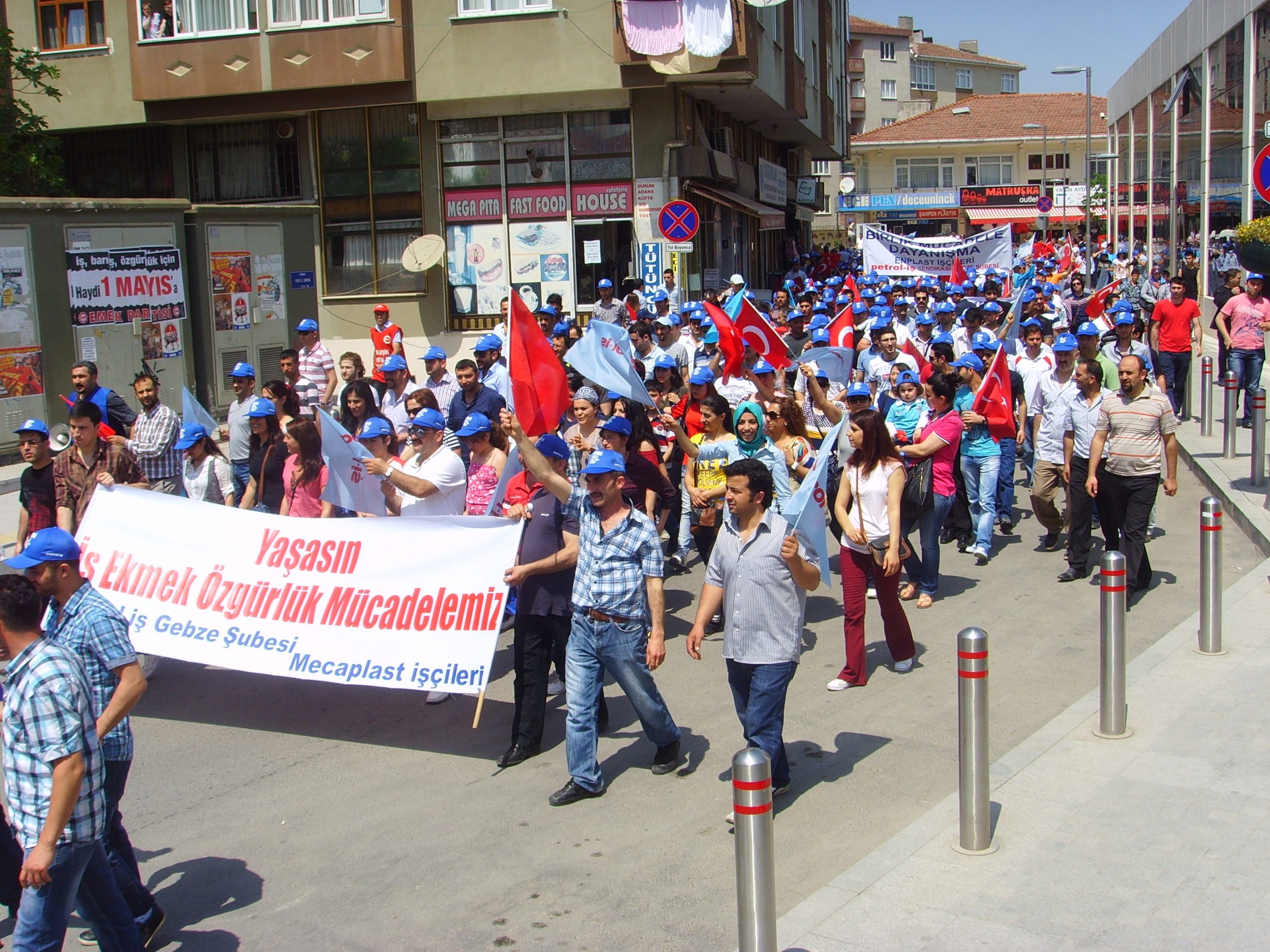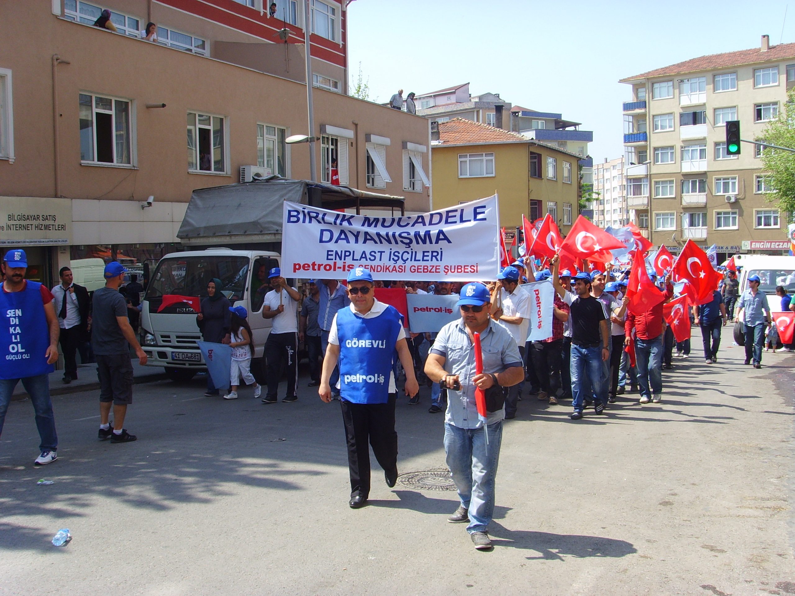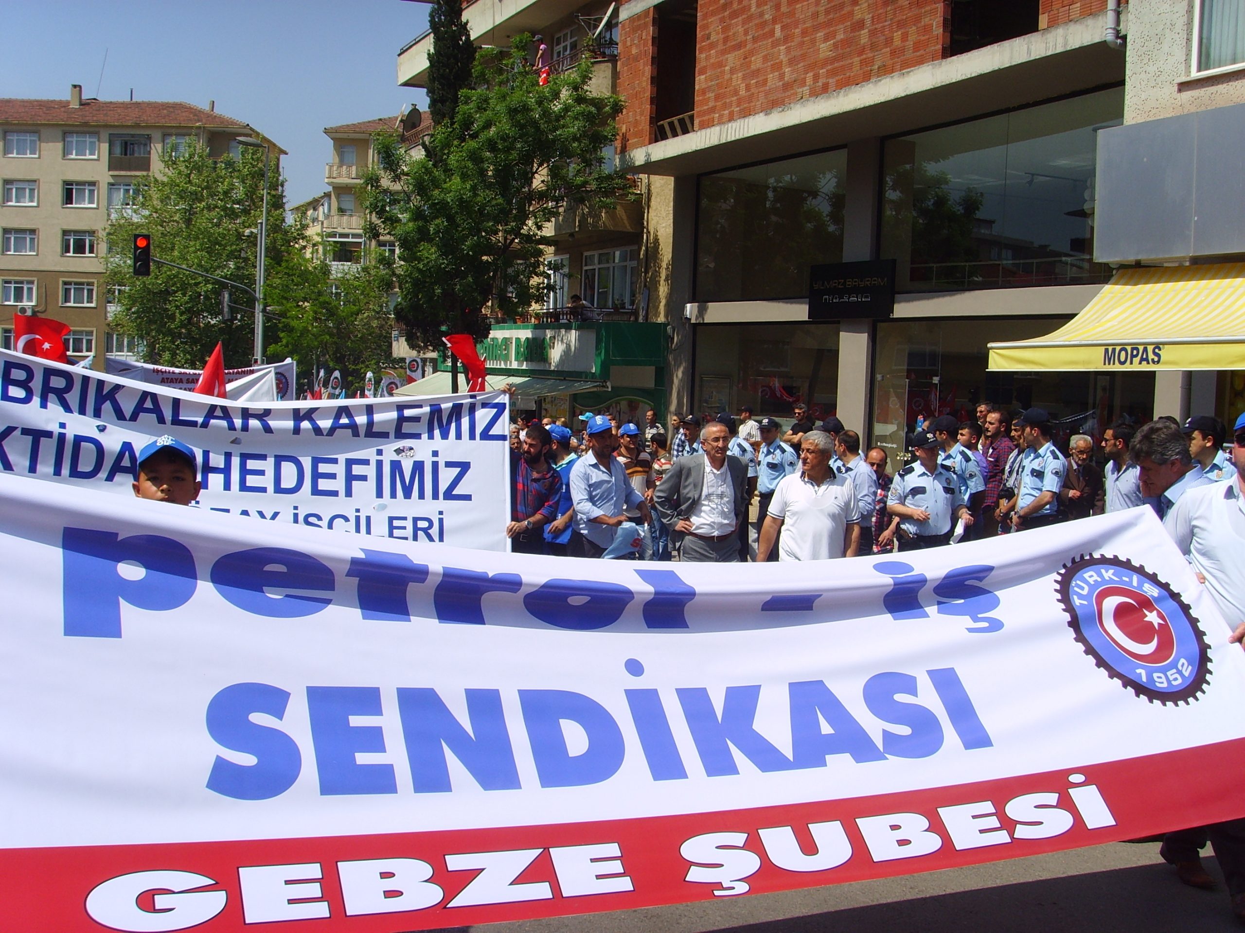 1 Mayıs 2013 Gebze de Sendikalar Birliğinin öncülüğünde Türk-İşe bağlı sendikalardan Petrol-İş Gebze ve Kocaeli Şubeleri, Türk Metale bağlı Gebze, Çayır ova, Dil ovası, Kocaeli ve Gölcük Şubeleri,Tekgıda Anadolu Yakası Şubesi, Tez Koop- İş Gebze Şubesi,Tes-İs Gebze Temsilciliği, Harb- İş Gölcük Şubesi, Sağlık-İş Kocaeli Şubesi, Maden- İş Kocaeli Temsilciliği ile Hak -İş’ e bağlı Çelik- İş ve DİSK’ bağlı Birleşik Metal -İş Sendikaları ve Emekli- Sen katıldı.