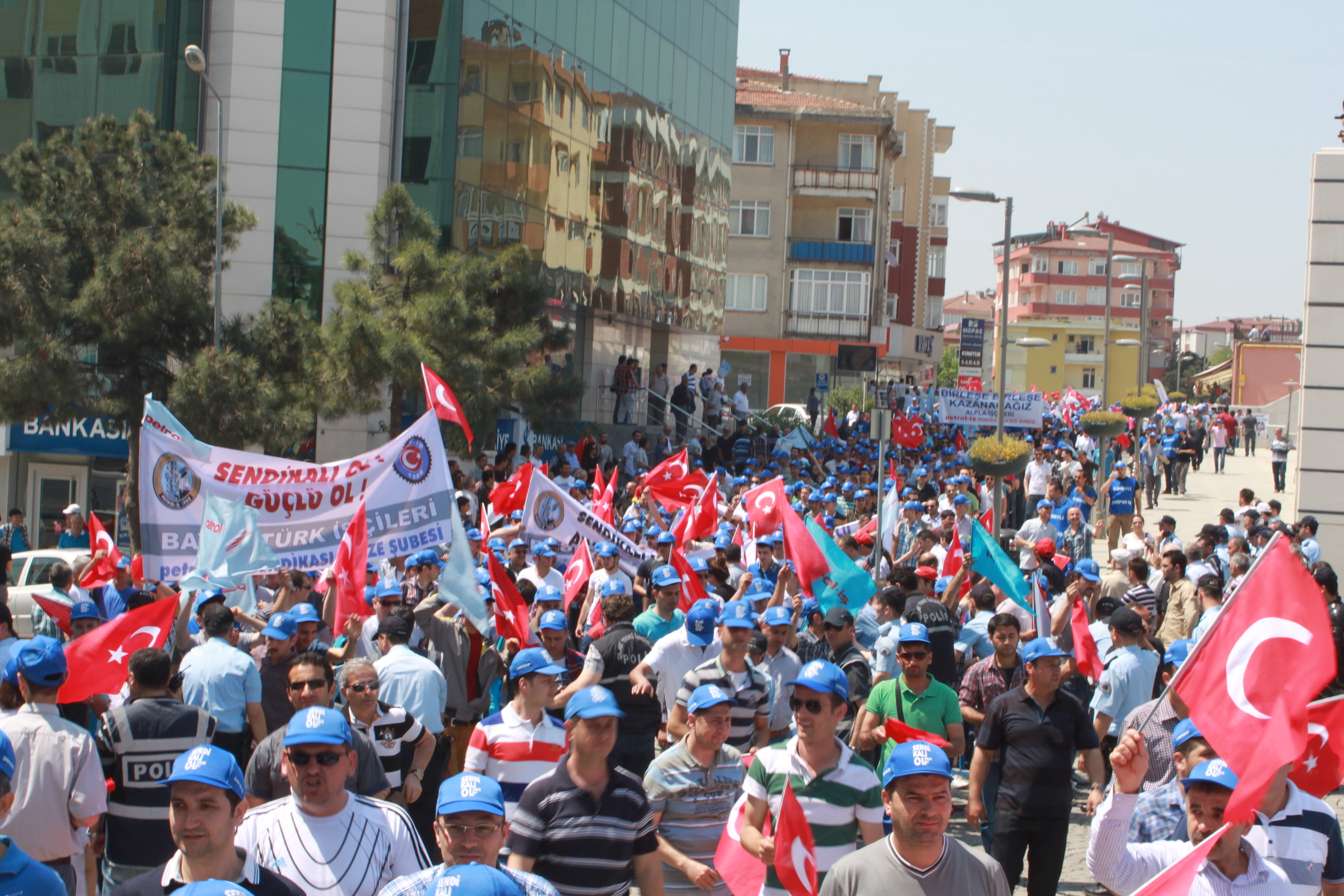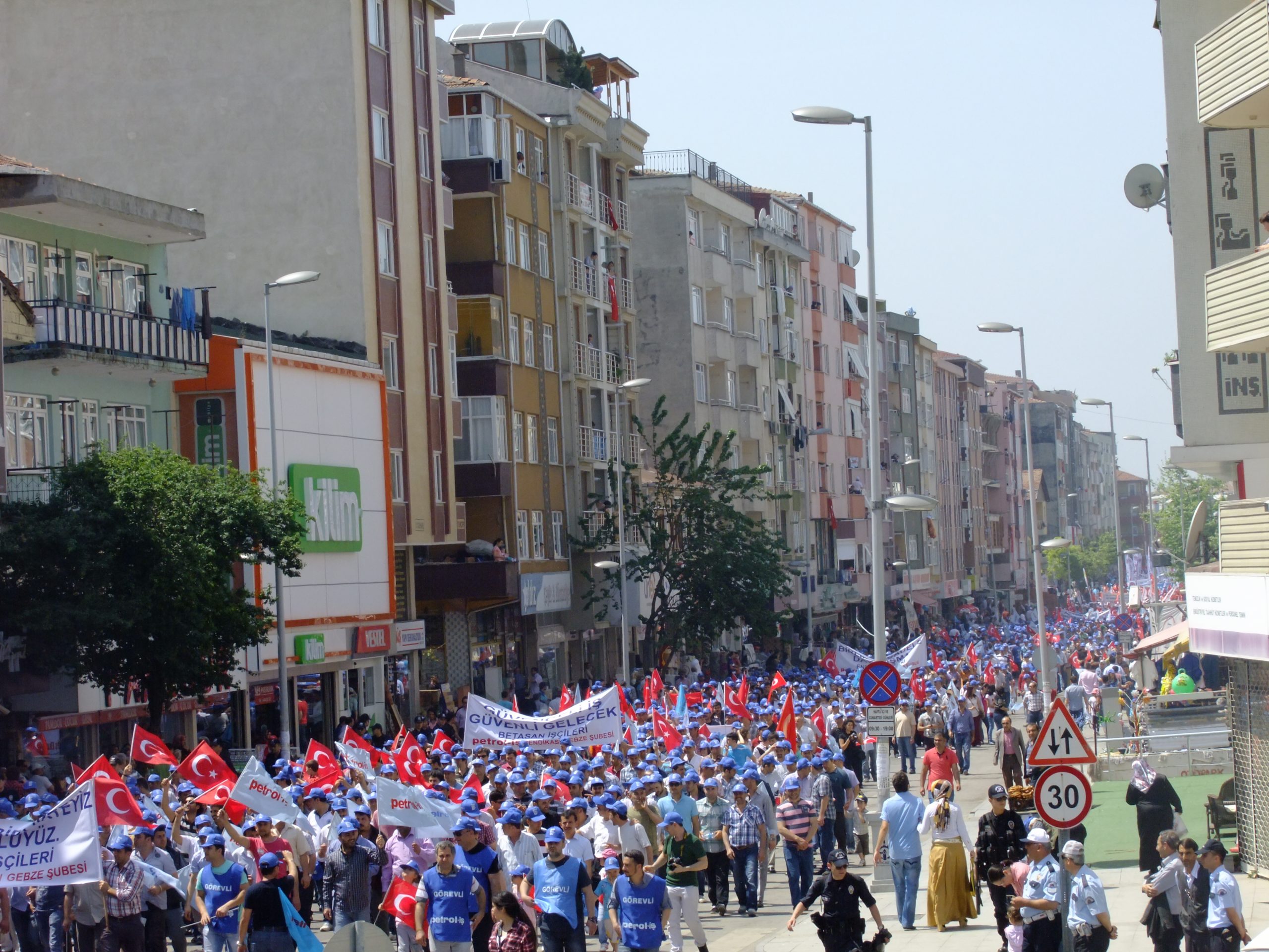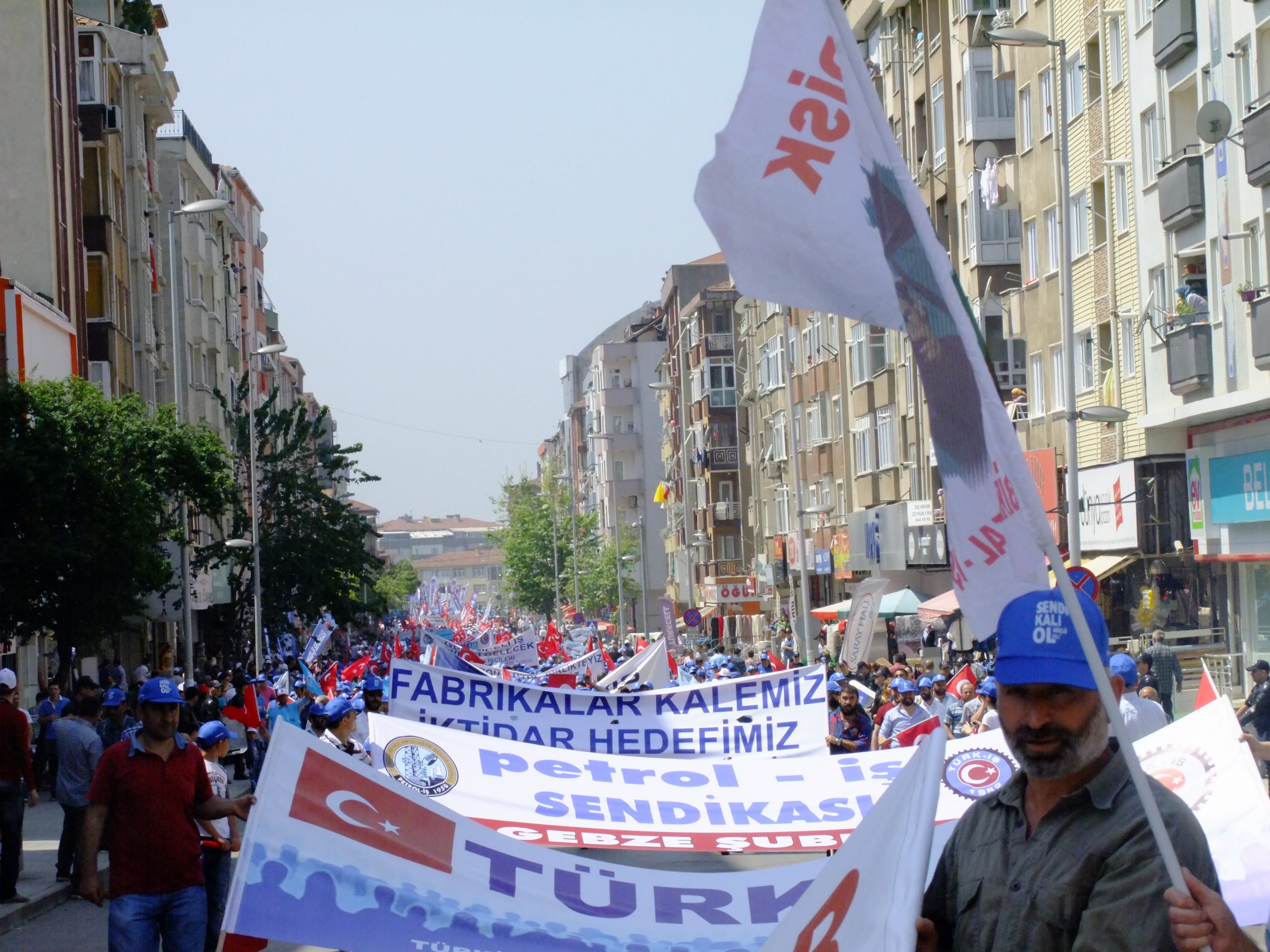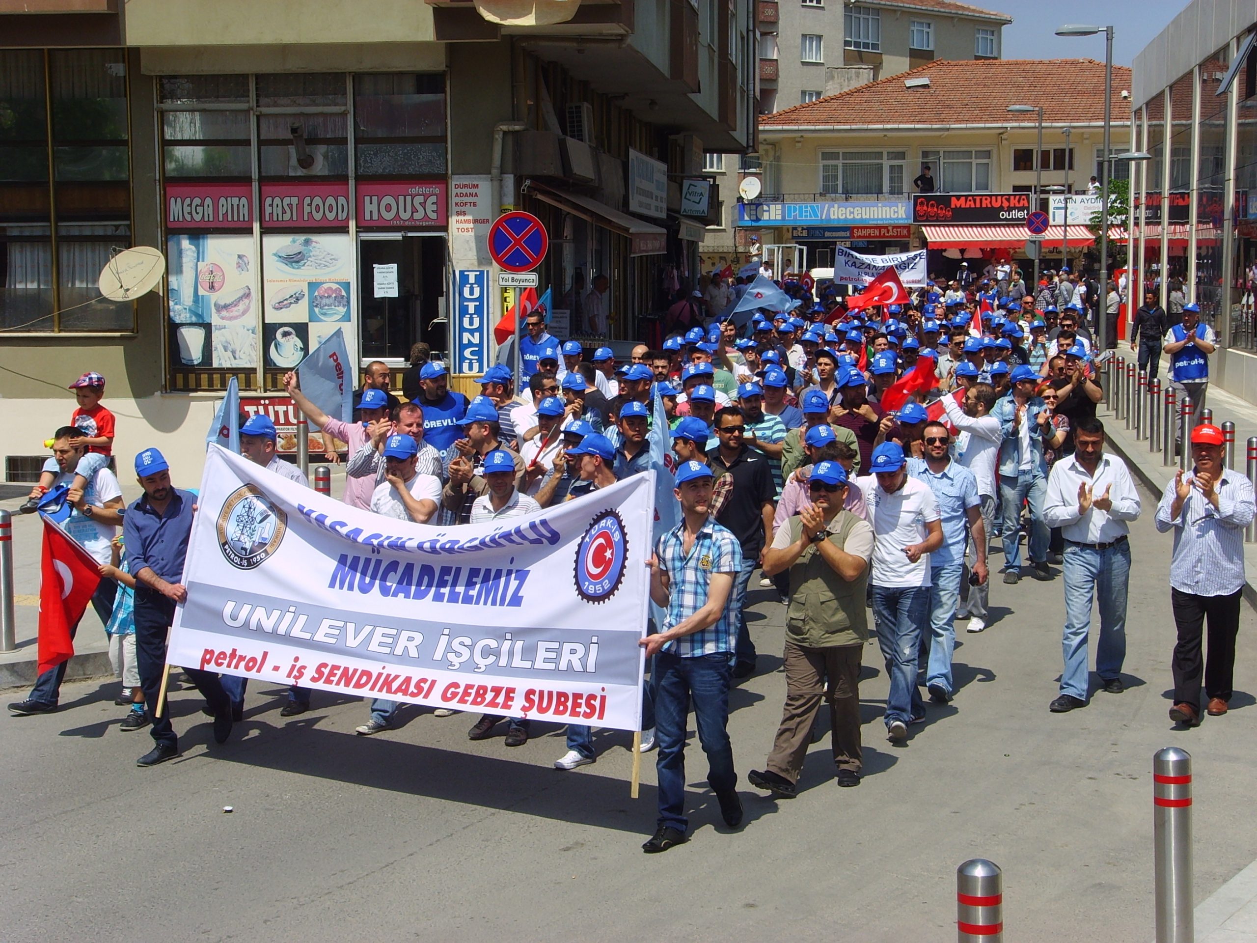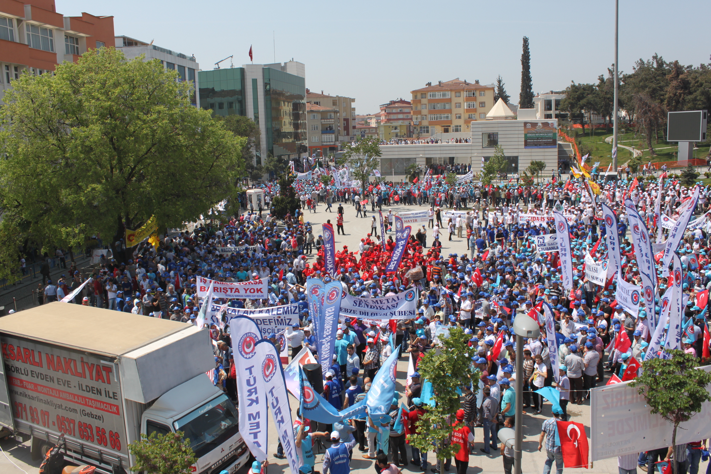 1 Mayıs 2013 Gebze de Sendikalar Birliğinin öncülüğünde Türk-İşe bağlı sendikalardan Petrol-İş Gebze ve Kocaeli Şubeleri, Türk Metale bağlı Gebze, Çayır ova, Dil ovası, Kocaeli ve Gölcük Şubeleri,Tekgıda Anadolu Yakası Şubesi, Tez Koop- İş Gebze Şubesi,Tes-İs Gebze Temsilciliği, Harb- İş Gölcük Şubesi, Sağlık-İş Kocaeli Şubesi, Maden- İş Kocaeli Temsilciliği ile Hak -İş’ e bağlı Çelik- İş ve DİSK’ bağlı Birleşik Metal -İş Sendikaları ve Emekli- Sen katıldı.