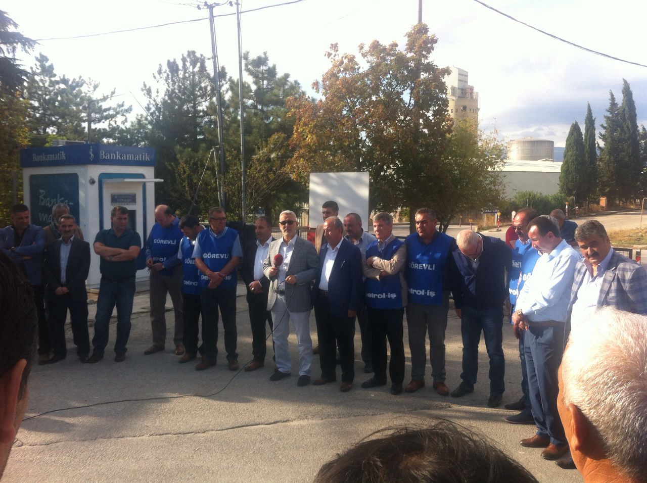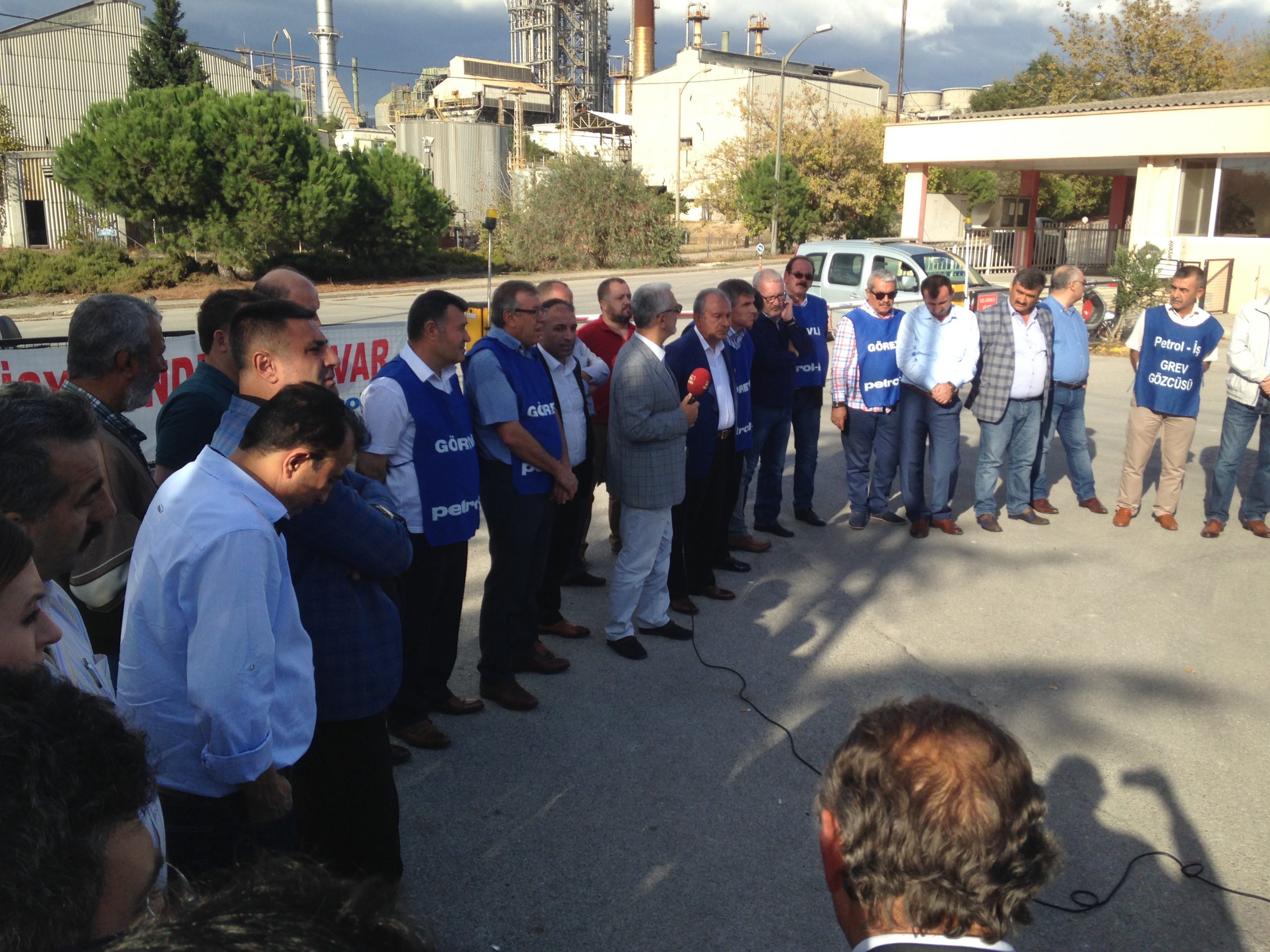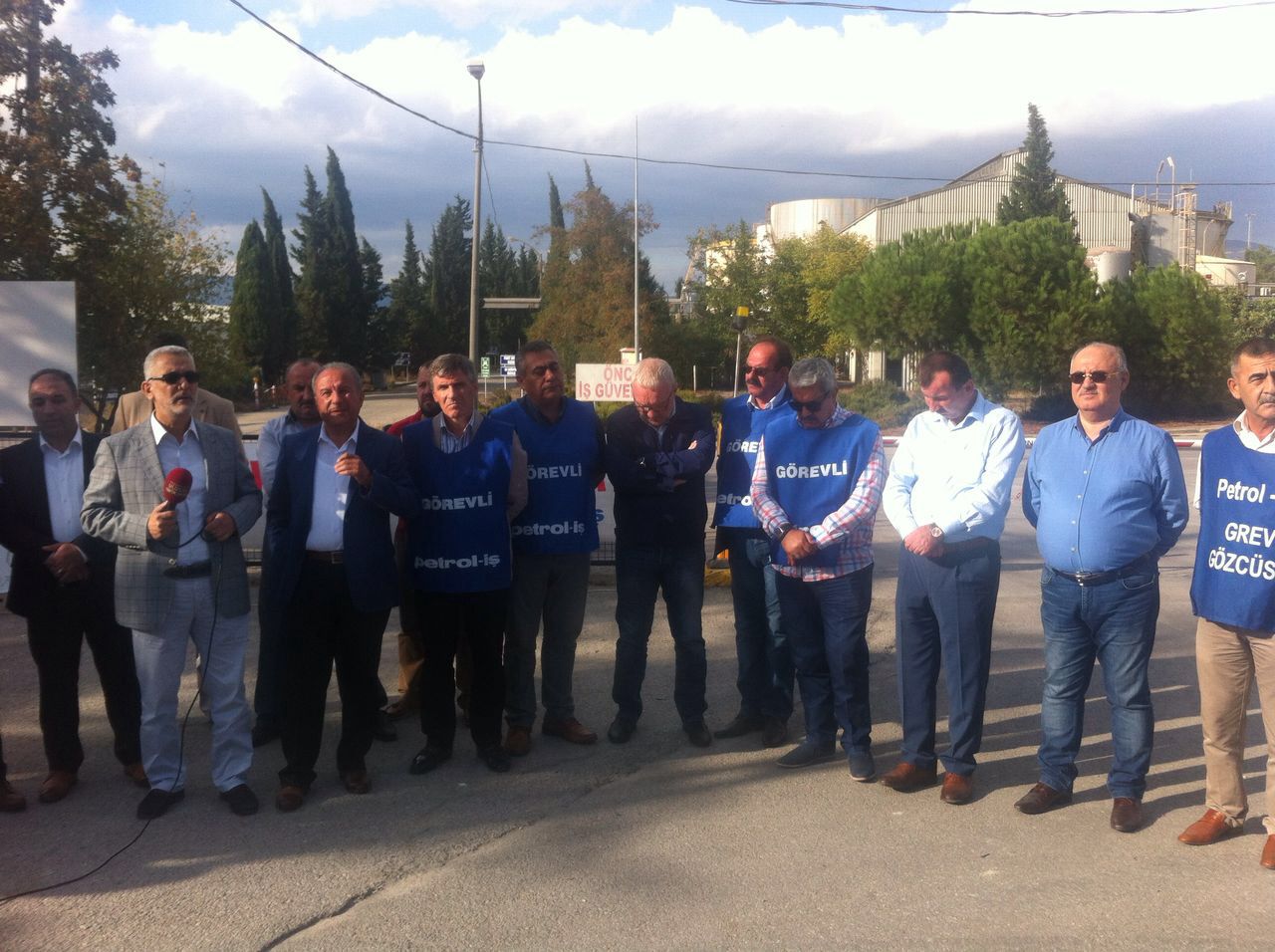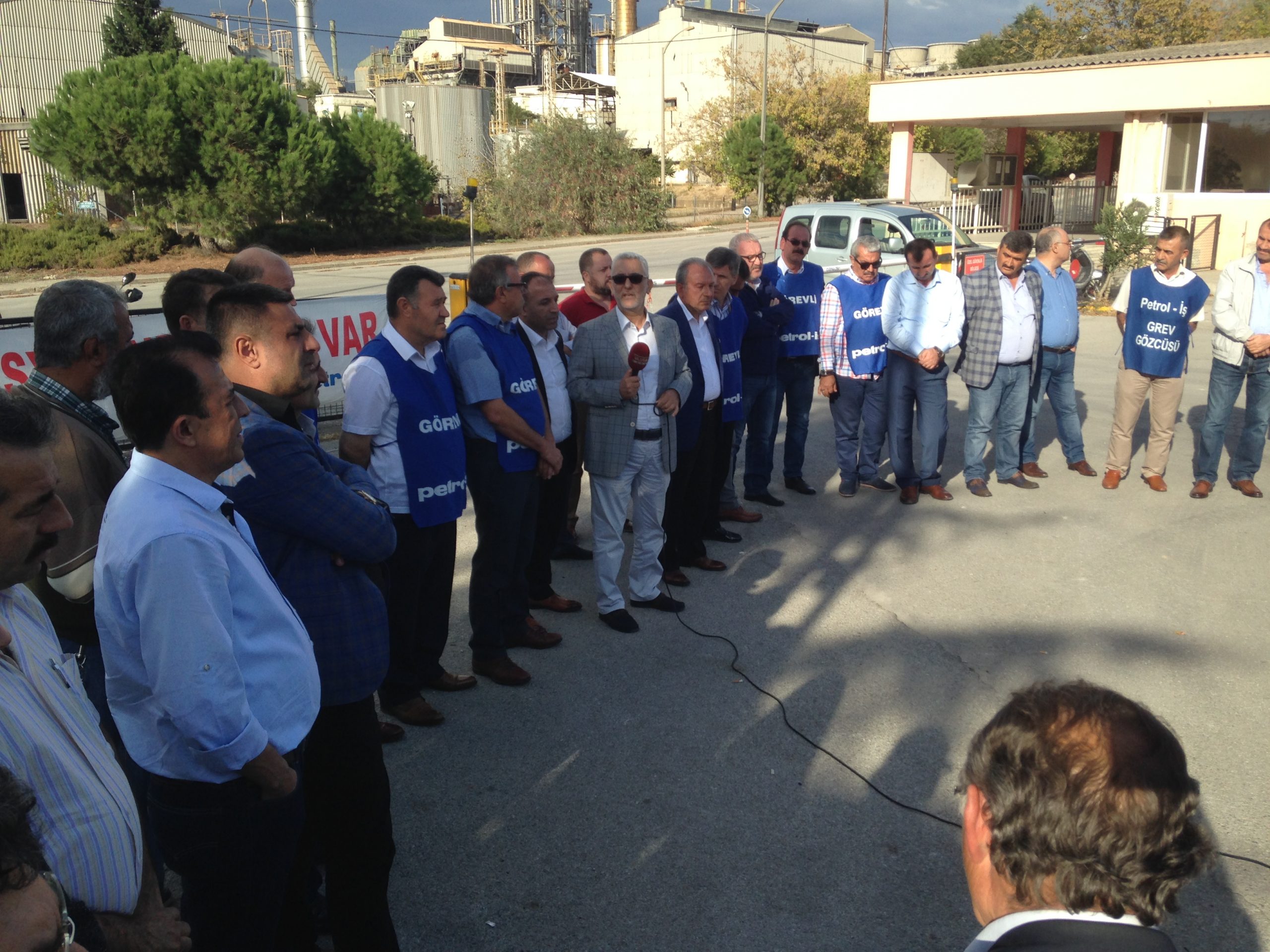 Genel Başkanı Ali Ufuk Yaşar: “Burada bulunma sebebimiz şube genel kurulu öncesi Başkanlar Kurulu olarak grev yerimizde, arkadaşlarımızla beraber olmaktır. Bugün değişen birşey yok. Buraları özelleştirenler hatırlamalı. Biz o günlerde de ‘Gemlik Gübre kömürcüye, İgsaş oduncuya satıldı’ demiştik. Biz devlette kalsın, üretime devam edelim önerisinde bulunmuştuk. Buranın özelleştirilmesi ve özelleştirmelerden alanların sorunları da sizin sorununuz. 2 ay bizimle görüşmeyen, görüşmemeyi organize eden işveren ile karşı karşıyayız. İlk gün de söyledik, bayram sonrası geldiğimizde de, biz greve çıkmadık. Bizi greve işveren mecbur etti. Bir takım bahanelerle biz görüşmemişiz gibi anlatıyor. Biz doğru müzakerenin içinde olmaya devam edeceğiz. Grev haktır ve sonuç itibari ile araçtır… Sorumluluk alan işverensen muhatap alıp görüşeceksin. Grev sürecinde fabrika içerisinde daha çok işçi istemişlerdi. İçeridekiler sadece adımıza nöbet tutabilirler. İçerideki arkadaşlar üretim yapmayacak. Grevde üretim yapılamaz. İşveren olayı sabote ediyor. Samimiyseniz, gelin masada görüşelim. Buradan sesleniyorum. Petrol-İş tüm grevlerini başarı ile tamamlamıştır. Gemlik Gübre’de de başarılı olacağız’’ ifadelerini kullandı.