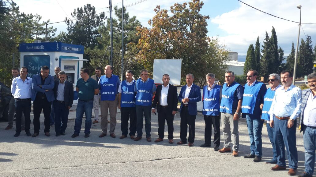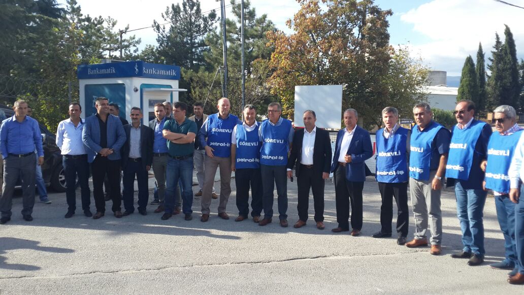 24 Eylül 2016 tarihinde Bursa Şubemizin örgütlü olduğu Gemlik Gübre San. A.Ş. işyerinde toplu iş sözleşmesindeki yaşanan anlaşmazlıktan dolayı greve çıkan üyelerimize, grevin 34. gününde Genel Başkanımız Ali Ufuk Yaşar ve Genel Sekreterimiz Ahmet Kabaca, Şube Başkanlarımız ve Bursa’da yapılacak şube kongresine katılmak amacıyla Bursa’ya gelen şube yöneticilerinden oluşan heyet üyelerimizi ziyaret etti. Başkan Yaşar Gemlik Gübre’de devam eden grevle alakalı açıklamalarda bulundu.