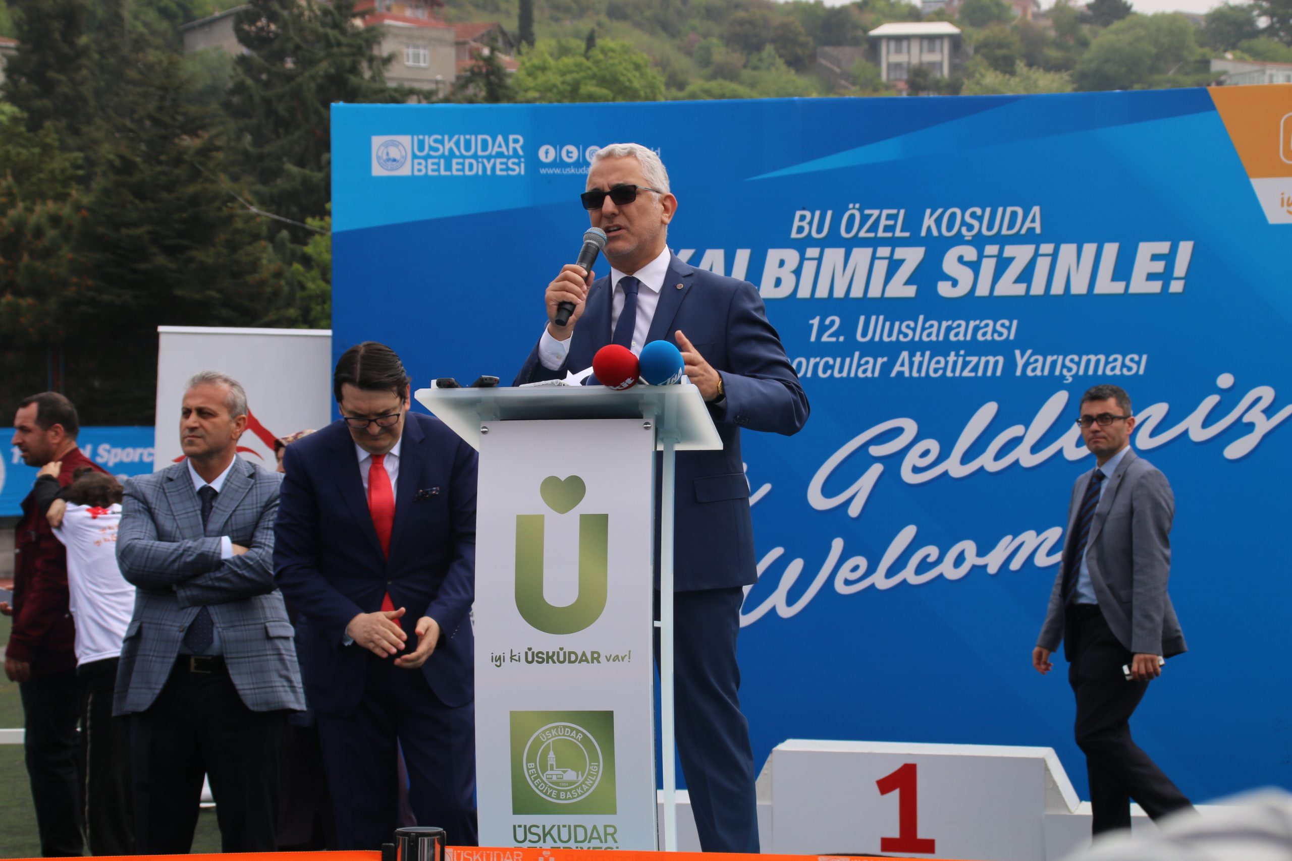 Romanya, Bosna, Kıbrıs, Bulgaristan, Filistin ve yurt içinden 27 ilden, İstanbul içinden de 39 ilçeden gelen okulların kortejlerinin geçiş töreninden sonra Üsküdar Belediye Başkanı Hilmi Türkmen kürsüye çıktı ve etkinliğe destek veren tüm kurumlara teşekkürlerini iletti. Sendikamız Petrol-İş Misafirhnesinde misafir ettiğimiz 50 öğrenci adında Türkmen, sendikamıza da konuşmasında ayrıca teşekkürlerini iletti. Türkmen’in konuşmasının ardından Genel Başkanımız Ali Ufuk Yaşar da kürsüye çıkarak selamlama konuşması geçekleştirdi. Genel Başkanımız Yaşar, sendikamız adına Özel Sporcular Atletizm Şenlikleri’ne destek vermenin mutluluğunu dile getirdi.