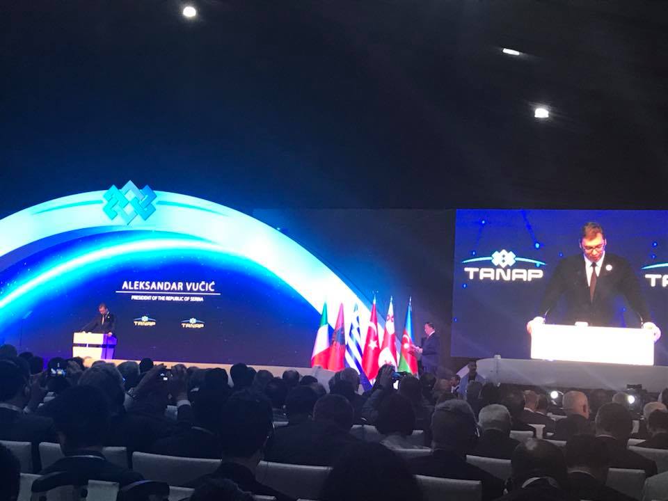 12 Haziran Salı günü TANAP’ın açılışı için yapılan törene Cumhurbaşkanımız Recep Tayyip Erdoğan’ın yanı sıra Kuzey Kıbrıs Türk Cumhuriyeti Cumhurbaşkanı Mustafa Akıncı, Azerbaycan Cumhurbaşkanı İlham Aliyev, Sırbistan Cumhurbaşkanı Alexandar Vuçiç ve Ukrayna Cumhurbaşkanı Petro Poroşenko da katıldı.