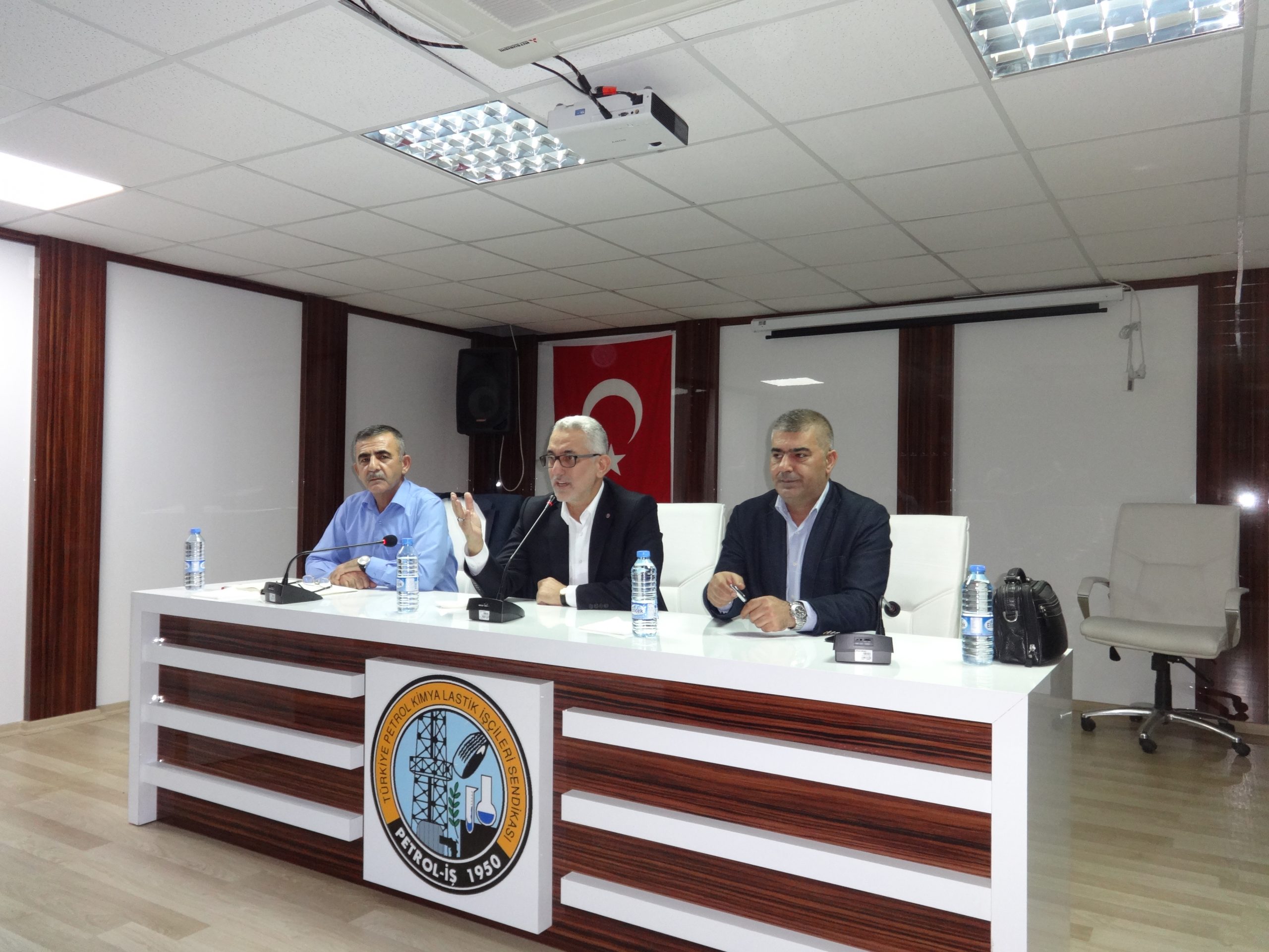 Genel Başkanımız Ali Ufuk Yaşar ve Genel Örgütlenme ve Eğitim Sekreterimiz Mustafa Mesut Tekik 24 Ekim Salı günü Adıyaman Şubemizi ziyaret ederek, Türkiye Petrolleri (TP) bünyesindeki Sondaj, Workover, Kuyu Tamamlama ve Jeofizik Operasyonlar Müdürlüğü’nün, Turkish Petroleum International Company Limited Şirketi (TPIC)’ne devri, bu bağlamda Enerji Bakanlığı’nda kurulan komisyonda ele alınan konular ve gelinen aşamanın değerlendirilmesine ilişkin bir toplantı gerçekleştirdi.