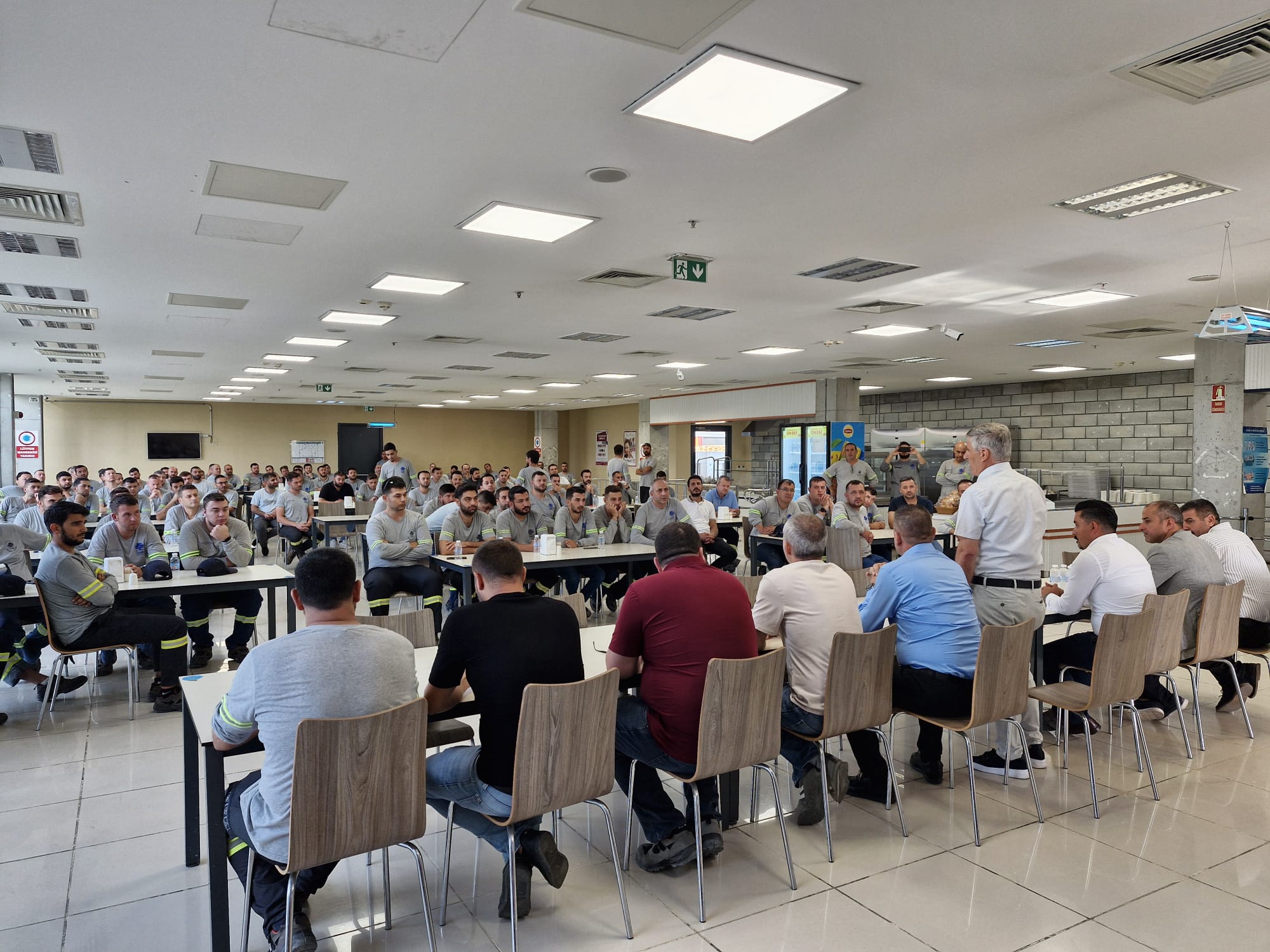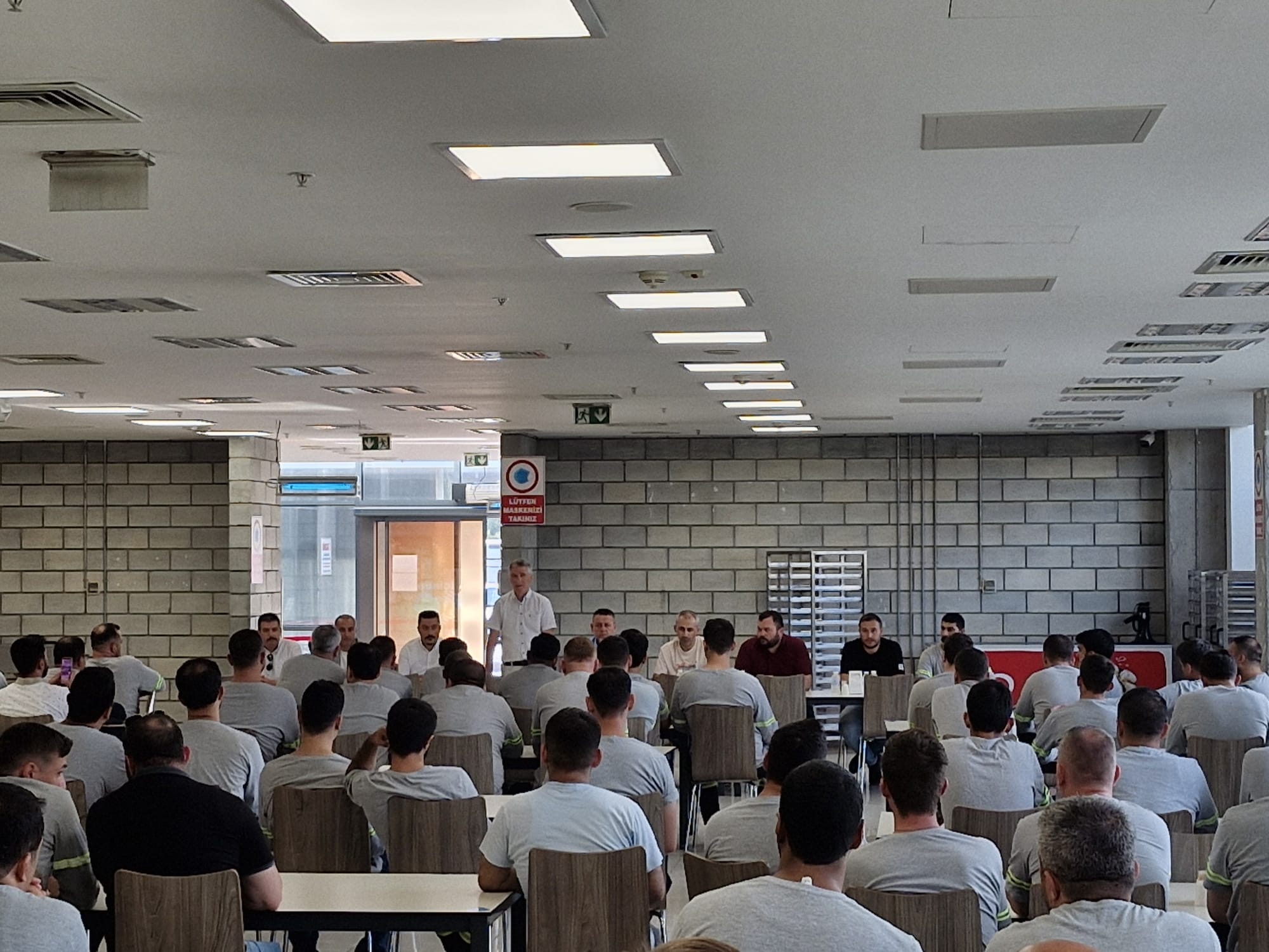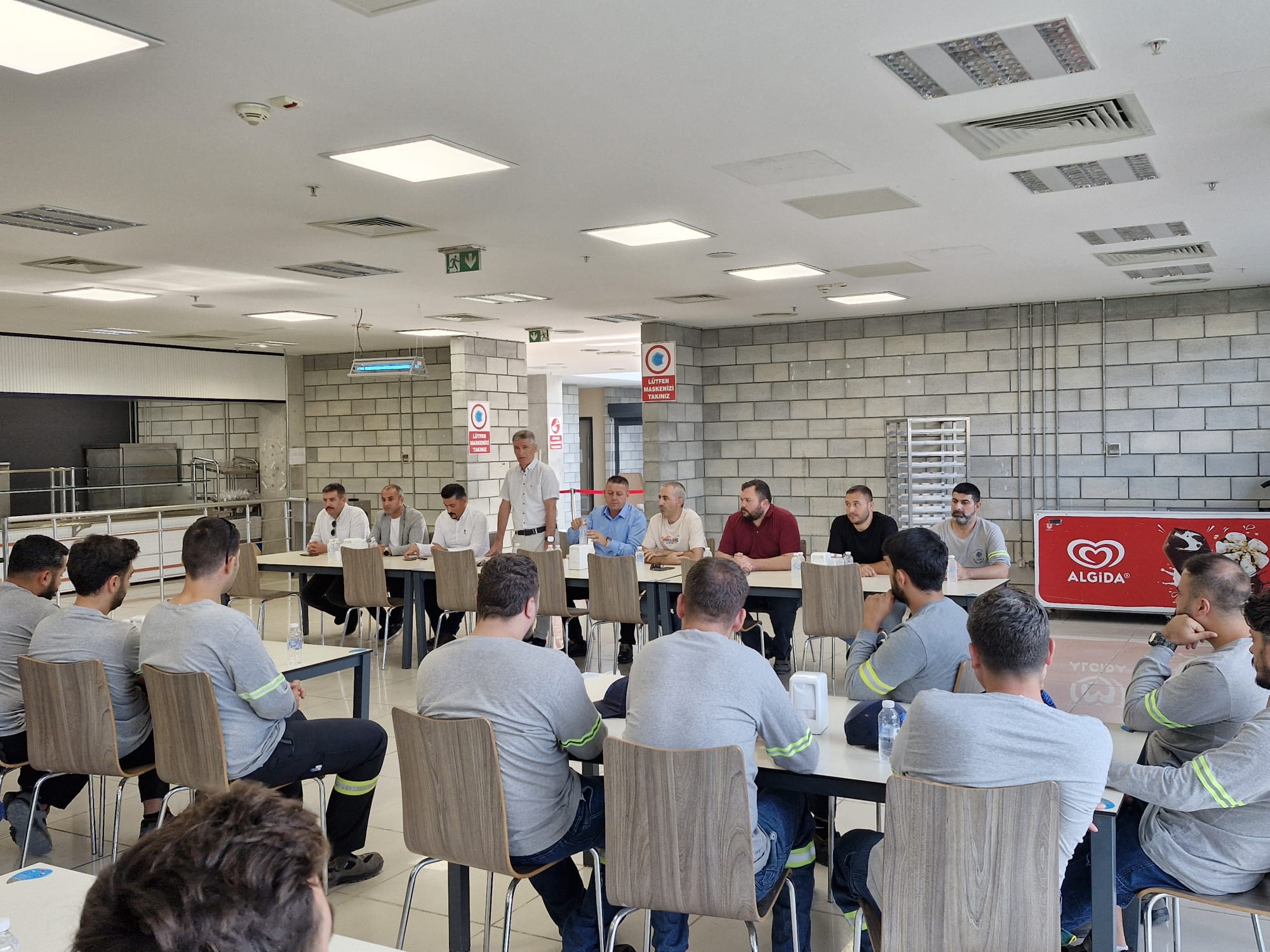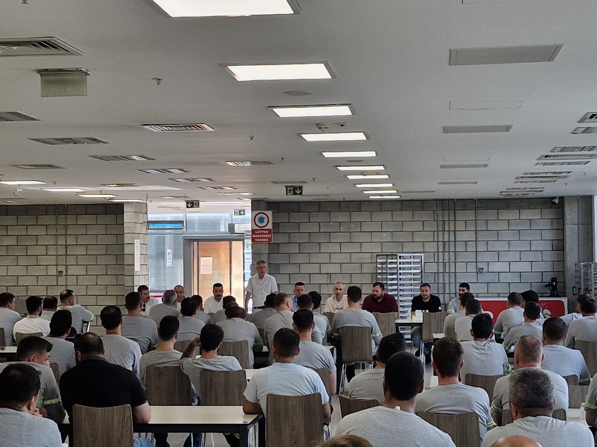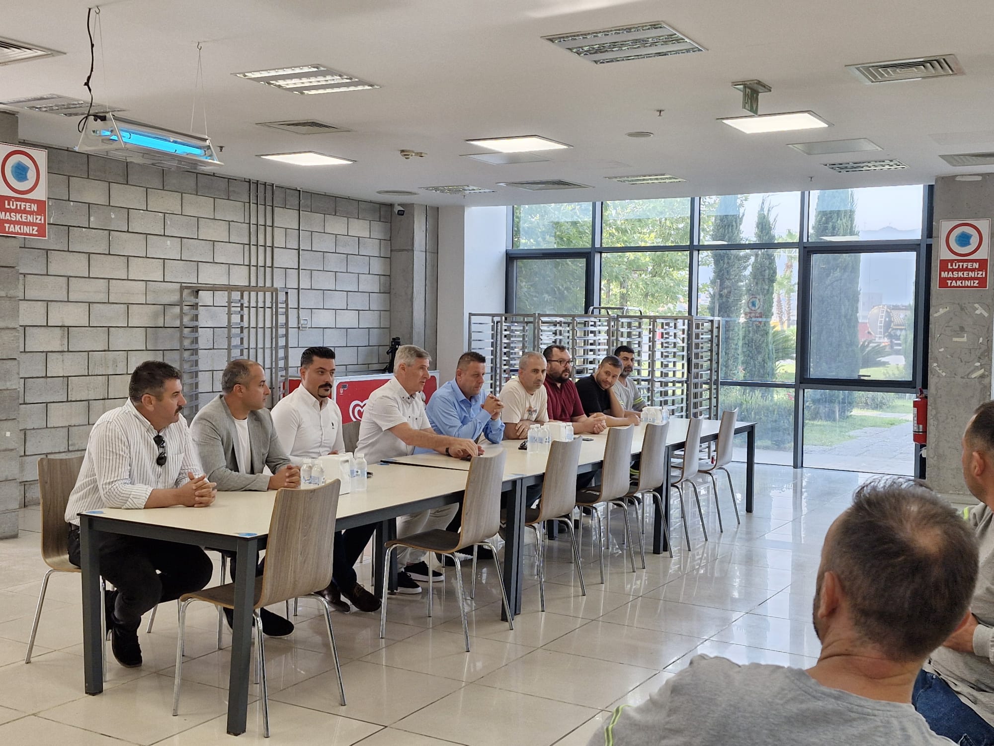 Oldukça yoğun bir program dahilinde gerçekleşen ziyaretlerin ilk durağı Ravago Petrokimya işyeri oldu. Burada aynı saha içerisinde yer alan Eastchem ve Enplast işyerlerine ziyaret eden Akyüz, ortak yemekhanede üyelerimizle bir araya geldi. Yakın zaman önce yaşanan zehirlenme vakası sebebiyle üyelerimize geçmiş olsun dileklerini ileten Akyüz, sonrasında emeğin gündeminde öne çıkan başlıklara ilişkin üyelerimize bilgi verdi, gelen soruları yanıtladı.