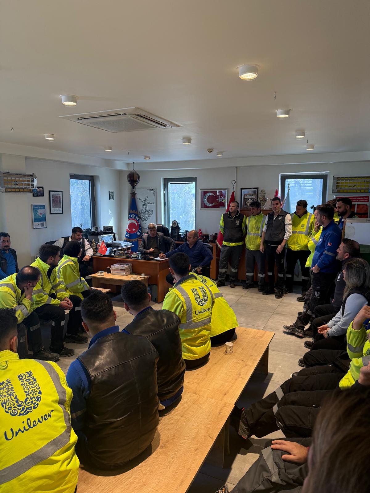 Sendikamız Genel Başkanı Süleyman Akyüz 14 Ocak Salı günü Gebze Şubemizde örgütlü ve Konya’da faaliyetlerini sürdüren Unilever işyerini ziyaret etti. Sabah 10.00’da gerçekleşen ziyarette ilk olarak Unilever Fabrika Müdürü Çağlayan Irmak ve İnsan Kaynakları Müdürü Eser Çömçömoğlu ile bir araya gelindi. Unilever Yönetimi ile yapılan görüşmede Petrol-İş ve Unilever arasındaki kurumsal ilişkiler ele alındı, üyelerimiz çalışma koşullarına ilişkin değerlendirmelerde bulunuldu. Görüşme, ilişkilerin güçlendirilmesi ve iyi niyet dileklerinin iletilmesinin ardından sona erdi.