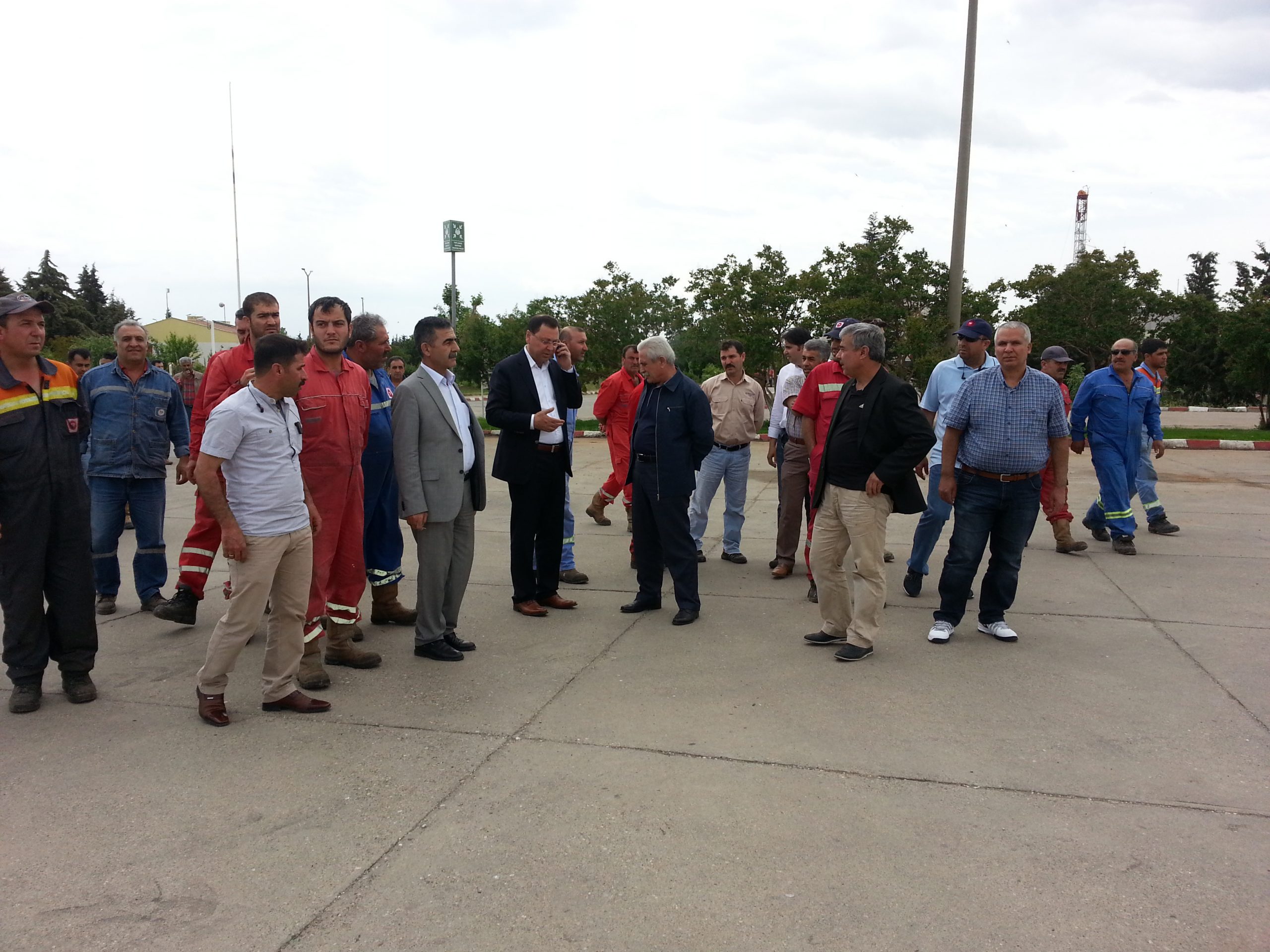 Merkez yöneticilerimiz Öztaşkın ve Sözen’i Adıyaman Şube Başkanımız Ali Tirpan, Şube Başkan Yardımcılarımız Şahin Yılmaz, Sait Mustafa Daşdelen ve Adıyaman Şube Yönetim Kurulumuz karşıladılar ve TPAO Bölge Müdürlüğünü, atölyeleri, Karakuş üretim ve sondaj sahalarını ziyaret ettiler.