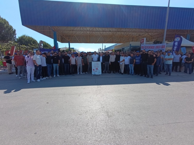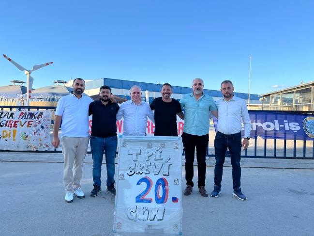 1 Haziran Pazar günü ilk olarak DYO Boya, ardından TPI fabrikasına geçen Genel Mali Sekreterimiz, burada İzmir Şube Yönetimi ve üyelerimizle grevlerin gidişatı üzerine sohbet etti, atılacak adımlar üzerine fikir alışverişinde bulundular. Mehmet Kaya iki alanda da yaptığı konuşmasında Petrol-İş Sendikası’nın bütün örgütüyle üyesinin ve grevlerinin yanında olduğunu belirtti. Bugün de (2 Haziran Pazartesi) DYO Boya Fabrikasında işyeri yönetimi ve sendikamız heyeti arasında bir görüşme gerçekleştirildi. Ancak işverenin yeni bir teklif vermemesi üzerine toplantıdan bir anlaşma çıkmadı. TPI ve DYO Boya’da grevlerimiz ilk günkü gibi coşku ve kararlılıkla devam ediyor.