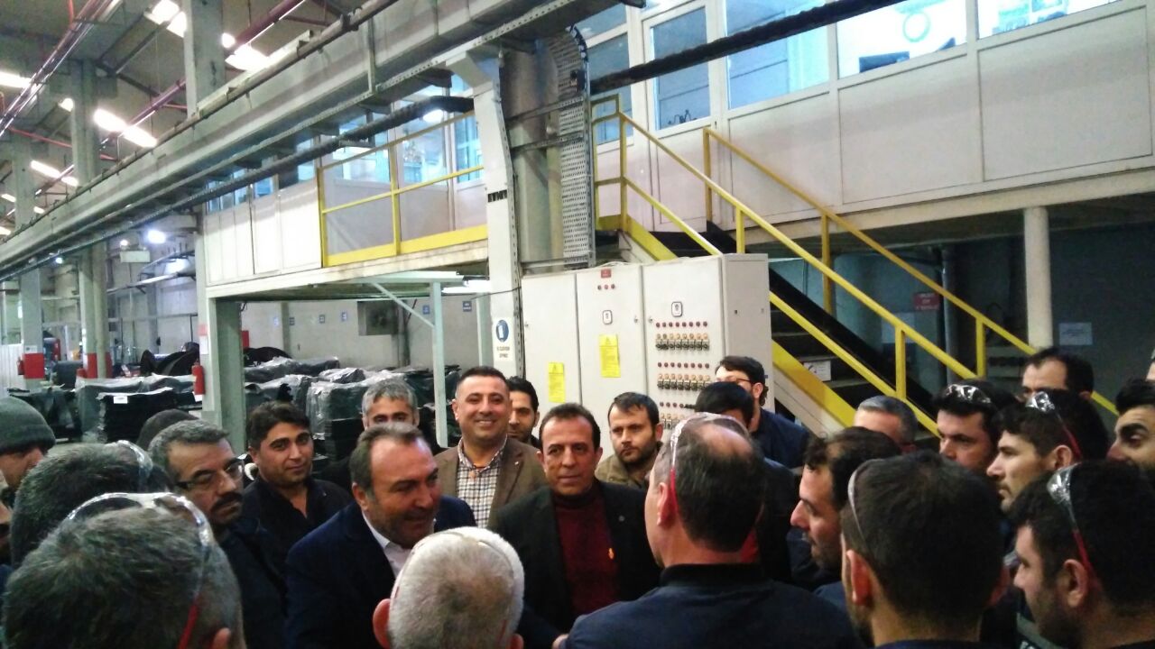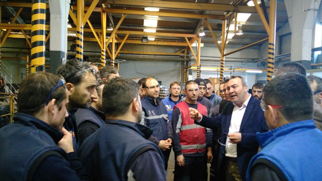 Polimer işyerinde çalışan temsilcilerimiz ve üyelerimiz ile birlikte fabrikayı gezen heyet emeğin gündemi ve işçi sınıfının sorunlarıyla ilgili değerlendirmelerde bulundular. Genel Mali Sekreterimiz Turgut Düşova Polimer çalışanı üyelerimize devam eden toplu sözleşme süreci hakkında bilgilendirmede bulundu.