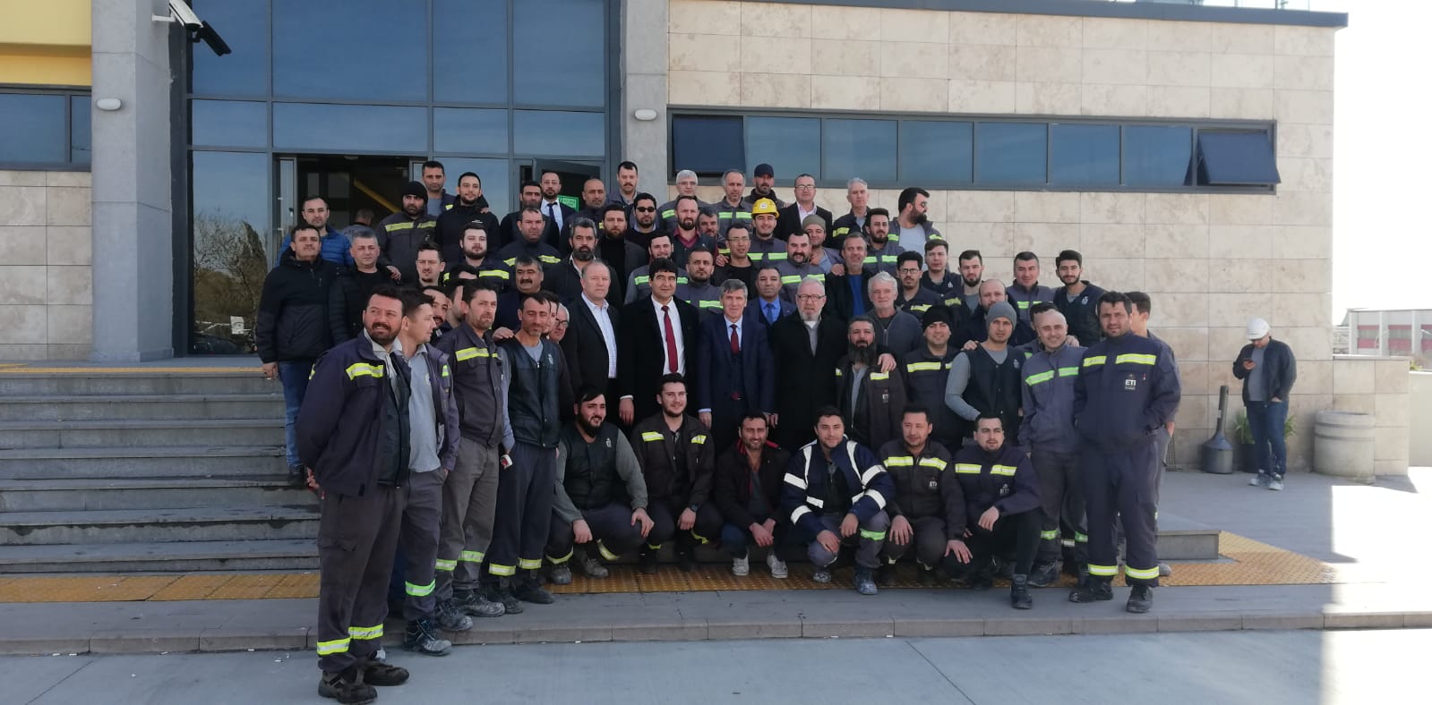 Genel Merkez Yöneticilerimiz son ziyaretlerini ise Bandırma Şubenin yeni örgütlediği Hidrojen Peroksit işyerine yaparak burada çalışan üyelerimizle biraraya geldiler ve devam eden toplu sözleşme süreci ile ilgili değerlendirmelerde bulundular.
