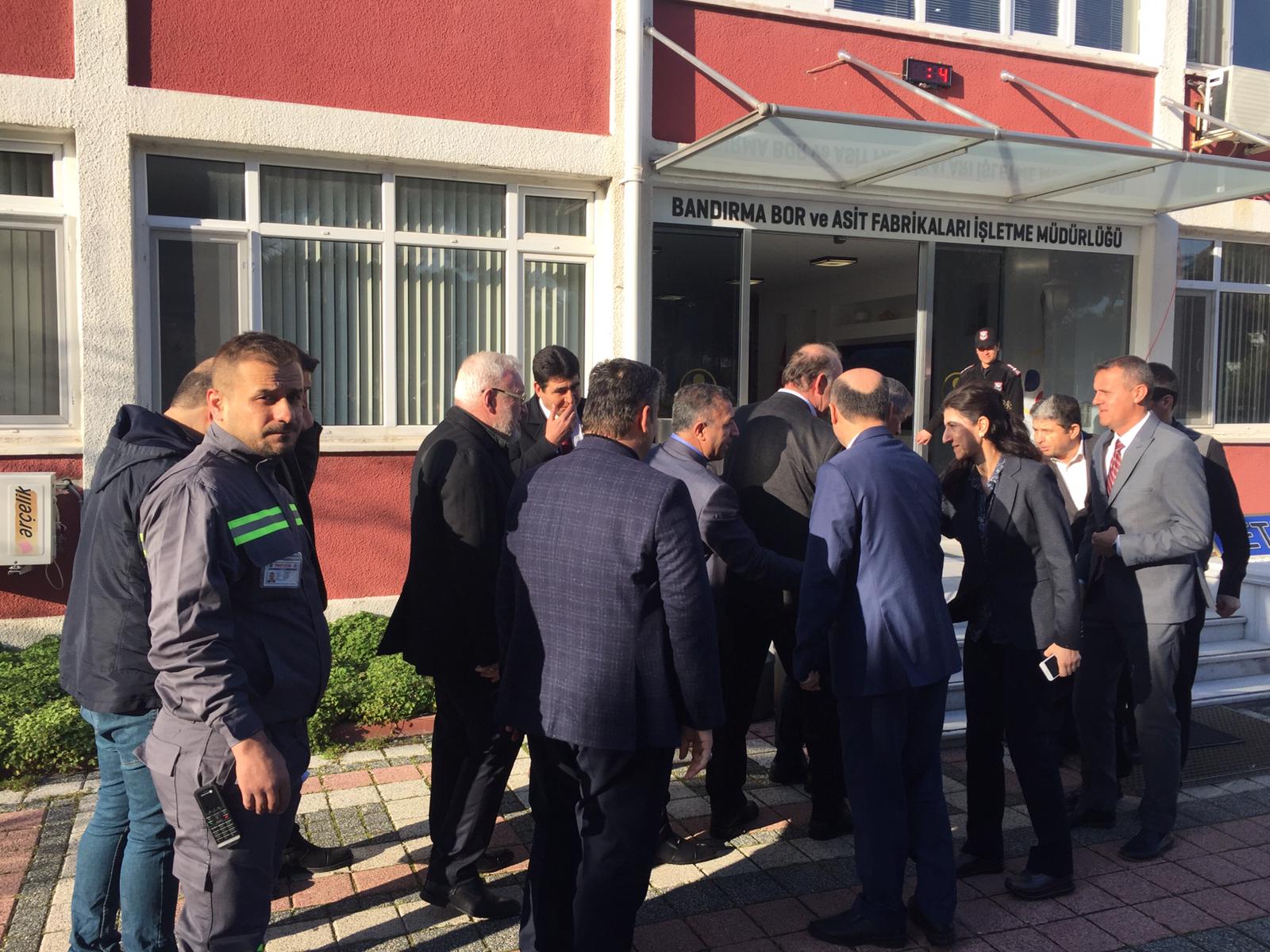 Sabah erken saatlerde Genel Merkez Yöneticilerimiz, Bandırma Şube Yönetimi, baştemsilci ve temsilcilerle birlikte ilk olarak Eti Maden İşletmeleri Genel Müdürlüğü Bandırma Bor ve Asit Fabrikaları İşletmesi’ndeydiler. İşletme Müdürü Münir Yahşi, Müdür Yardımcısı Hülya Tüzün ile Teknik Müdürler Yakup Çetin ve Mete Yavuz ile makamlarında biraraya gelen Petrol-İş Heyeti hem Petrol-İş’in yeni dönemi ile ilgili işletme yönetimine bilgi verdiler hem de fabrikalardaki güncel konular üzerine değerlendirmelerde bulundular.