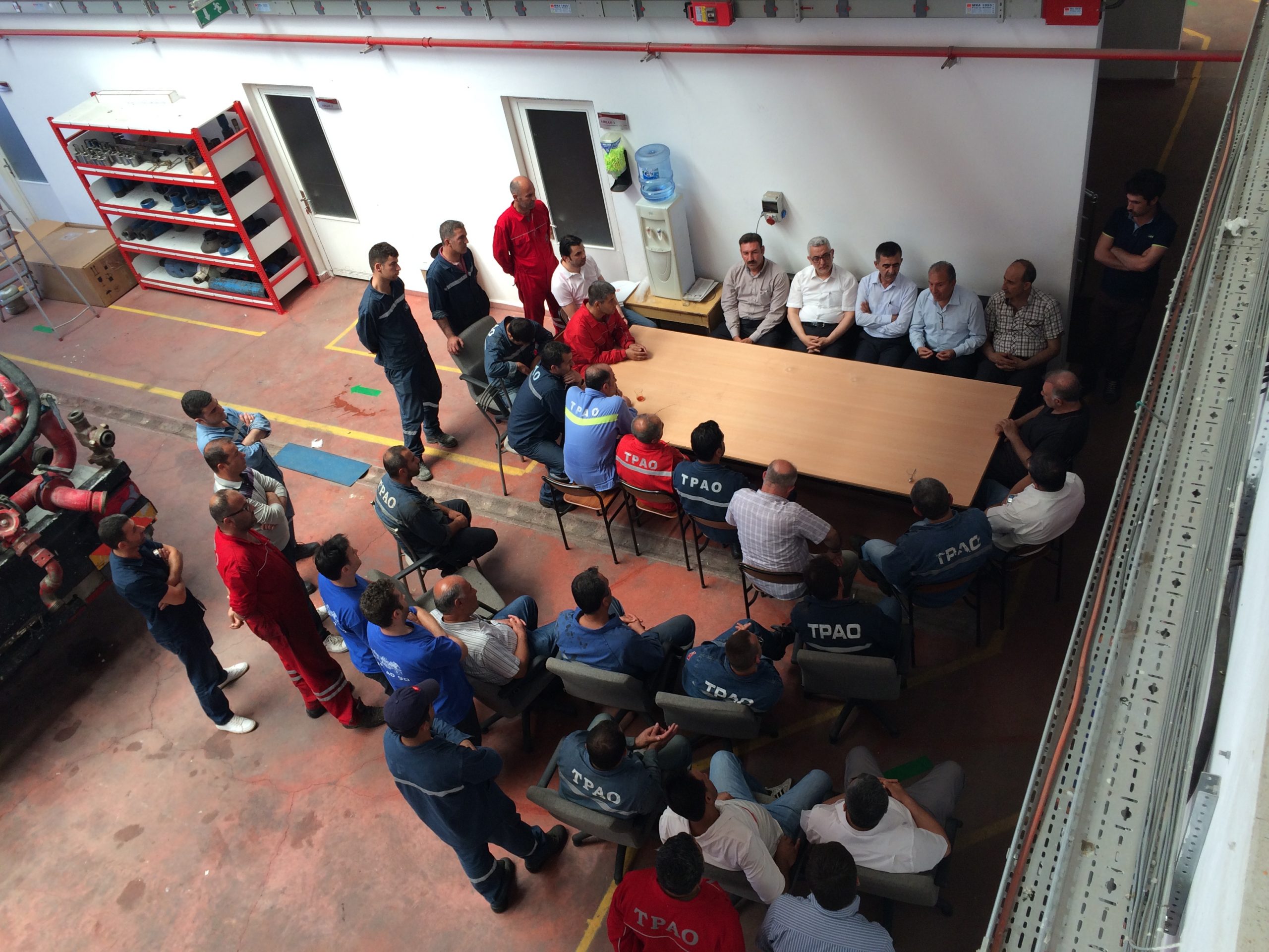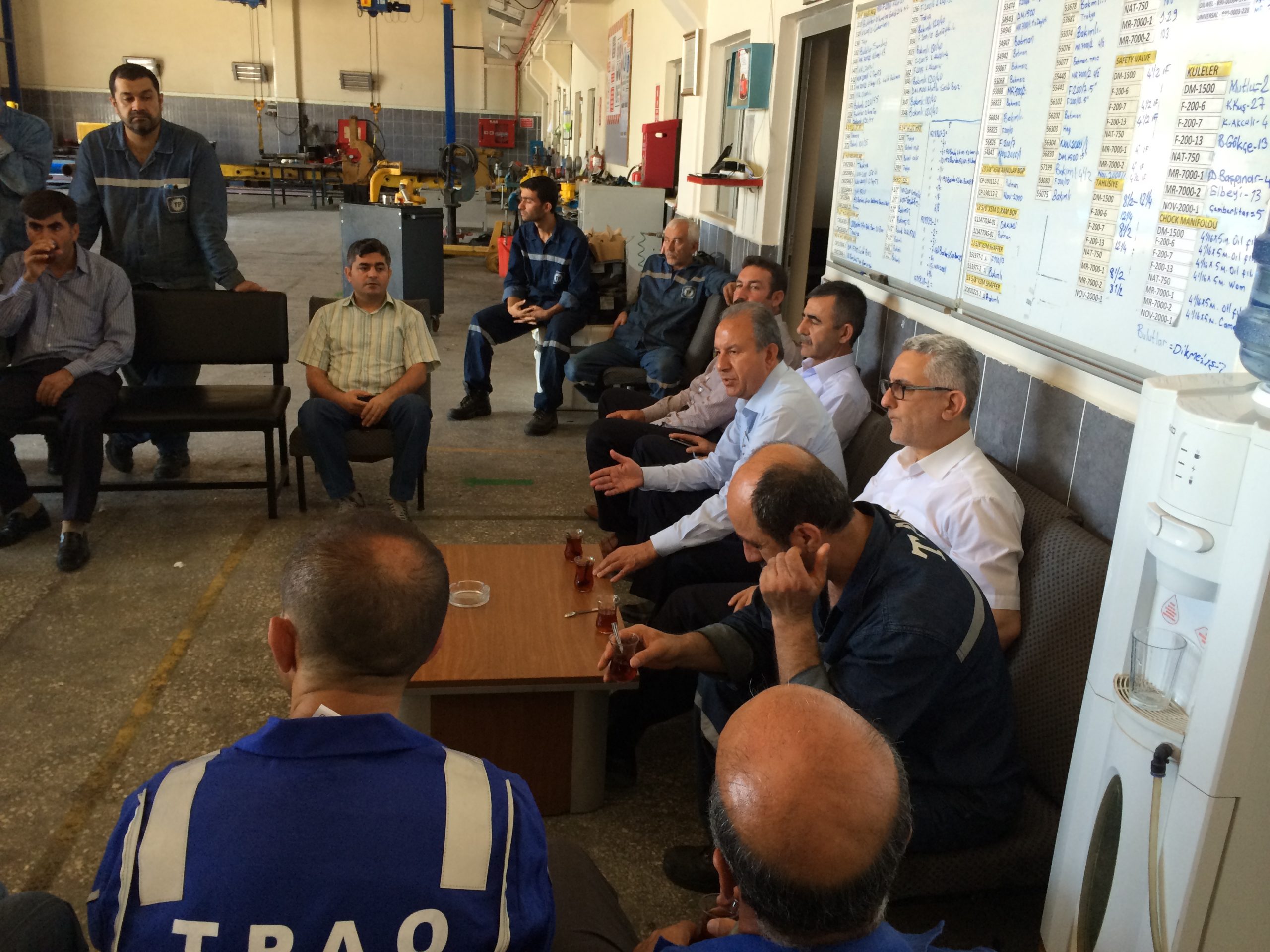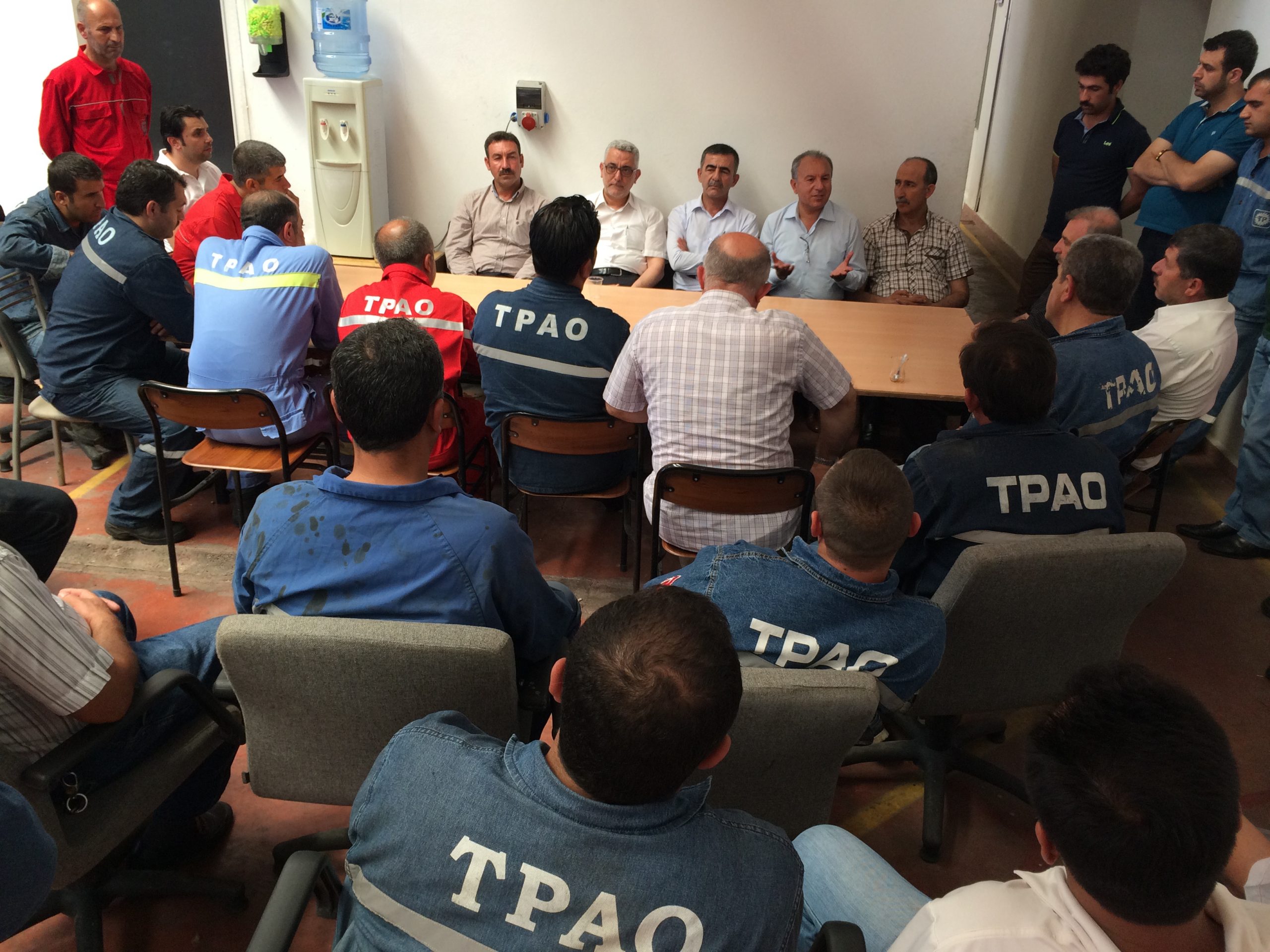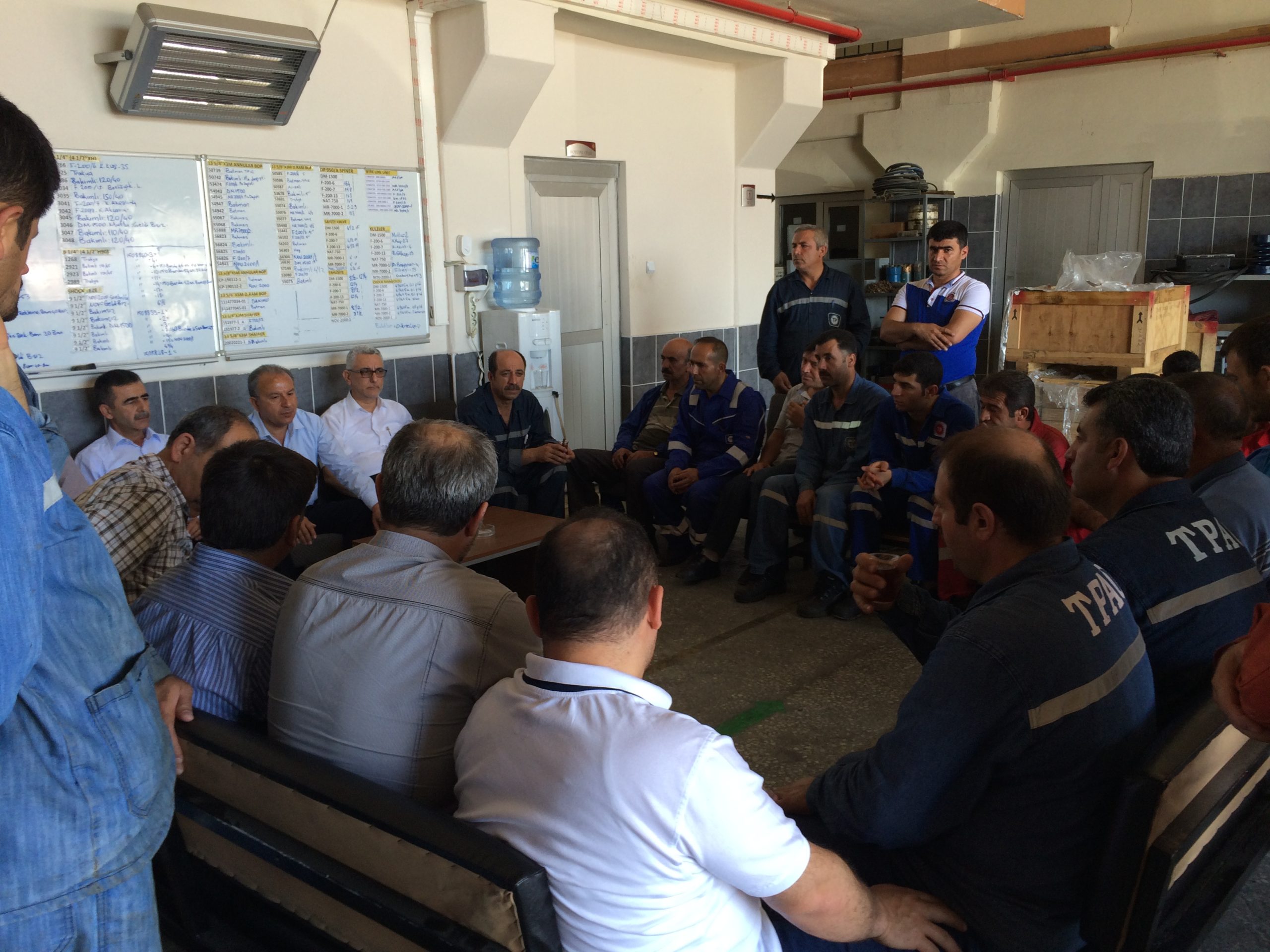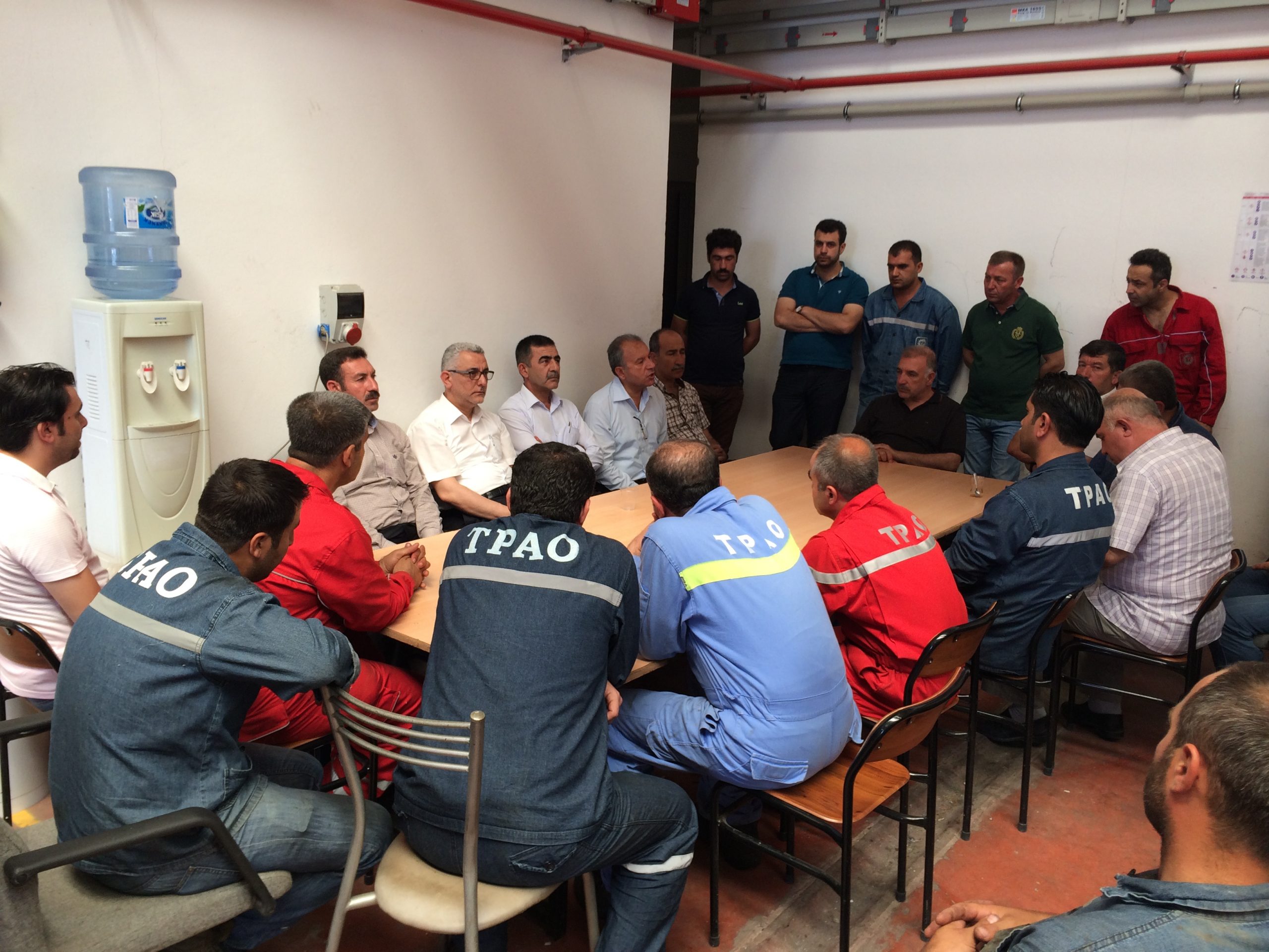 Merkez yöneticilerimiz; temsilci ve üyelerimiz ile birlikte TPAO’ da Bütünsel Dönüşüm Programı ve buna sendikamızın itirazlarını, taşeron sistemi, iş güvenliği, skala değerlendirmeleri, itibari hizmet süreleri konuları hakkında değerlendirmelerde bulunarak üyelerimizin sorularını cevaplandırdılar.