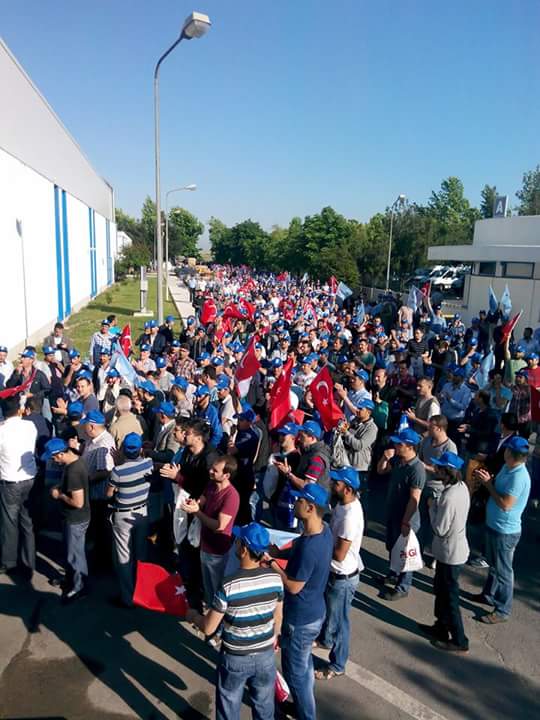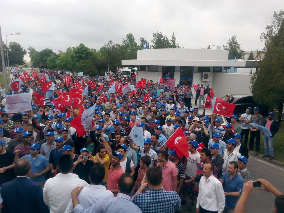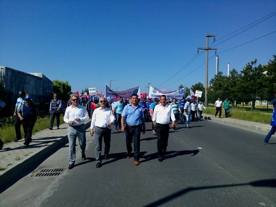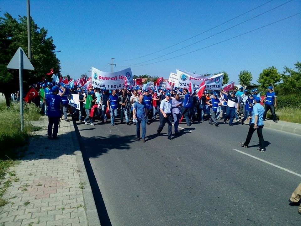 12 Haziran Cuma günü yapılan yürüyüşe fabrika önünde toplanan 2 bin civarında işçi katıldı. Organize sanayide bir araya gelen işçiler buradan Çerkezköy merkeze yaklaşık 10 km’lik bir yürüyüş gerçekleştirdi. Burada yapılan basın açıklamasına Petrol-İş Sendikası Genel Sekreteri Ali Ufuk Yaşar ile Petrol-İş Sendikası eski yöneticilerinden Adnan Özcan, İstanbul 1 Nolu Şube Başkanı Ahmet Baranlı, başkan yardımcıları Yılmaz Akay ve Abidin Kaya, Trakya Şube Başkanı Turgut Düşova ve başkan yardımcıları Hasan Oğuz Keser ve Ercan Yavuz katıldı. Ayrıca Türk-İş İstanbul 1. Nolu Temsilcisi Faruk Büyükkuçak,Türk-İş Tekirdağ İl Temsilcisi ve Türk Metal Sendikası Çerkezköy Şube Başkanı Murat Koçak da katılarak eyleme destek verdi.