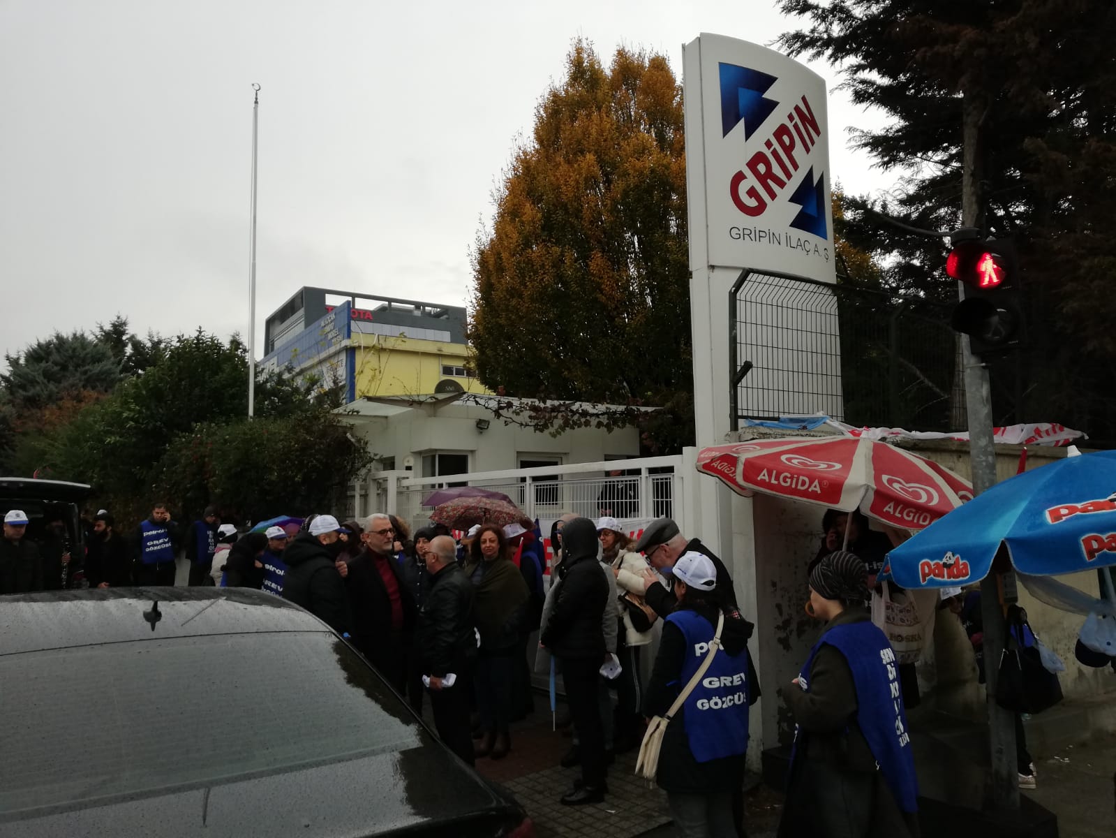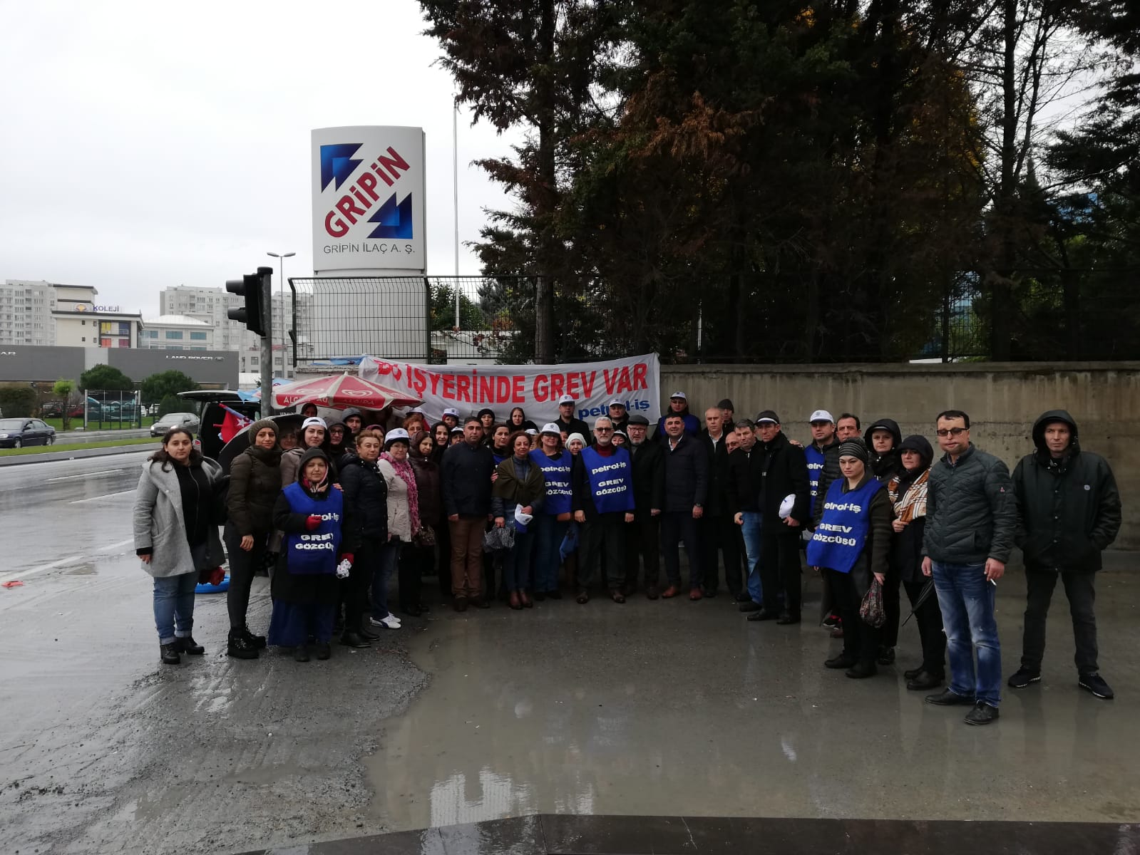 İstanbul 1 Nolu şubemiz kapsamında olan Gripin İlaç A.Ş. işyerinde Haziran ayından beri süren toplu sözleşme görüşmelerinden sonuç alınamaması üzerine bugün (28 Kasım) greve çıkıldı.