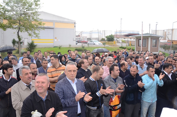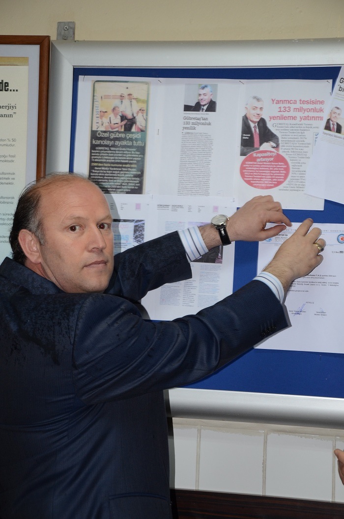 Şube Başkanı Salih Akduman burada Gübre Fabrikaları T.A.Ş’de çalışan üyelerimize hitaben yapt›ğı konuşmasında; bugün itibari ile Genel Merkezimizin aldığı karar neticesinde grev ilanını asacağız. Önümüzde 60 günlük bir süre var, umarım bu 60 günlük süre içinde işverenle anlaşırız. Aksi takdirde grev kaçınılmaz olacaktır. Biz bu fabrikanın sürekliliginden yanayız, uzun yıllar faaliyet göstermesini diliyoruz. İşverenden çok fazla talebimiz yok, işe en son girenlerin maaşlarında iyileştirme diğer üyelerimizin de faydalanacağı bir sözleşme istiyoruz dedi.